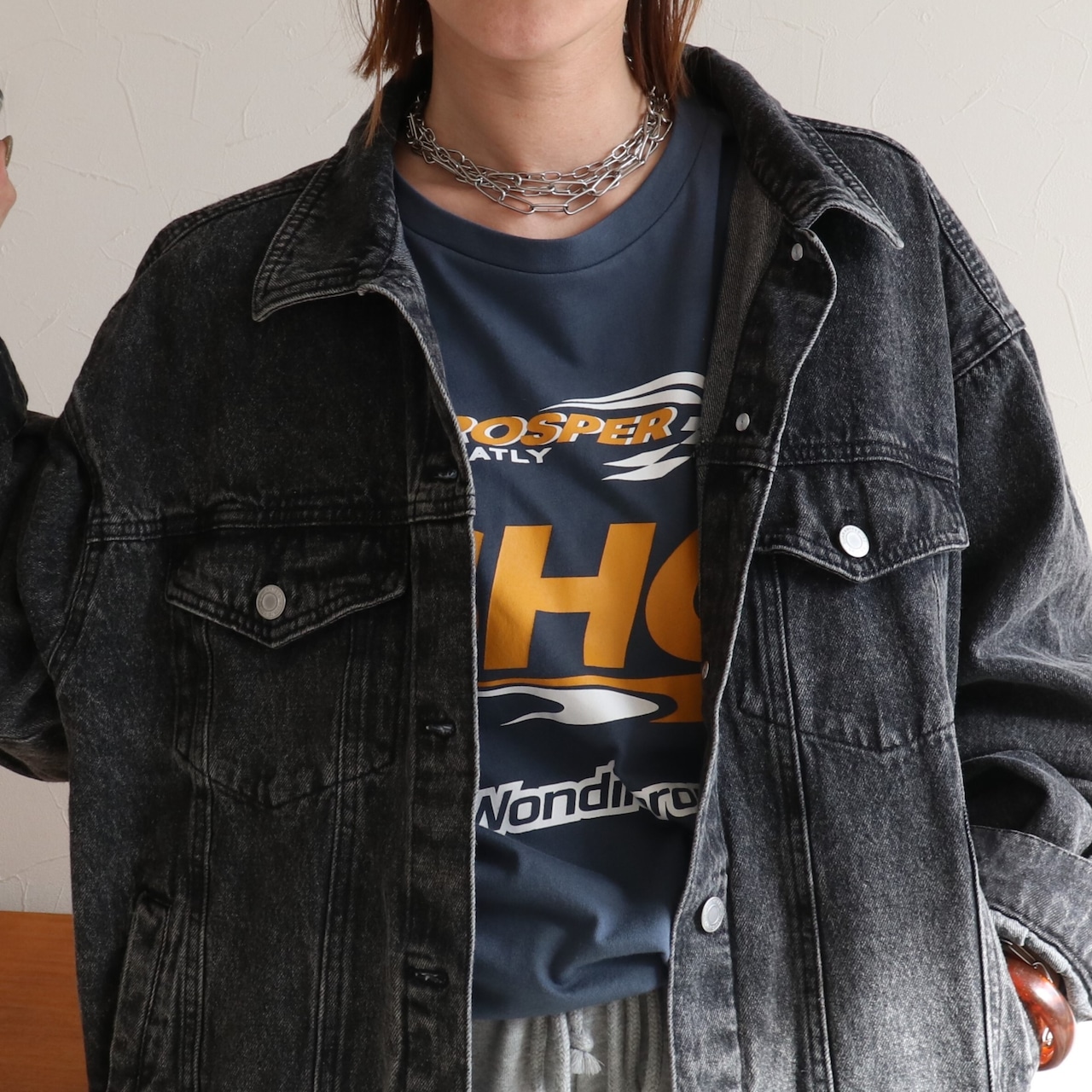 胸元、背面、両腕に施されたプリントがアクセントになり、1枚でも主役級アイテムとなっております。綿混なのでやわらかく、サラッとした着心地でシーズン問わずご着用いただける素材感です。