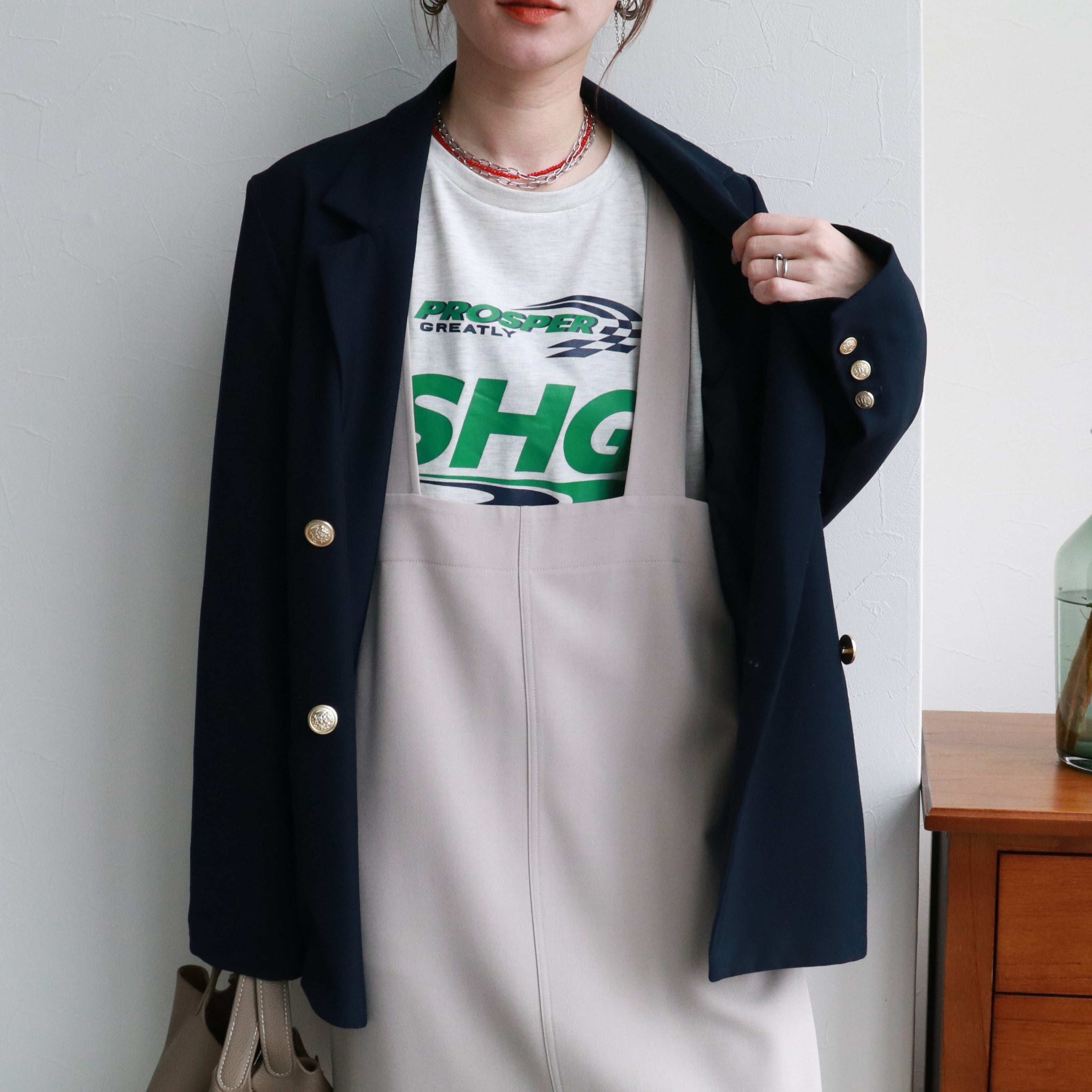 ジャケットのインナーとしてトレンドのスポーツテイストをMIXしたスタイリングもぜひ◎