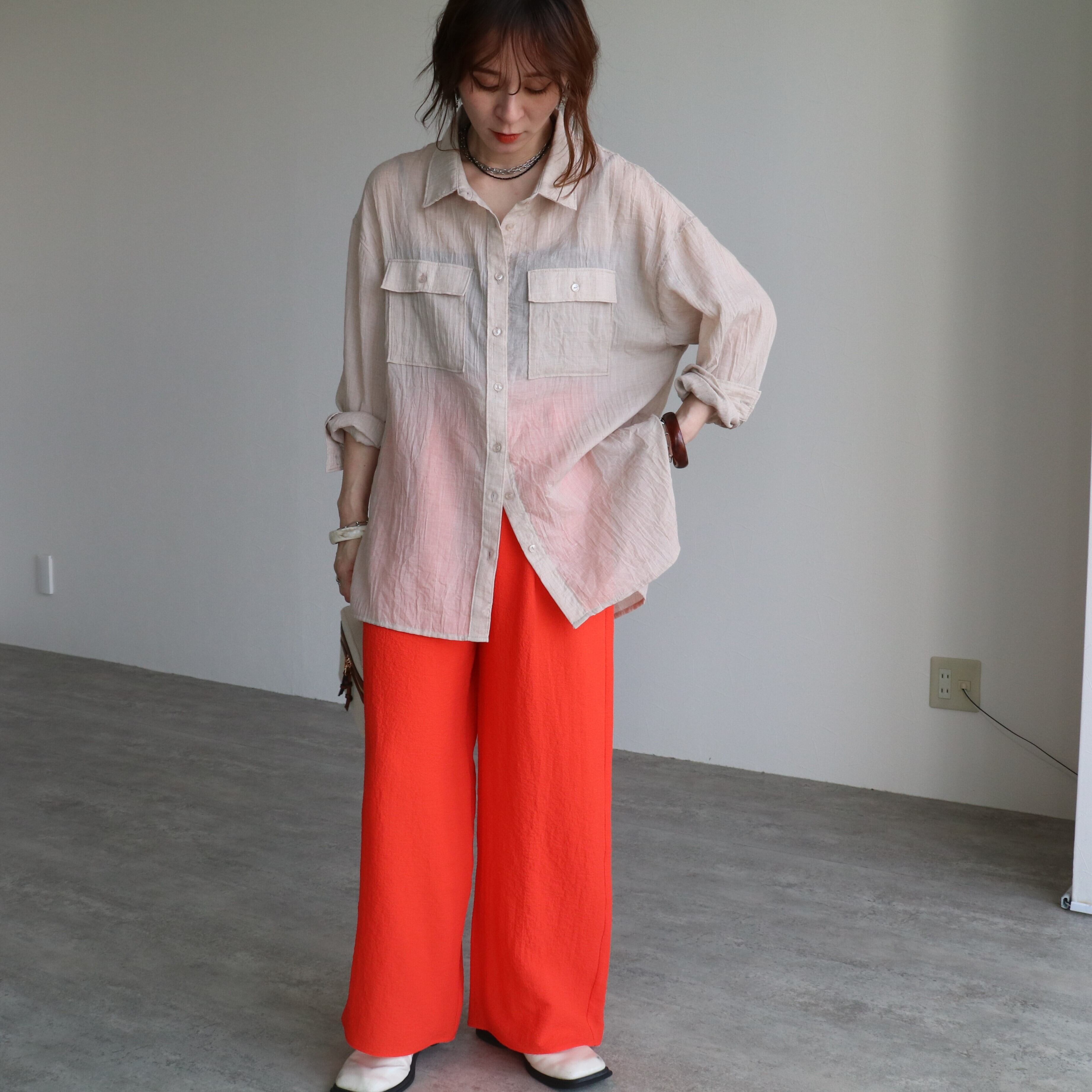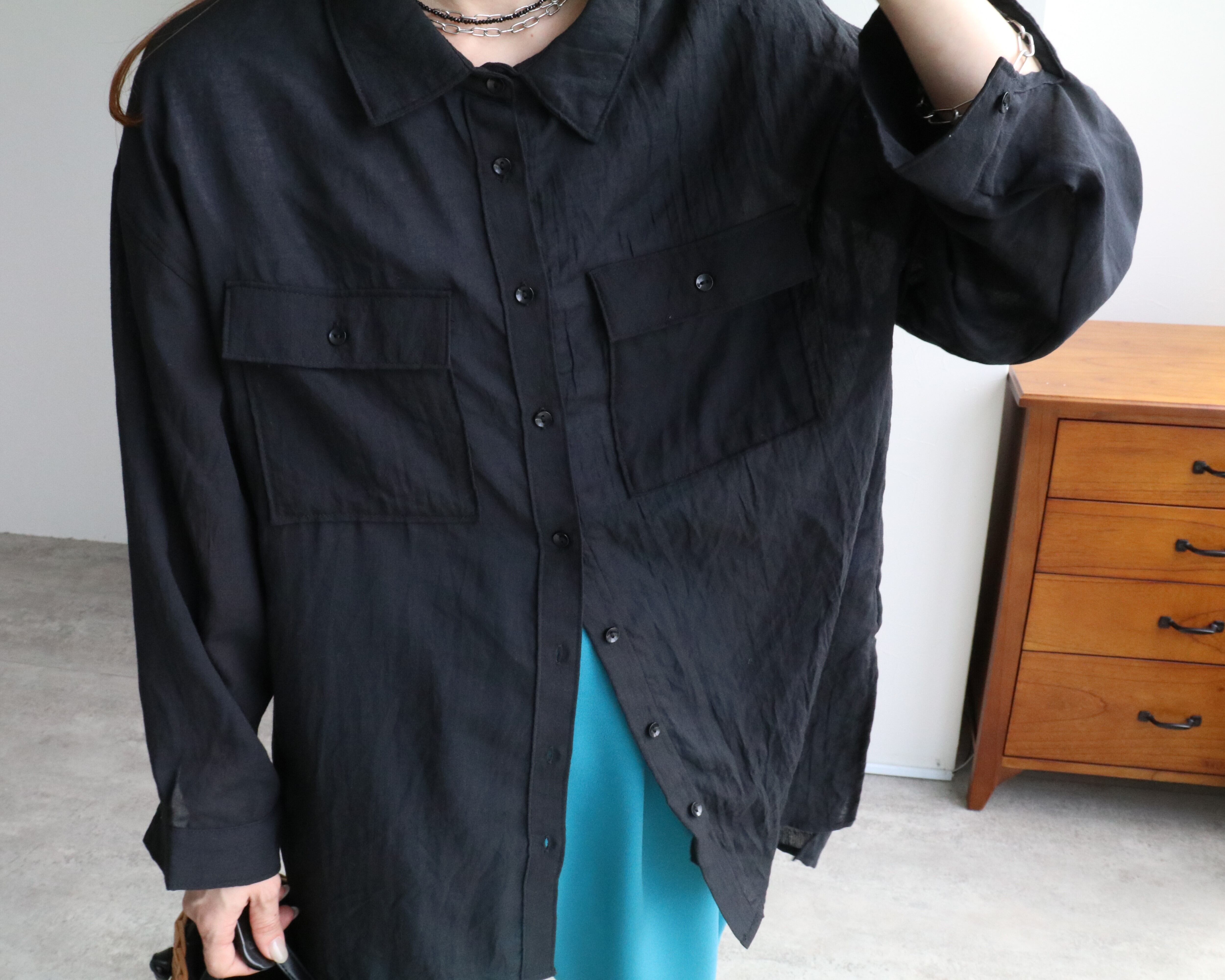 ナチュラルで程よくシアー感のある大人っぽいリネン風シャツ。