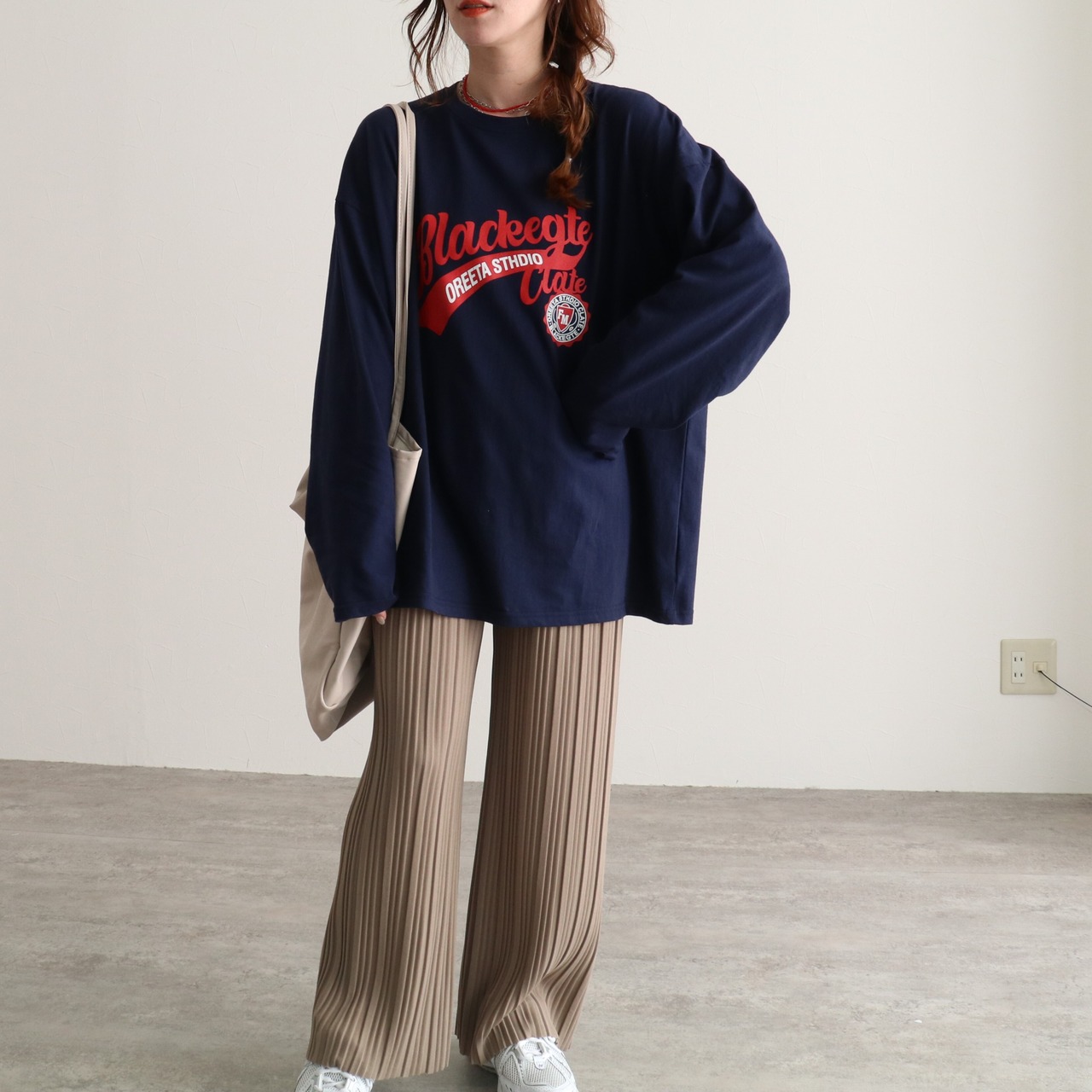 ベイスボール風のロゴプリントでトレンドのスポーツミックスが楽しめるロンT。