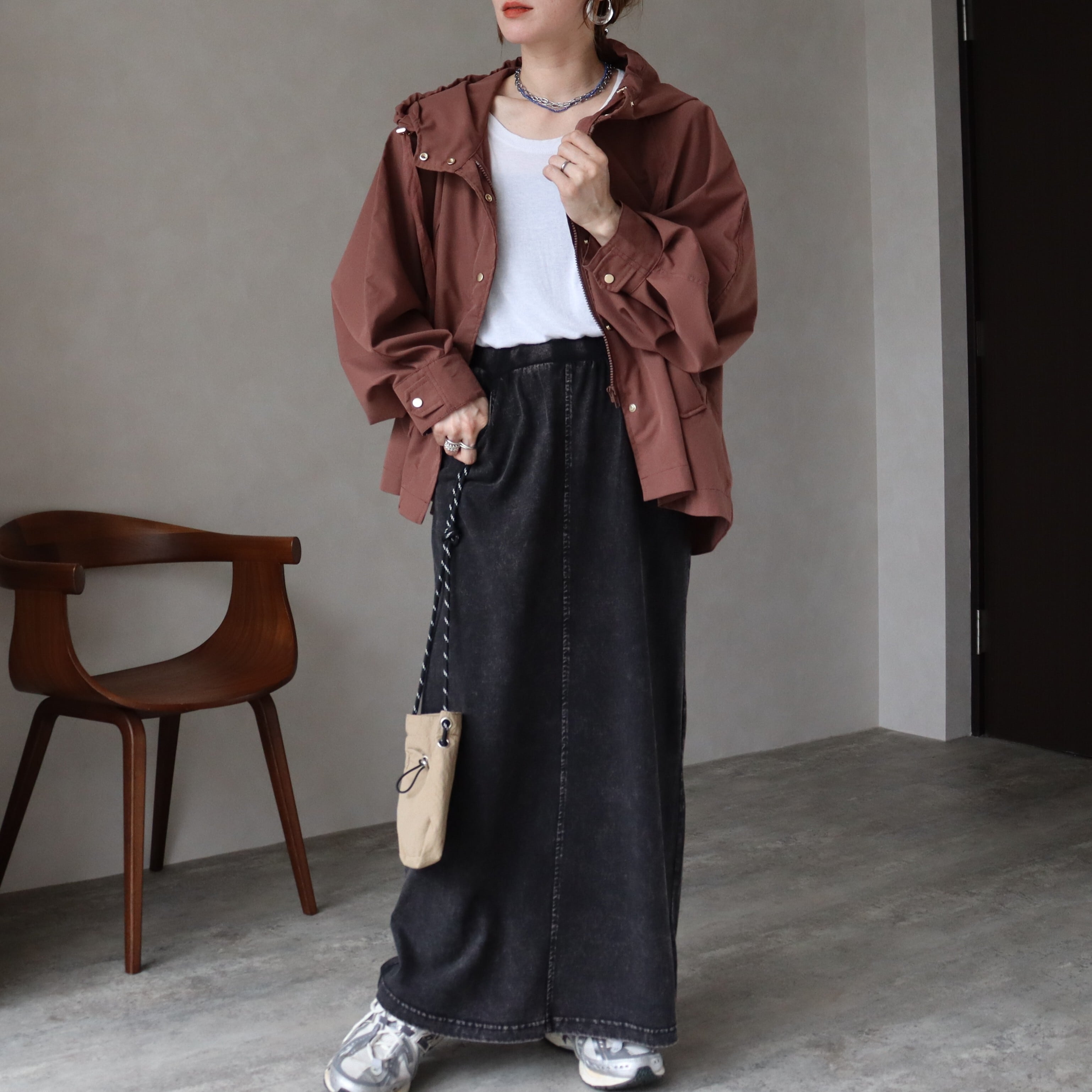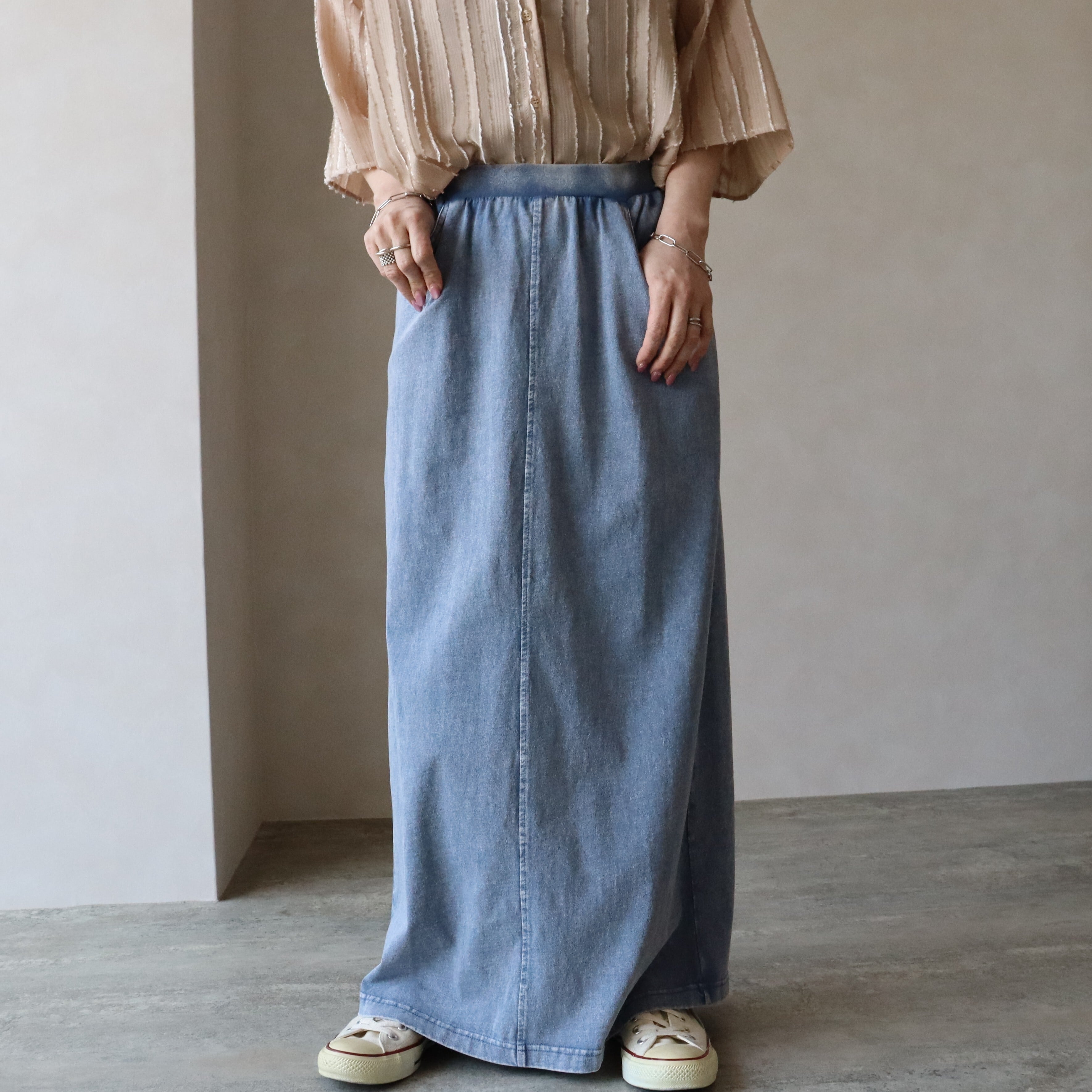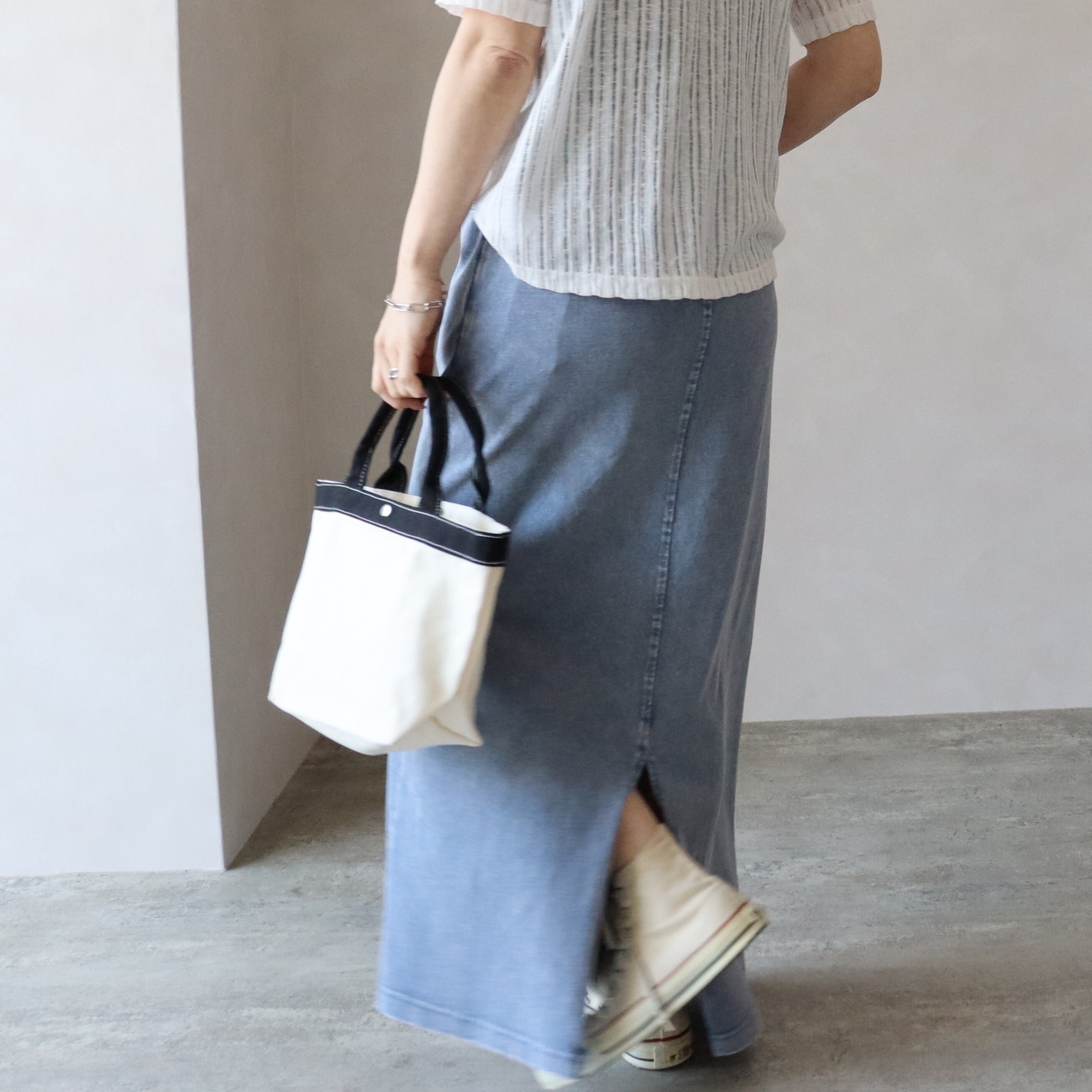 カットソー生地で叶える、大人カジュアルな旬デニムスカート。