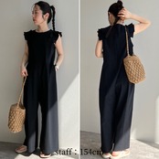 Lサイズ:着丈132.5cm/肩幅47cm(フリル含む)/身幅47cm/ヒップ104cm/股上35.5cm/股下61cm/もも周り77cm/裾回り74cm