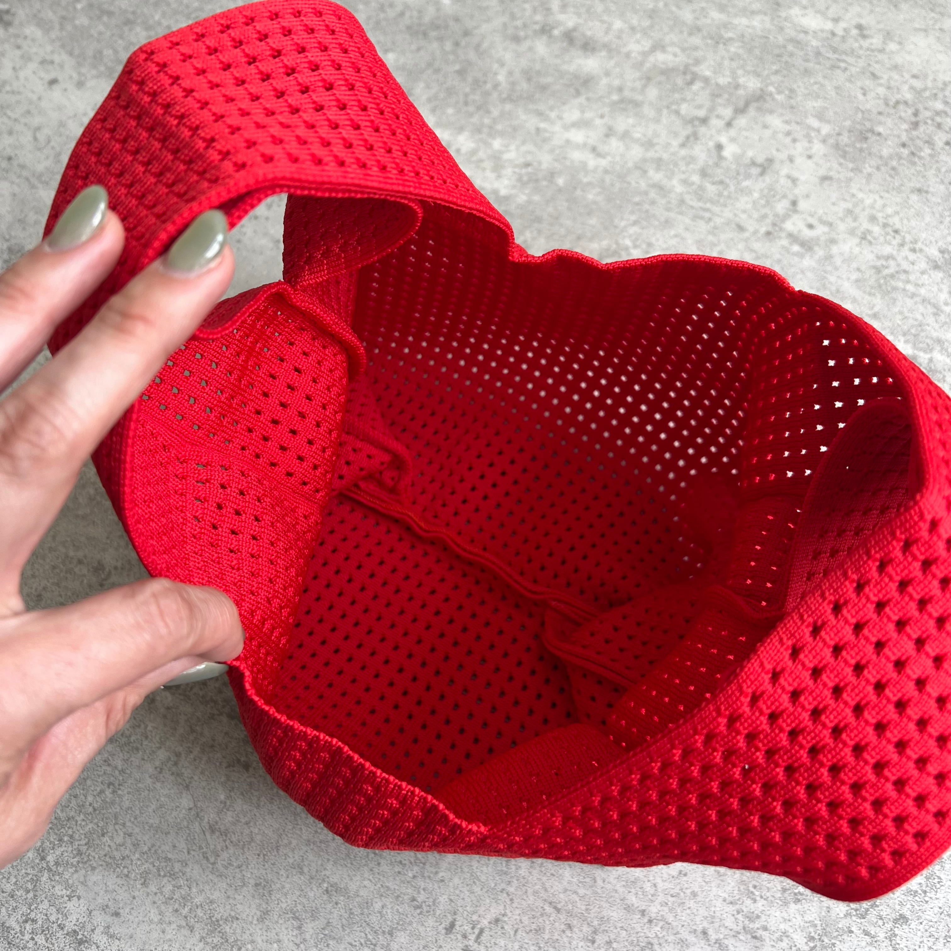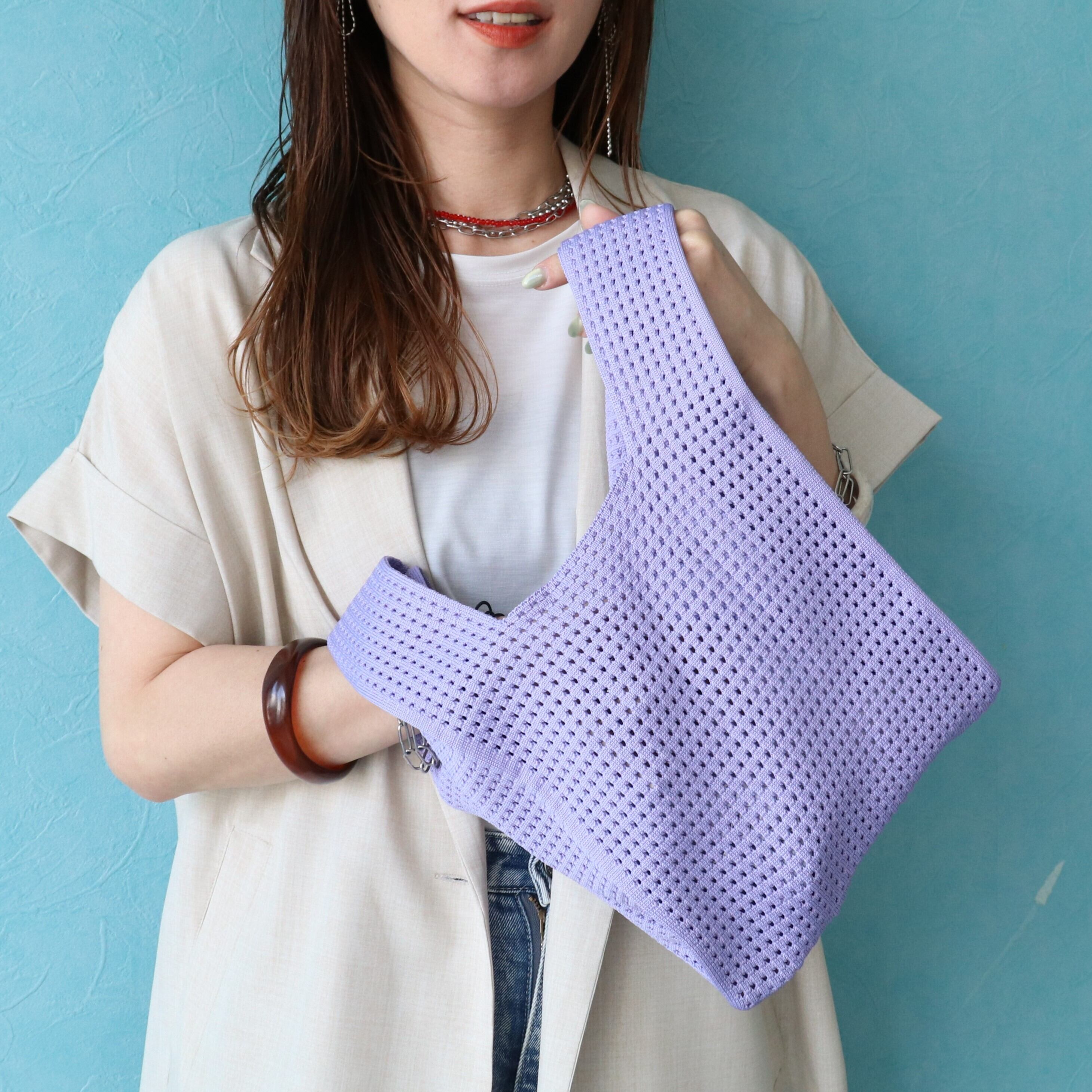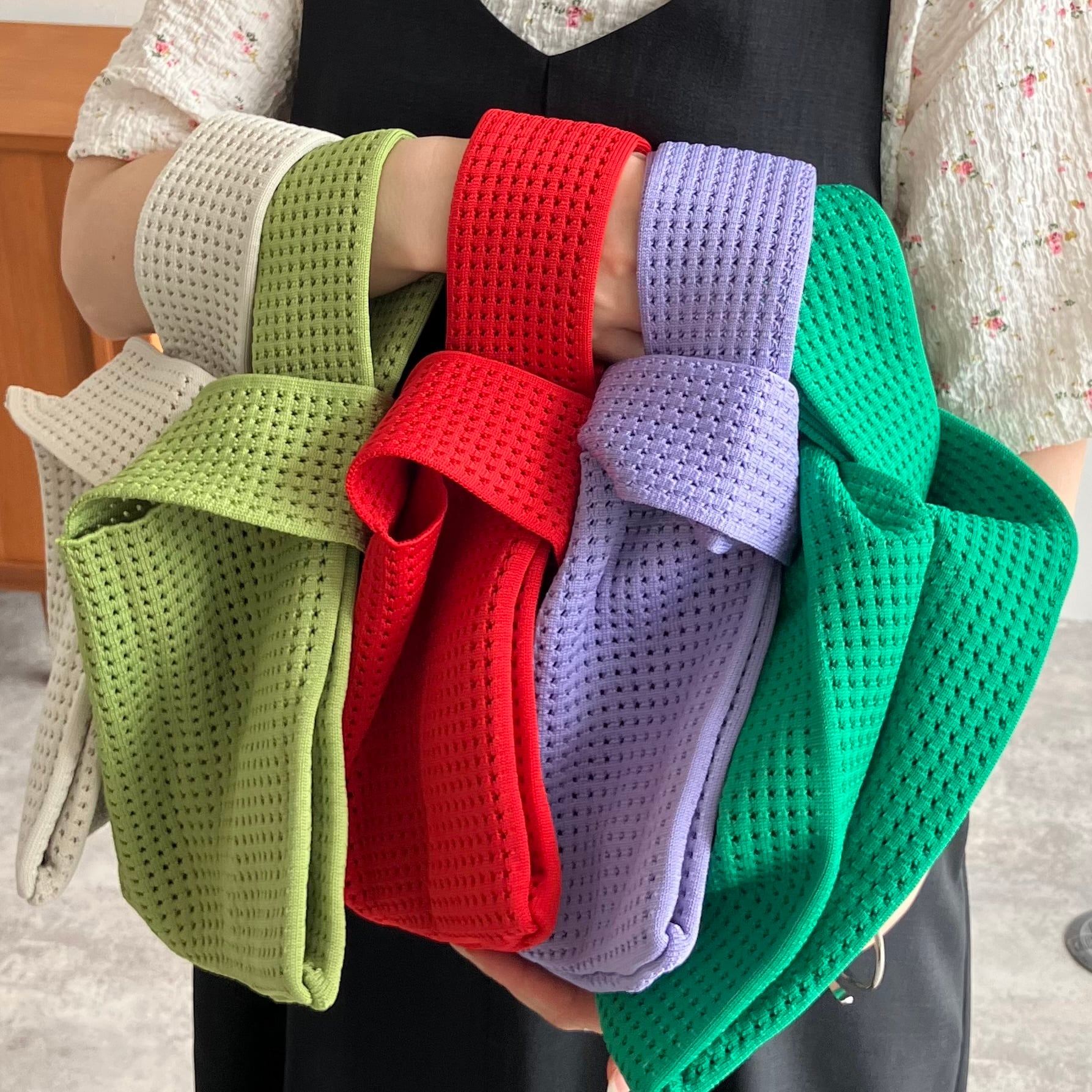 持ち手が太くニット素材なので、肌当たりもやわらかい。