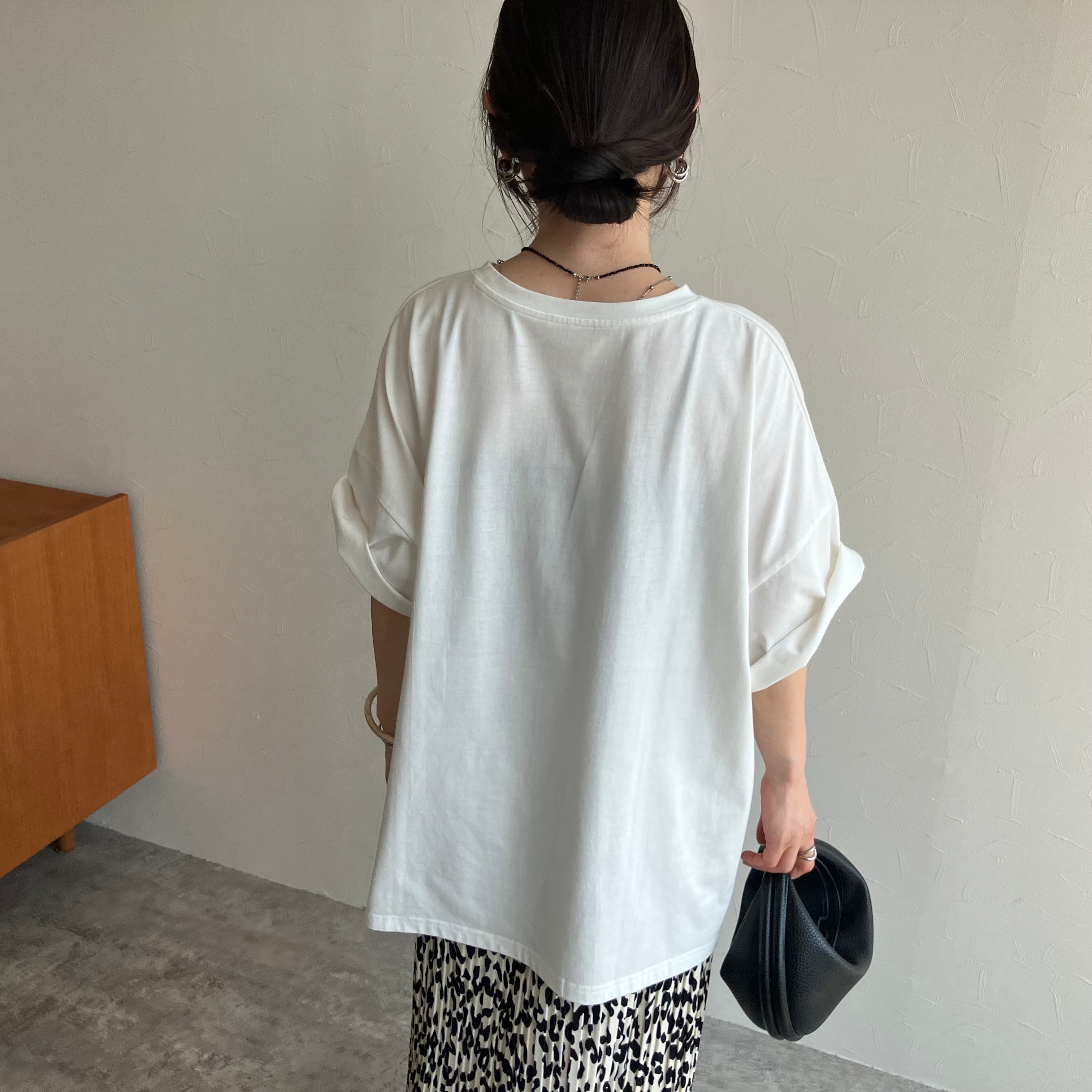 長めの袖丈で気になる二の腕もしっかりカバーし、ビッグシルエットで体型カバーを叶えます!裾のサイドスリットでさりげなく抜け感をプラス、へたれにくいコットン素材でデイリーユースも◎