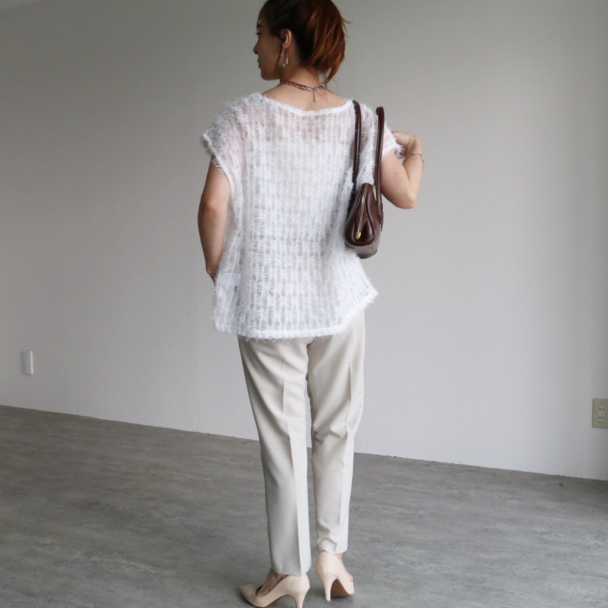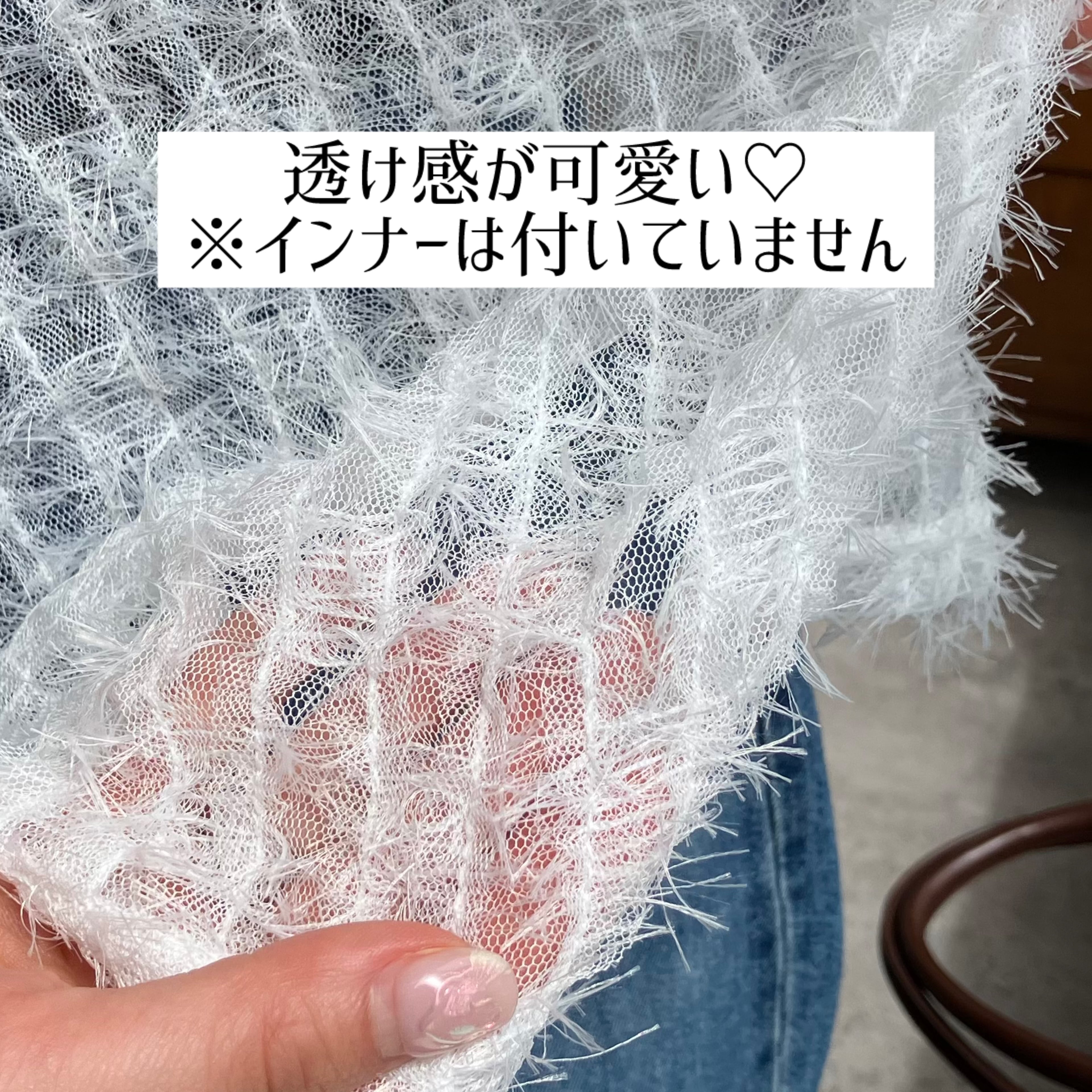 立体的なフリンジの甘さとモード感を備え、シンプルなスタイルも素材の華やかさで大人女子の可愛さを引き立たせるマストアイテムです。