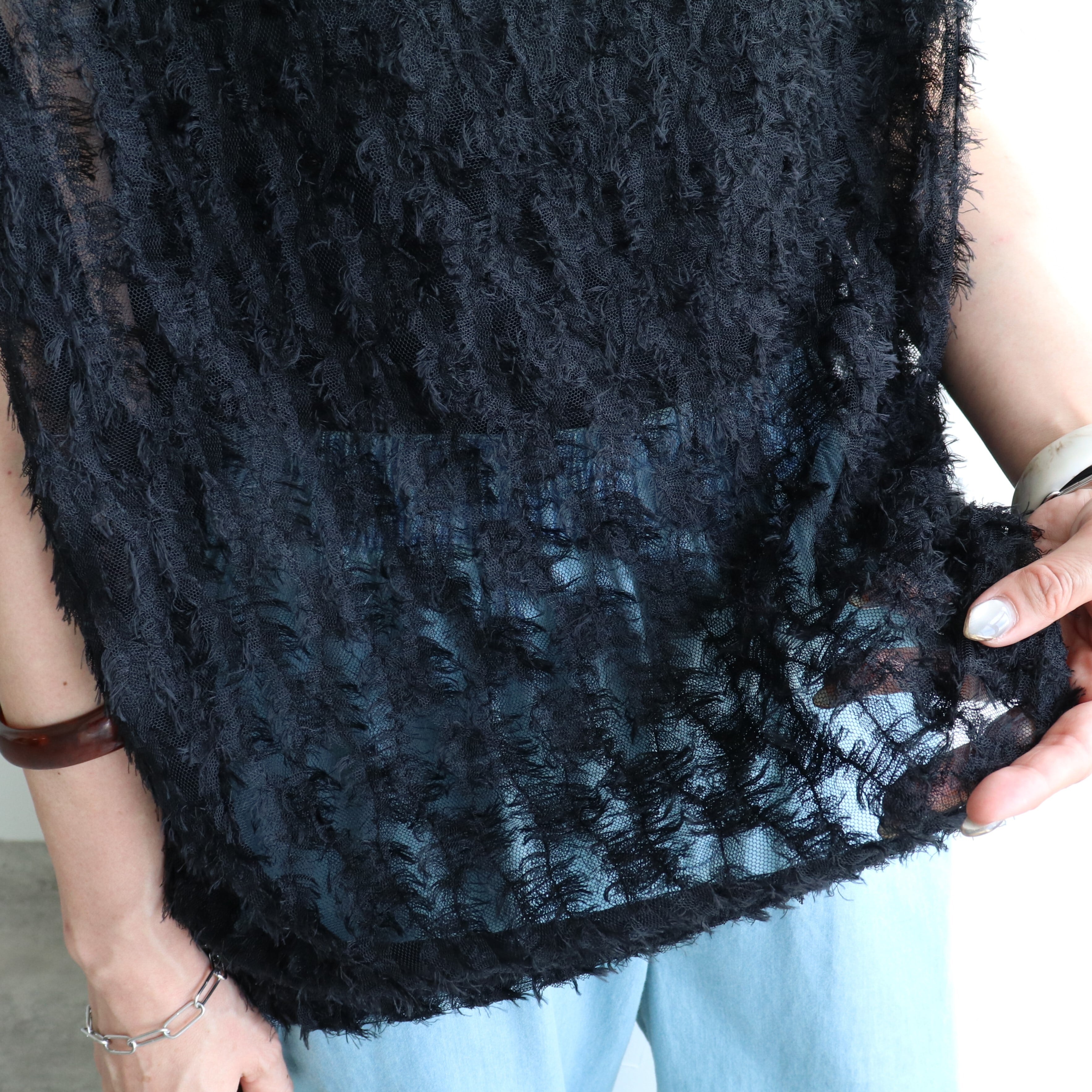 フリンジチュールの素材感が魅力のオーバーフレンチTシャツ!