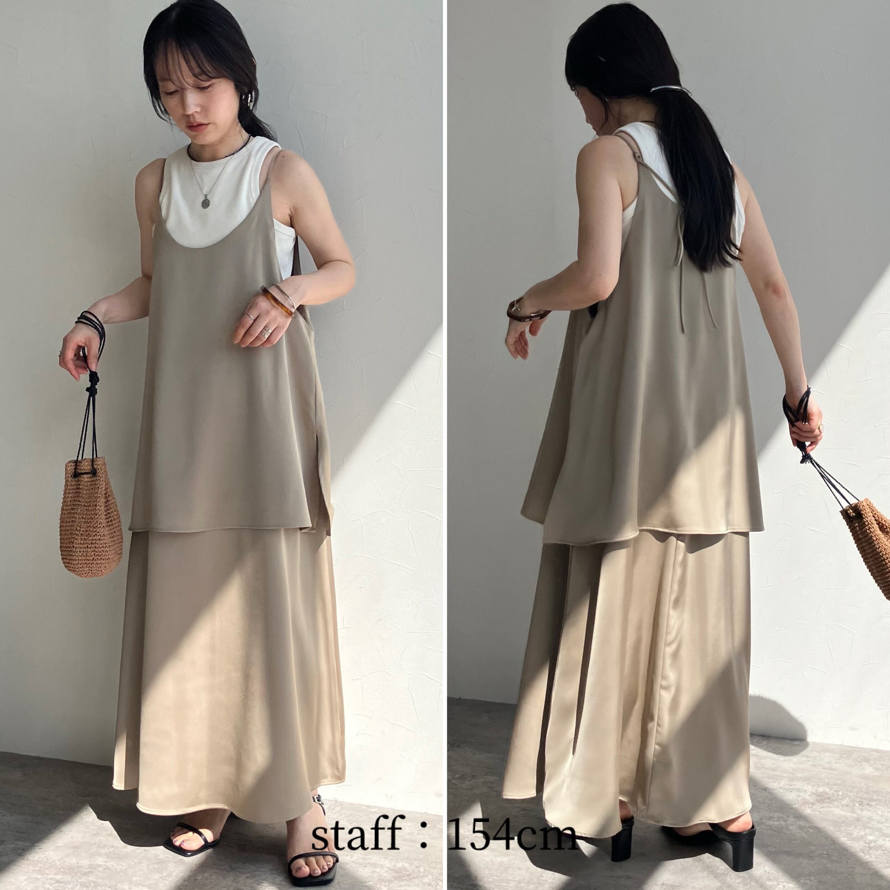 旬のサテン素材が目を引くレイヤード風キャミワンピース☆