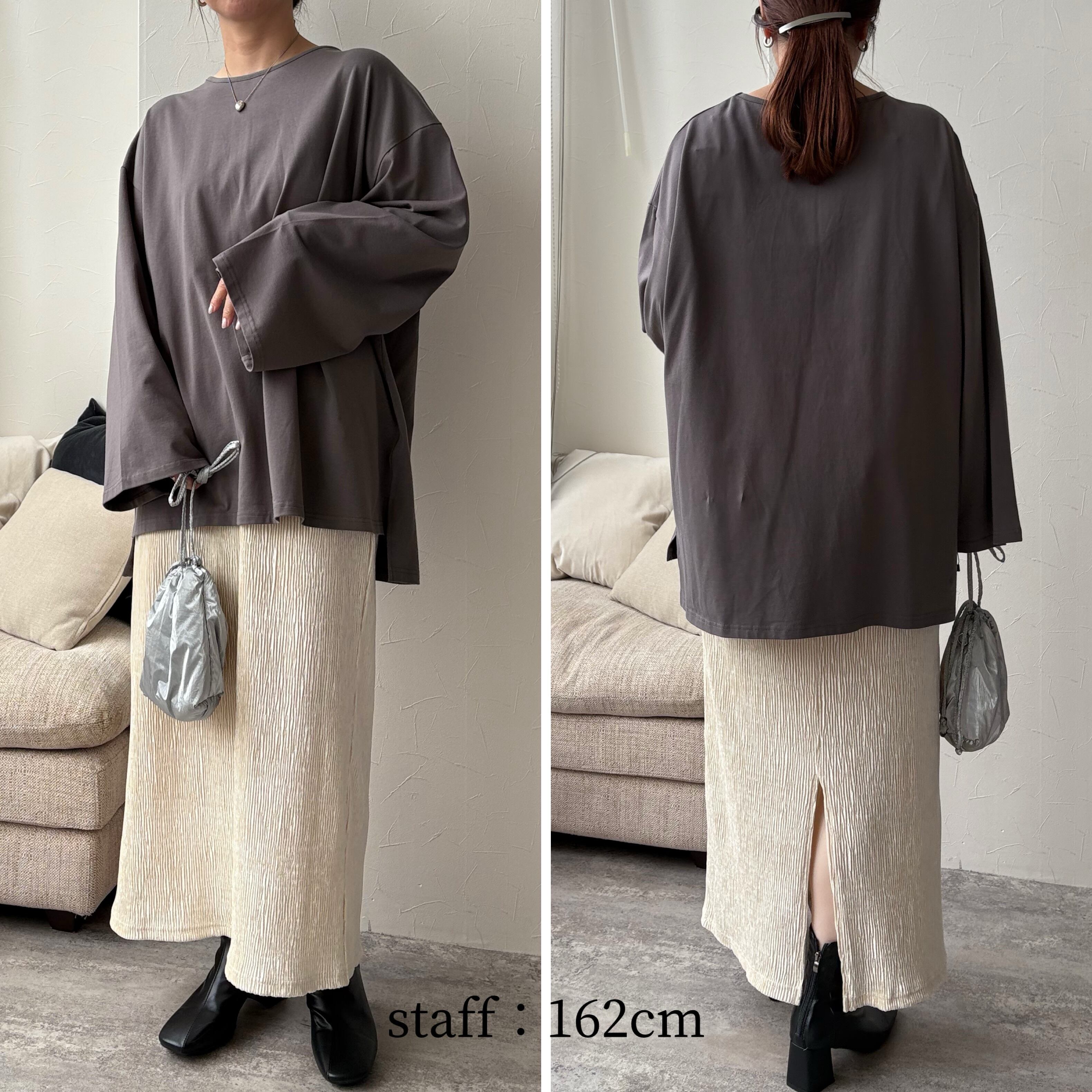 長めの袖丈、前身と後身の長さに少し差をつけて動きをだしています。