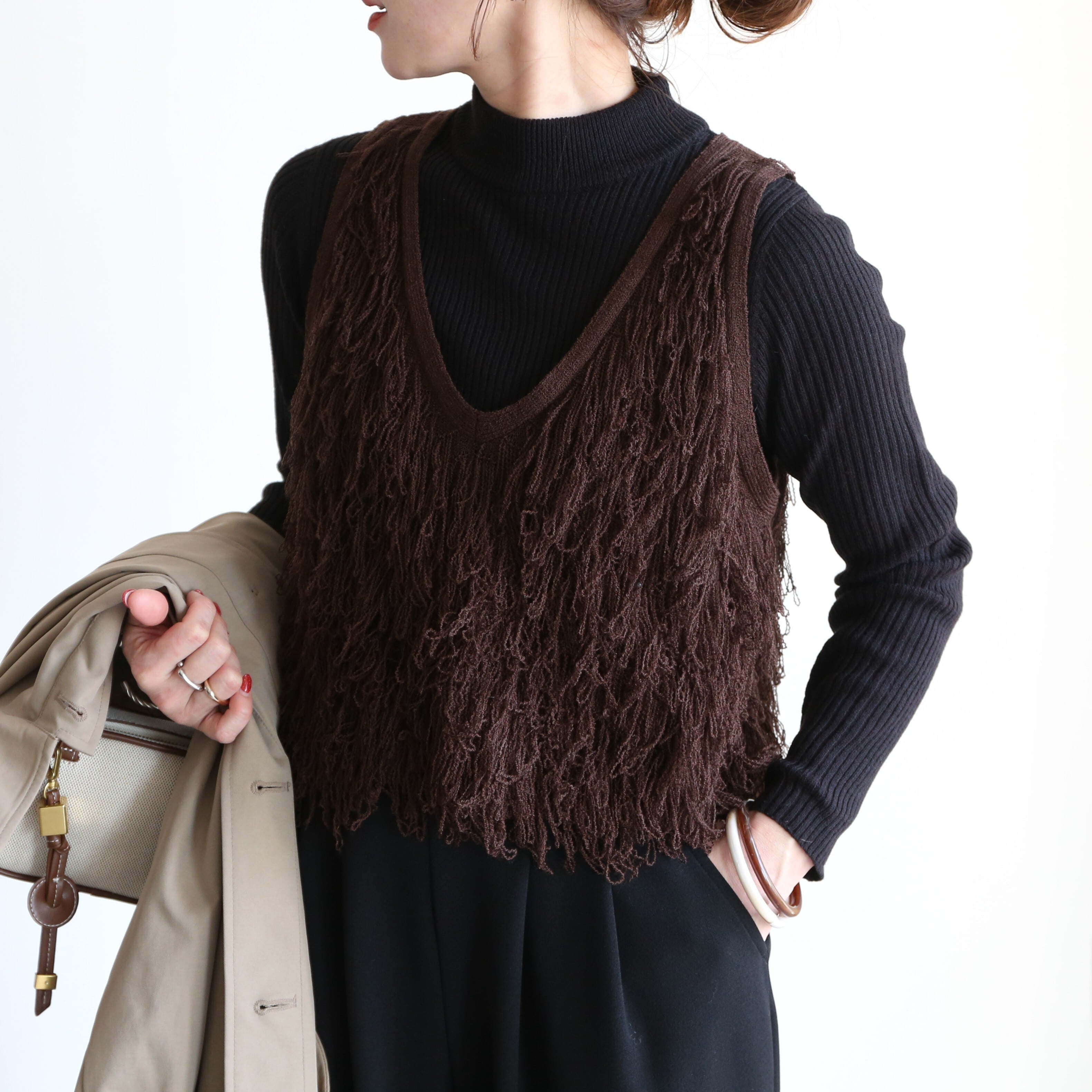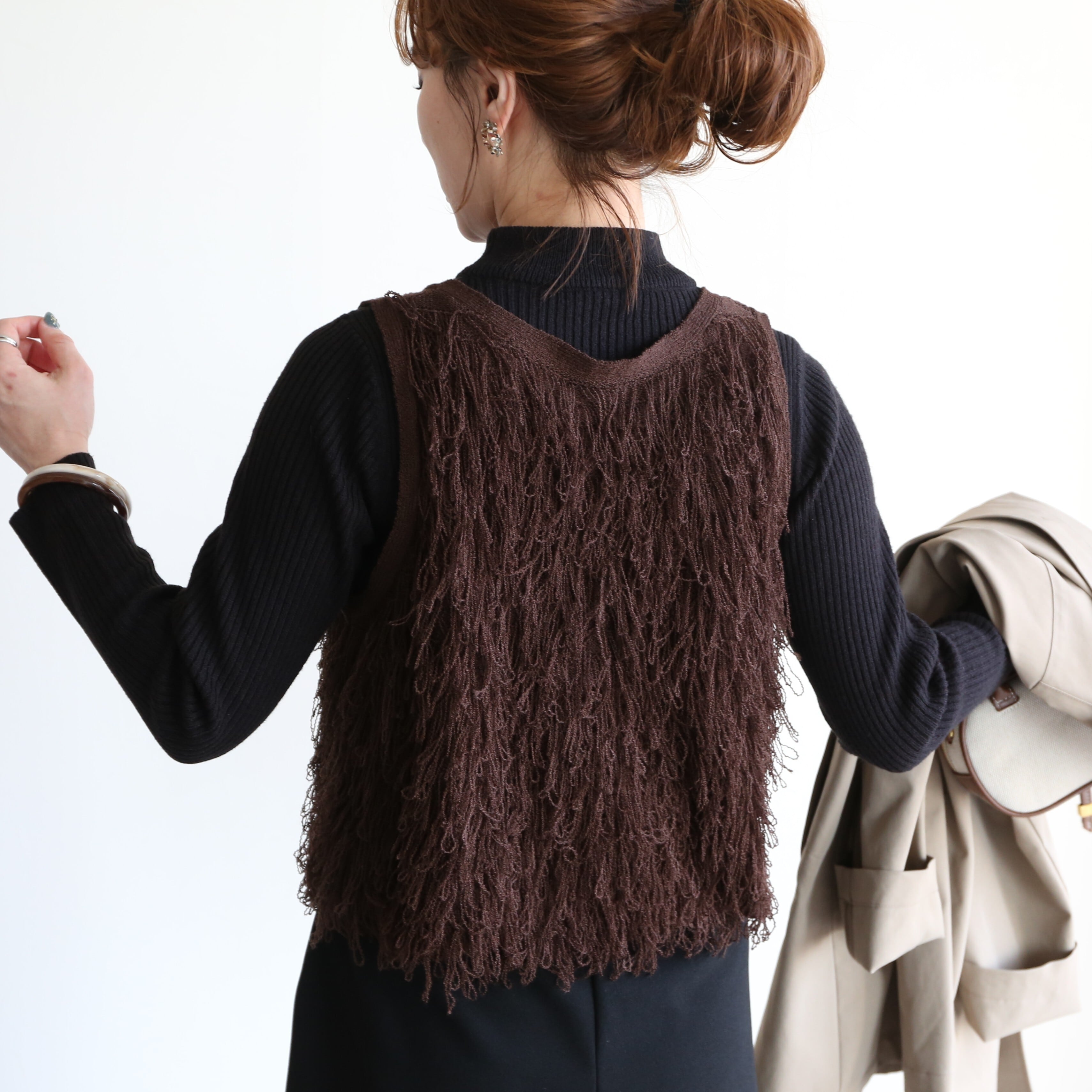 \表情豊かなループフリンジが目を惹く大人のこなれ感ベスト/
