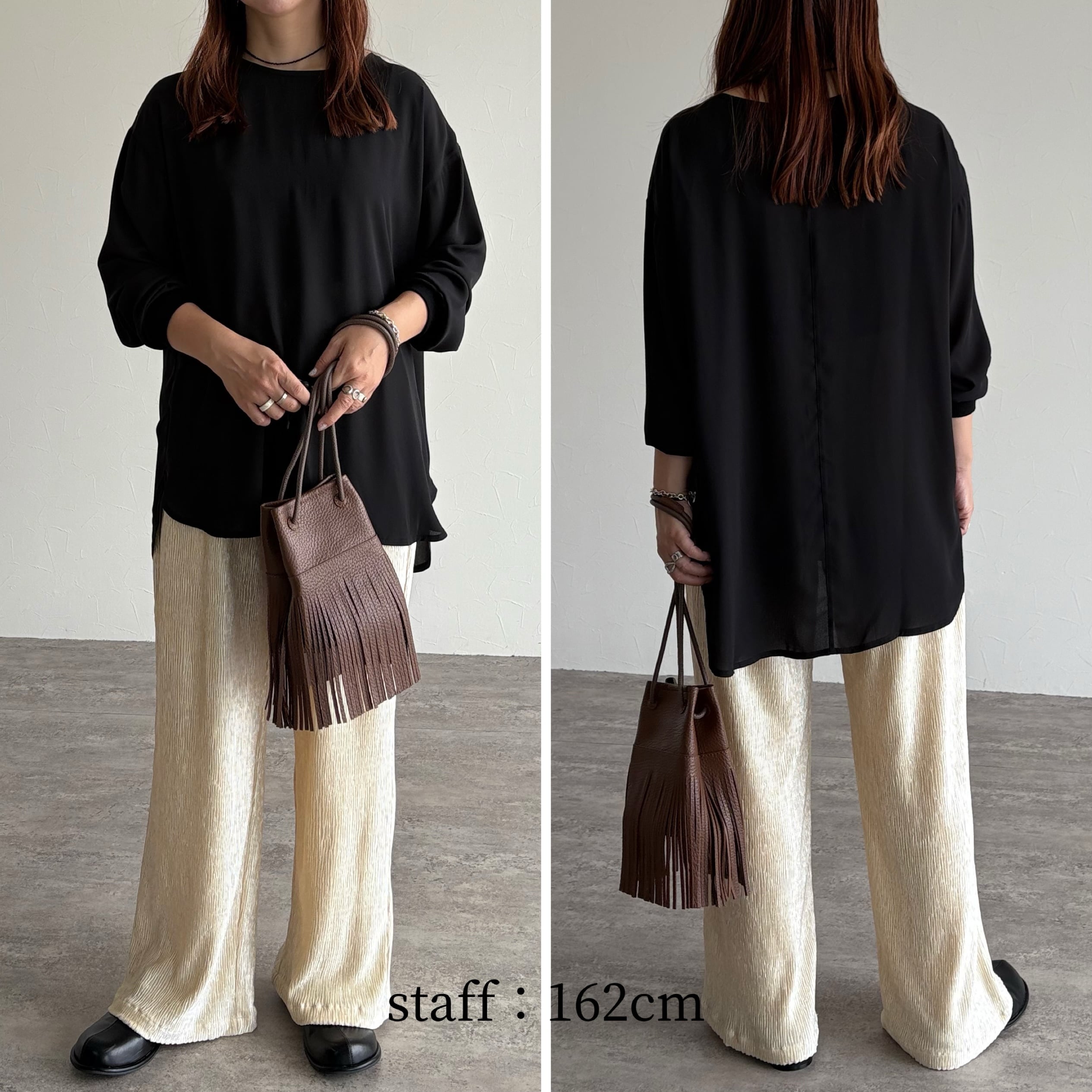 落ち感ある生地の特性を生かし、ボディラインを拾わないふんわりとしたシルエットに♡♡
