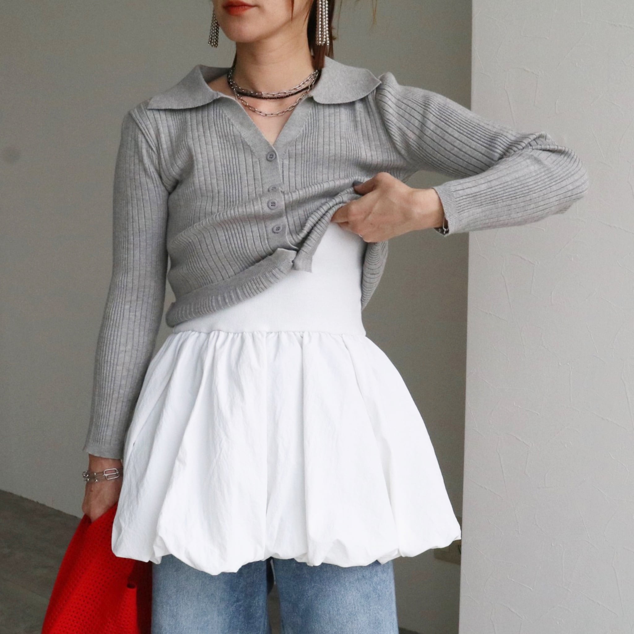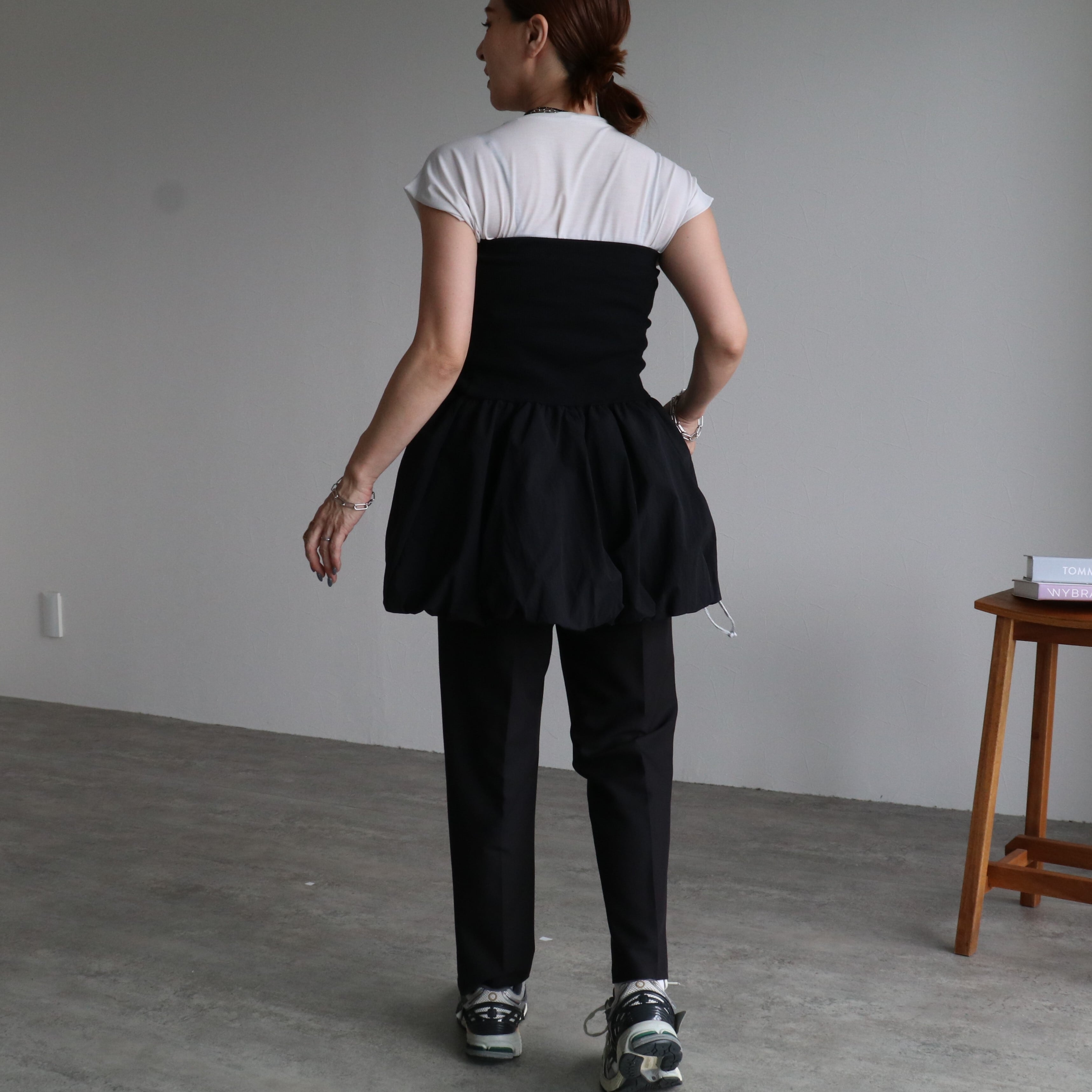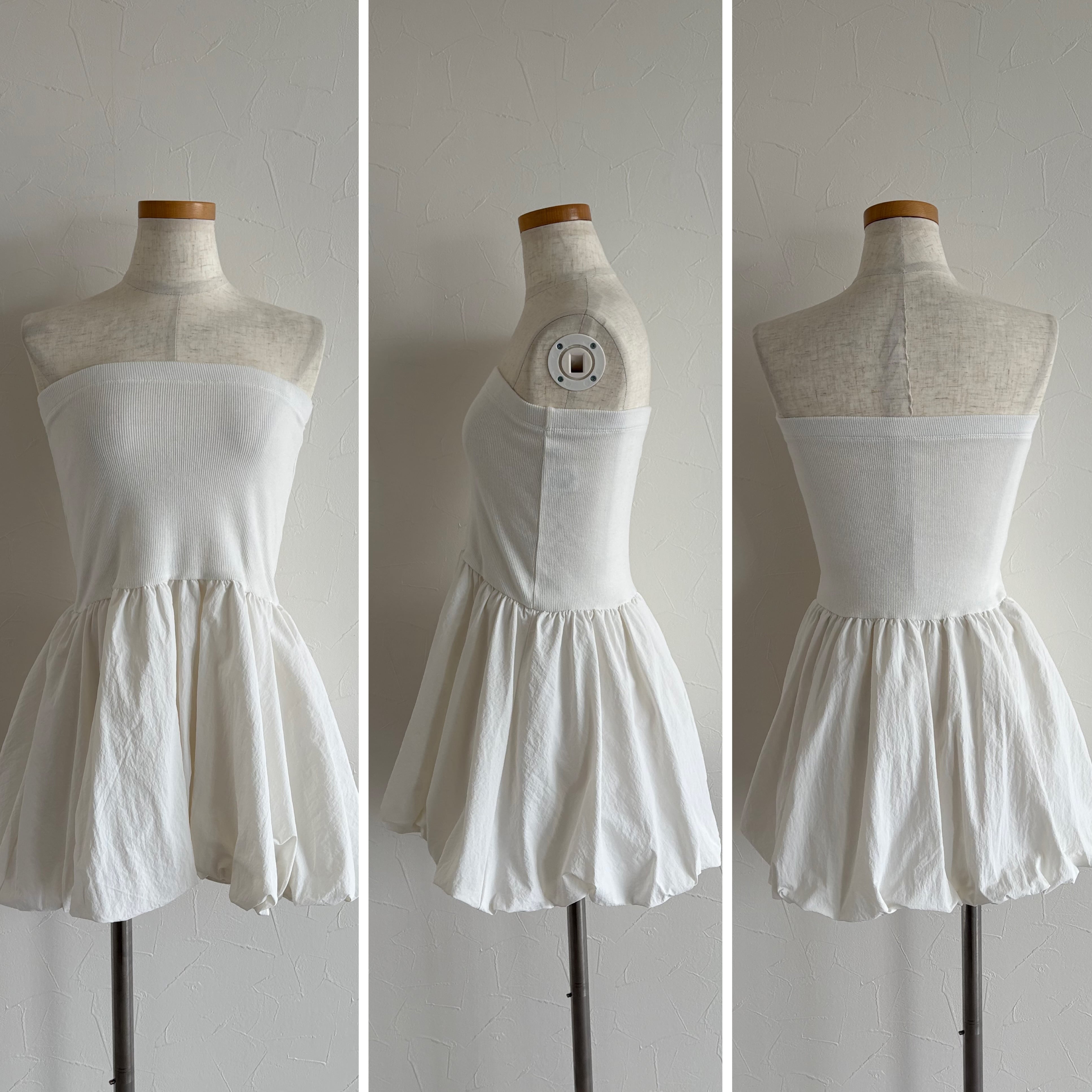 女性らしいベアトップに、トレンドのバルーンデザインをプラスしたビスチェ。