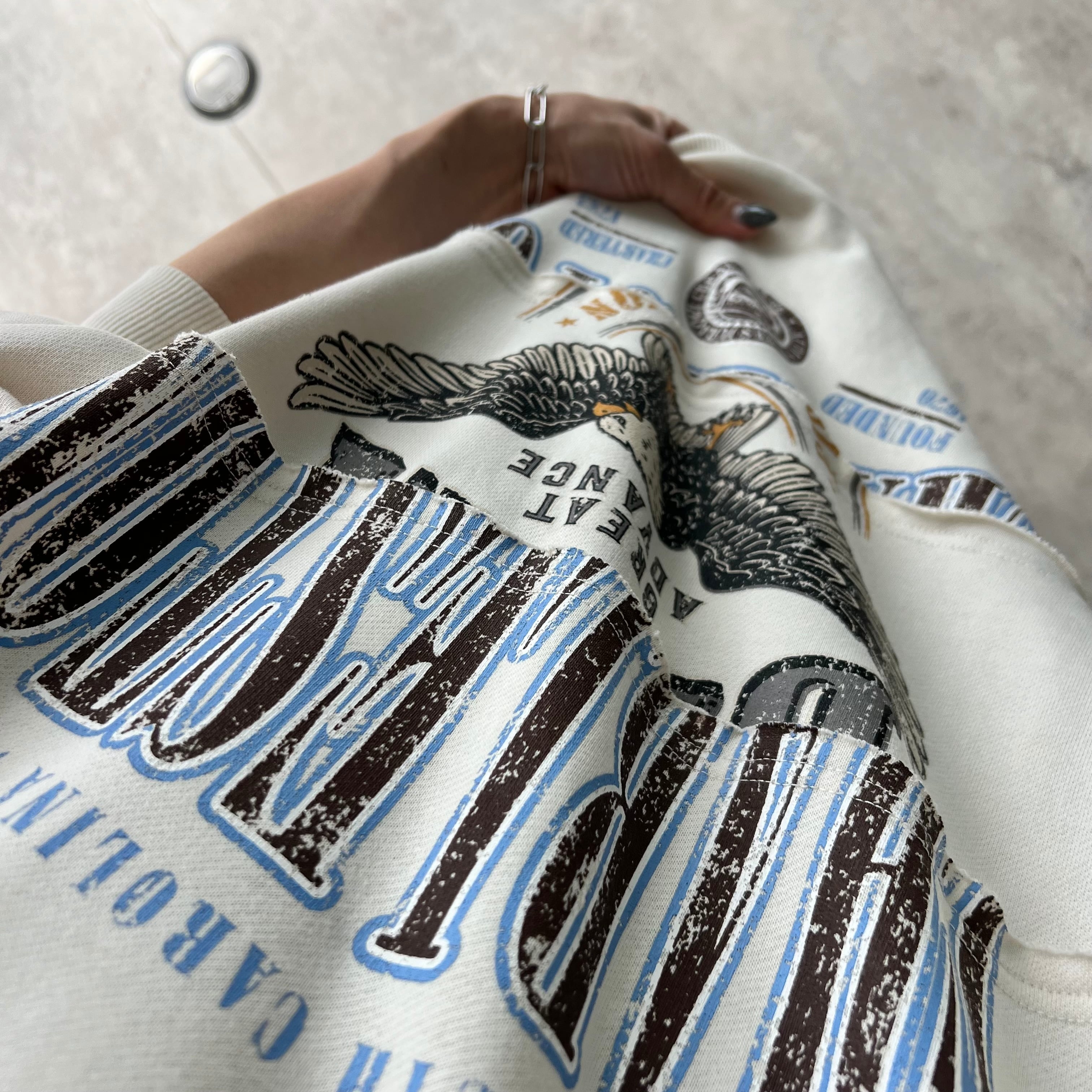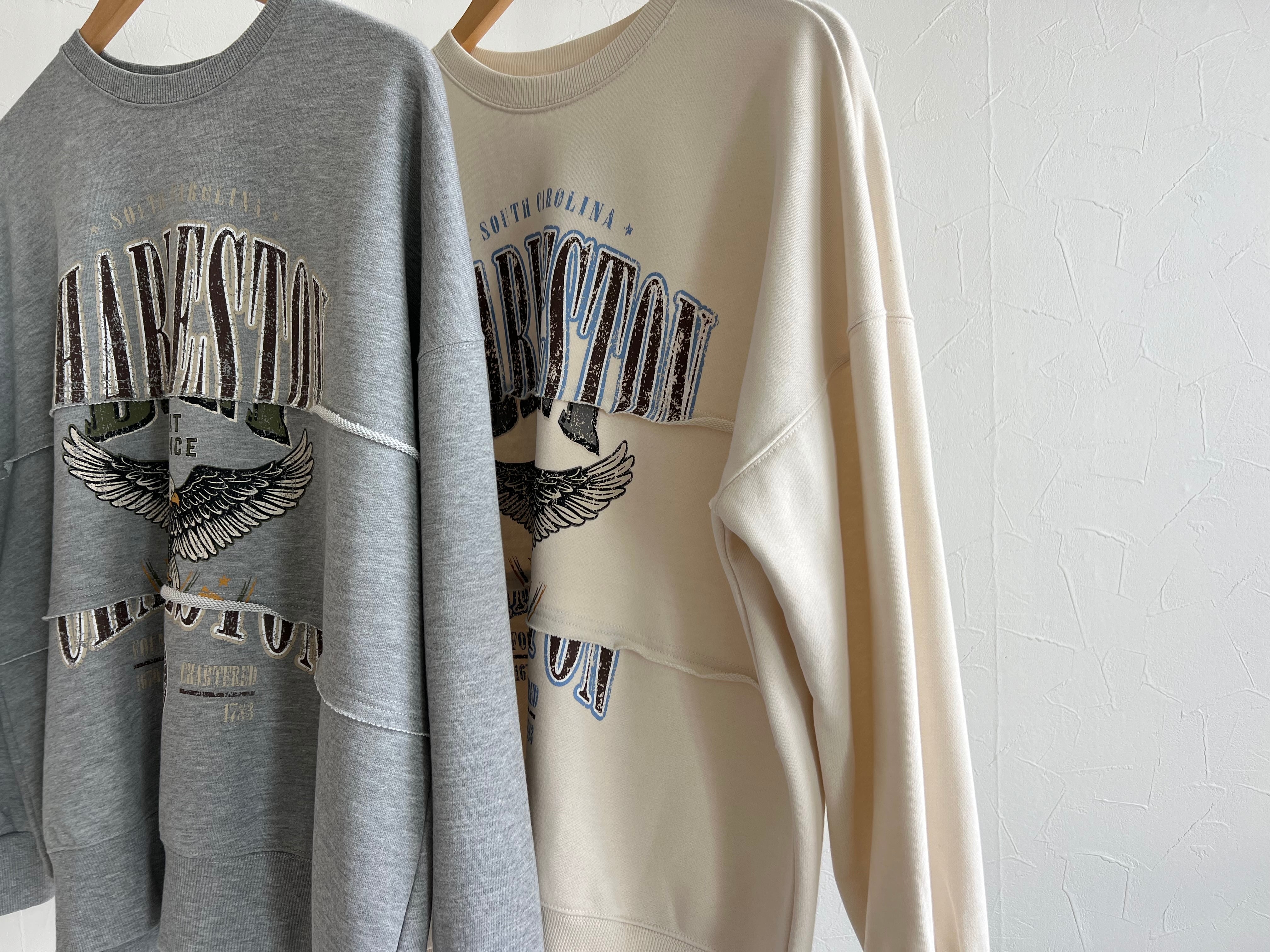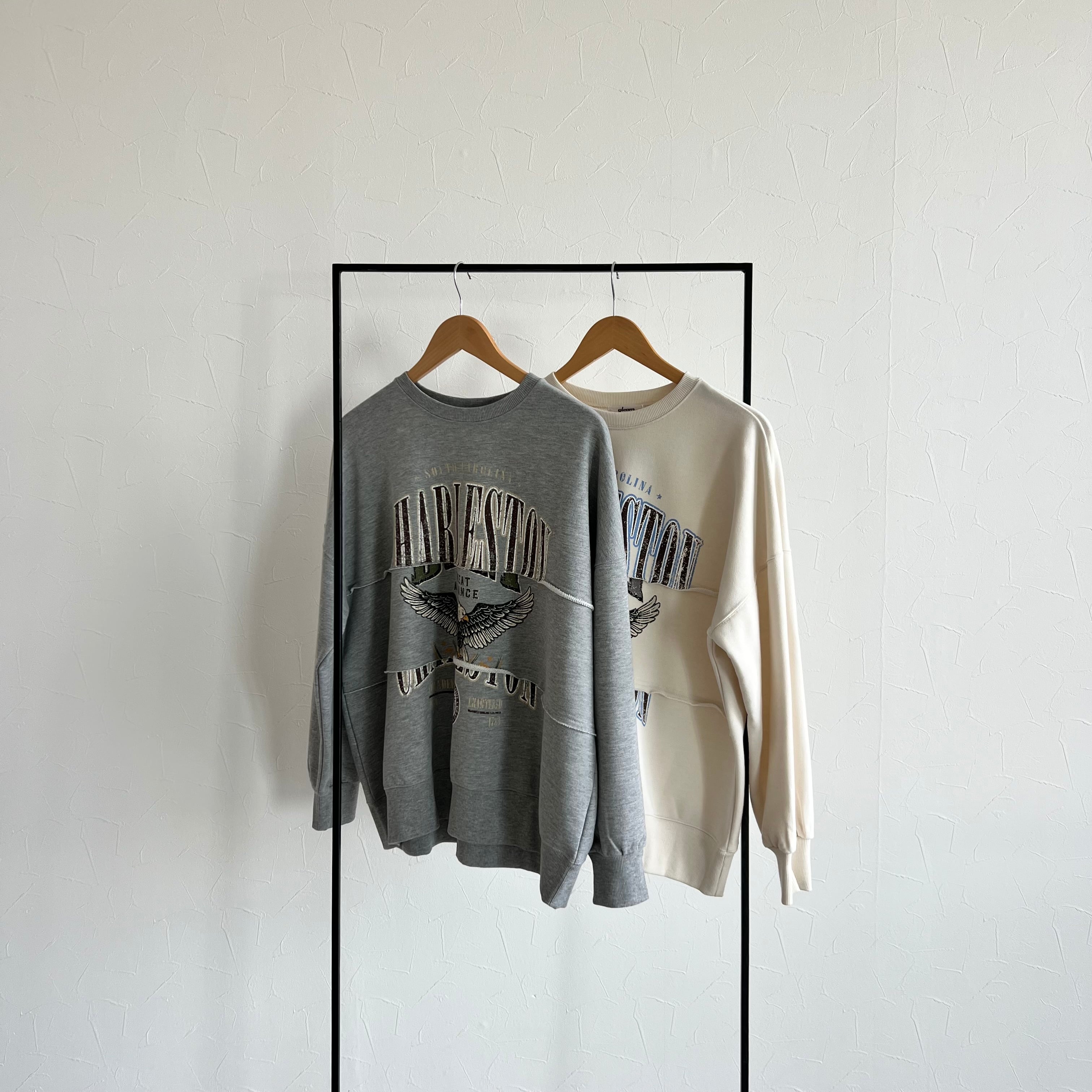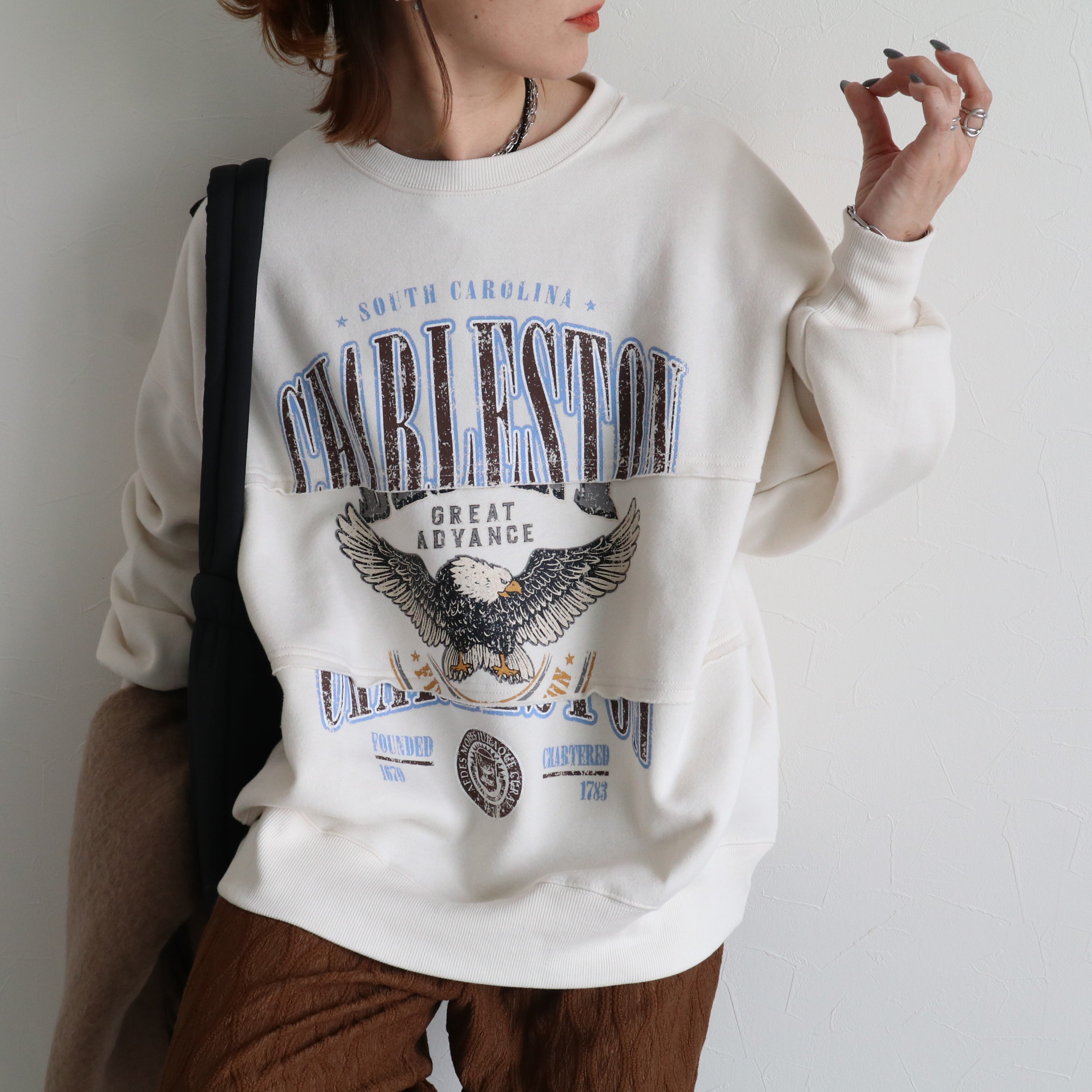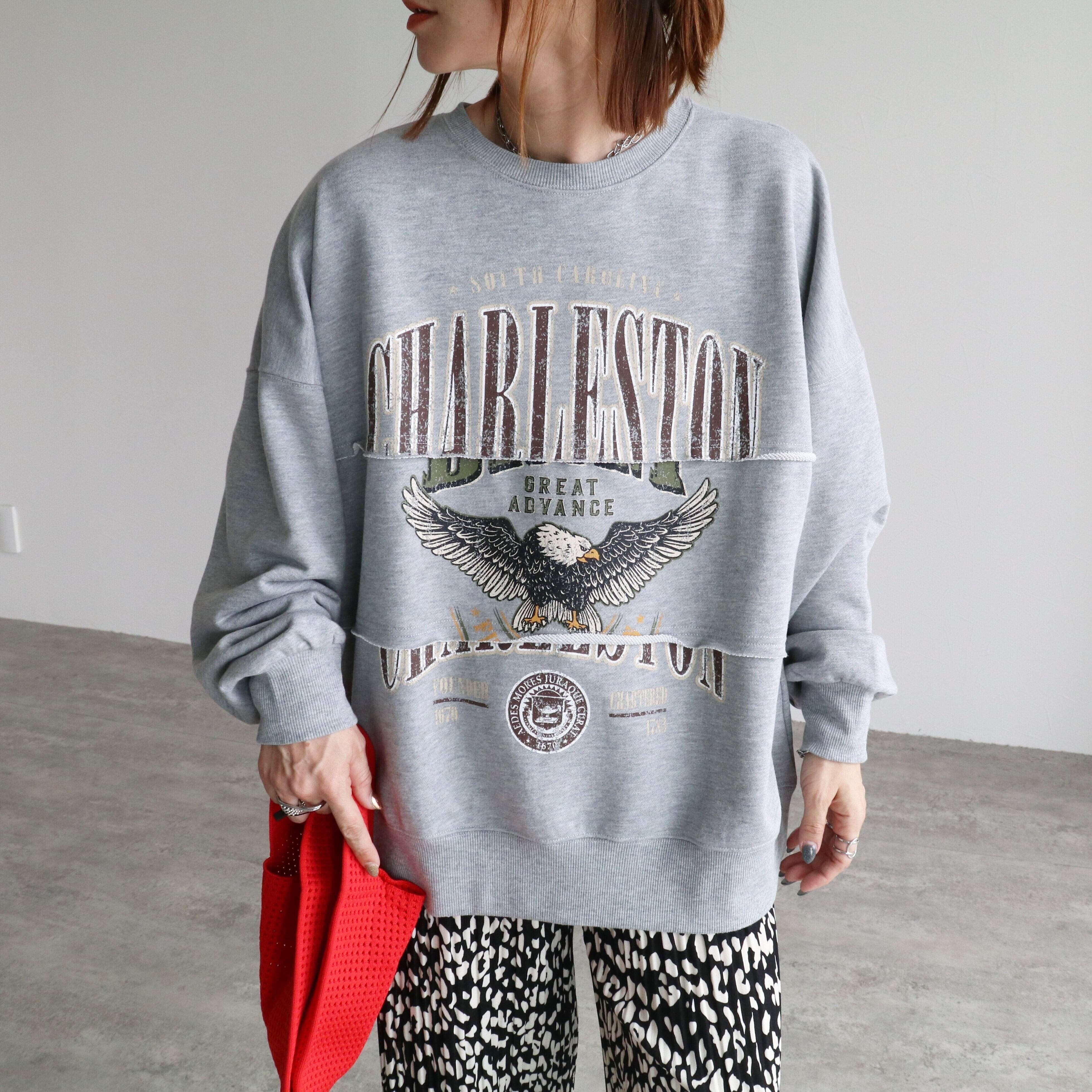 大きめのイーグルプリントが目を惹くリメイク風スウェット★