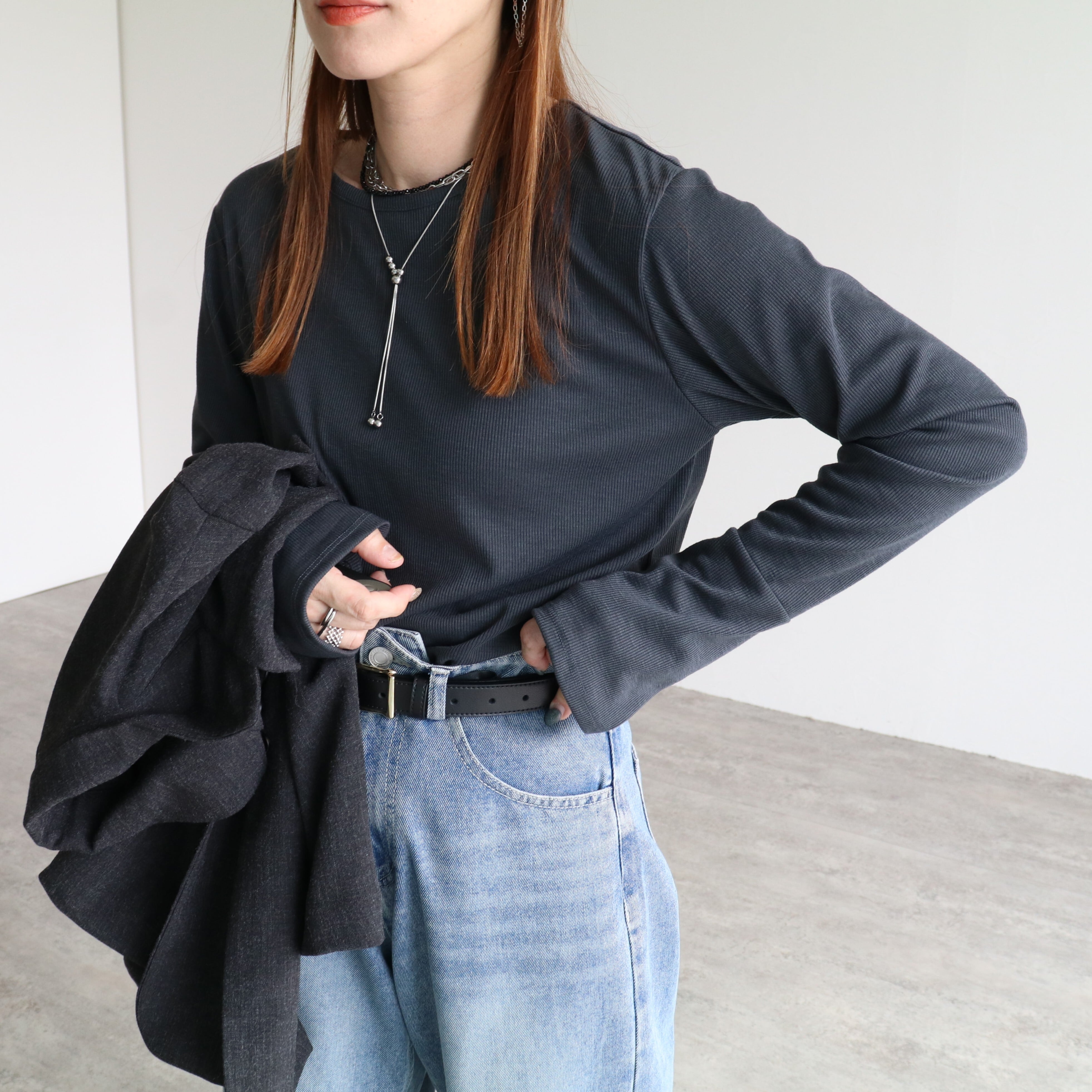 素材は細めのリブでさらっとした肌触り◎!