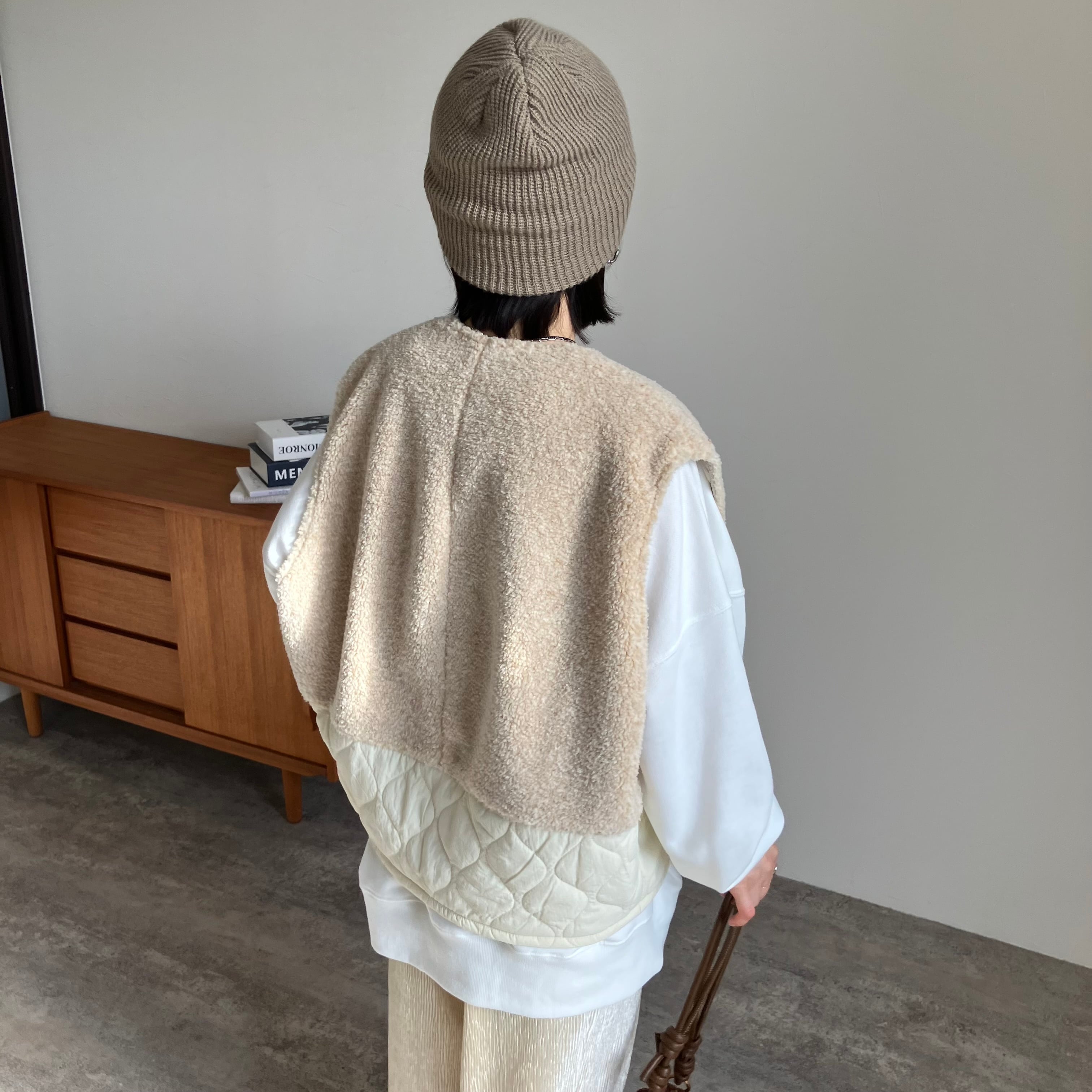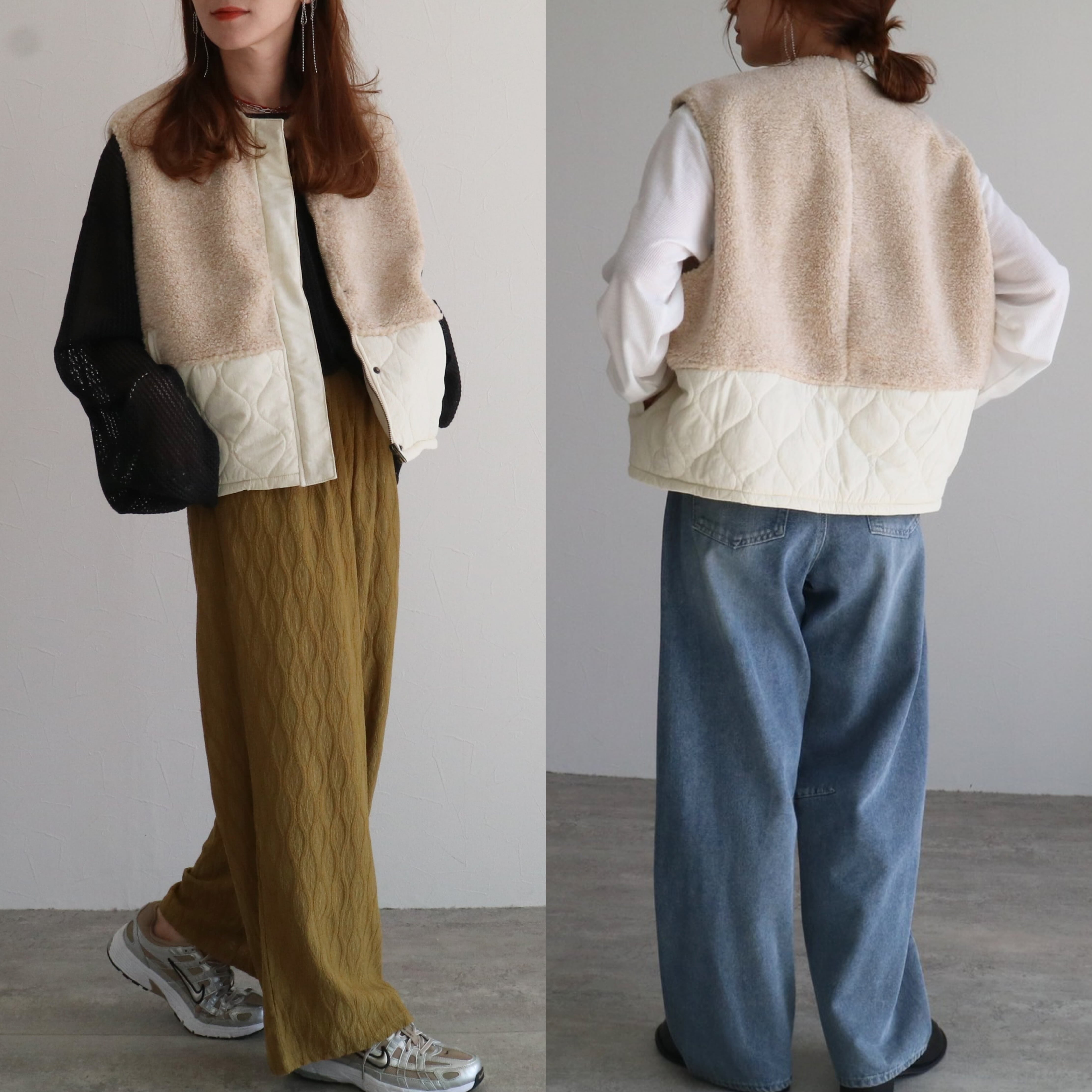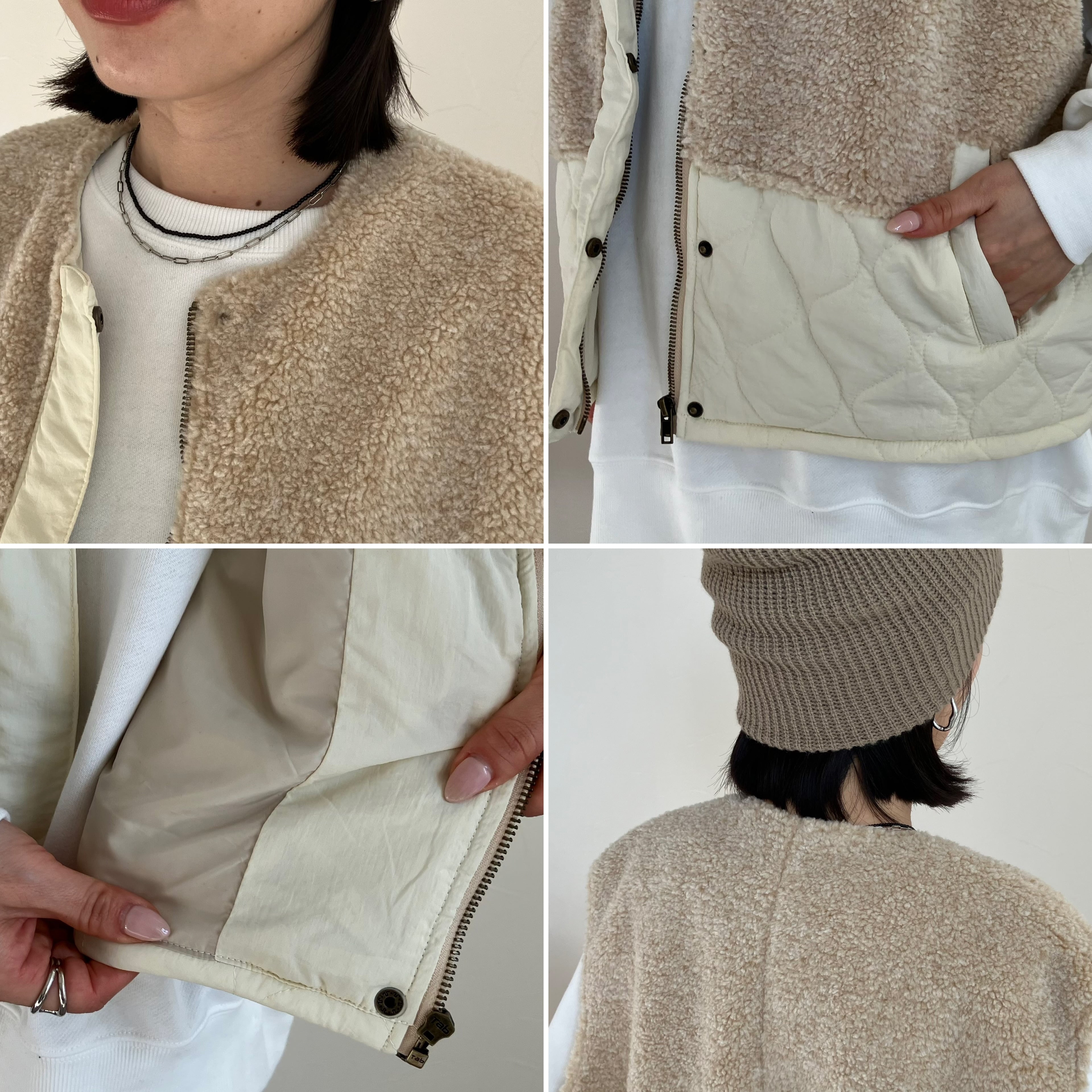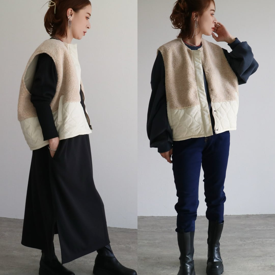 洗練されたデザインと心地よさを兼ね備えたボア×キルティングエッグベスト♡