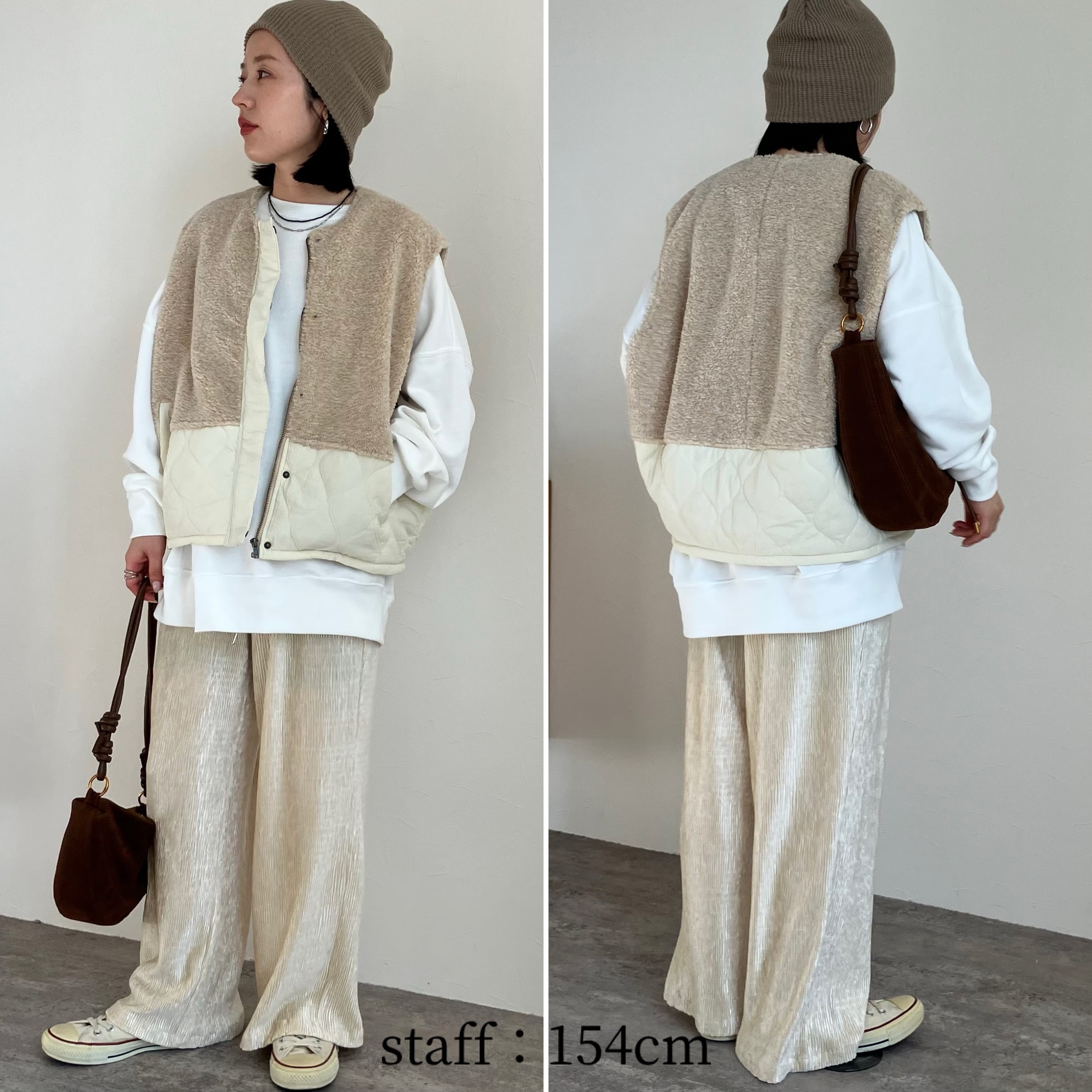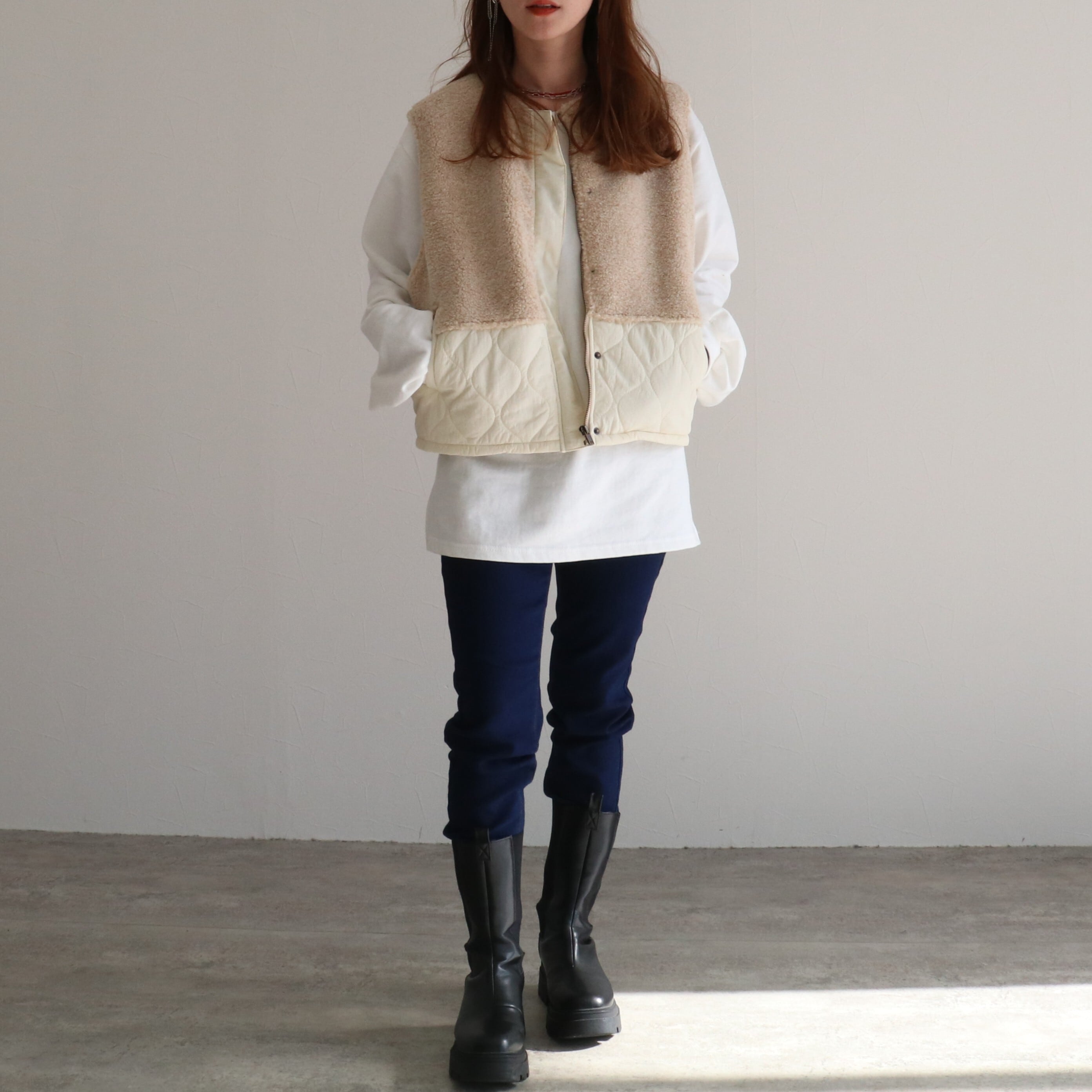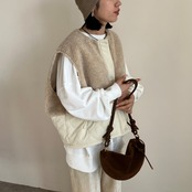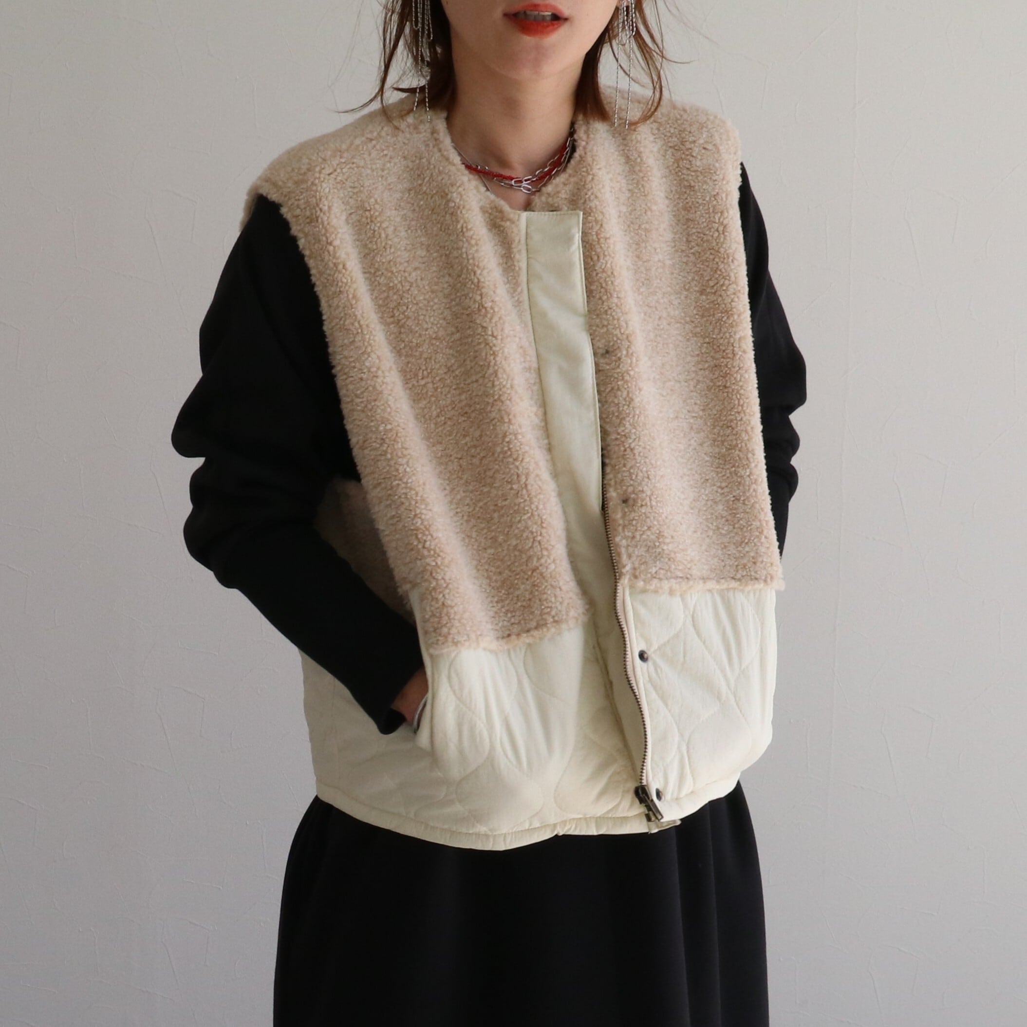 洗練されたデザインと心地よさを兼ね備えたボア×キルティングエッグベスト♡