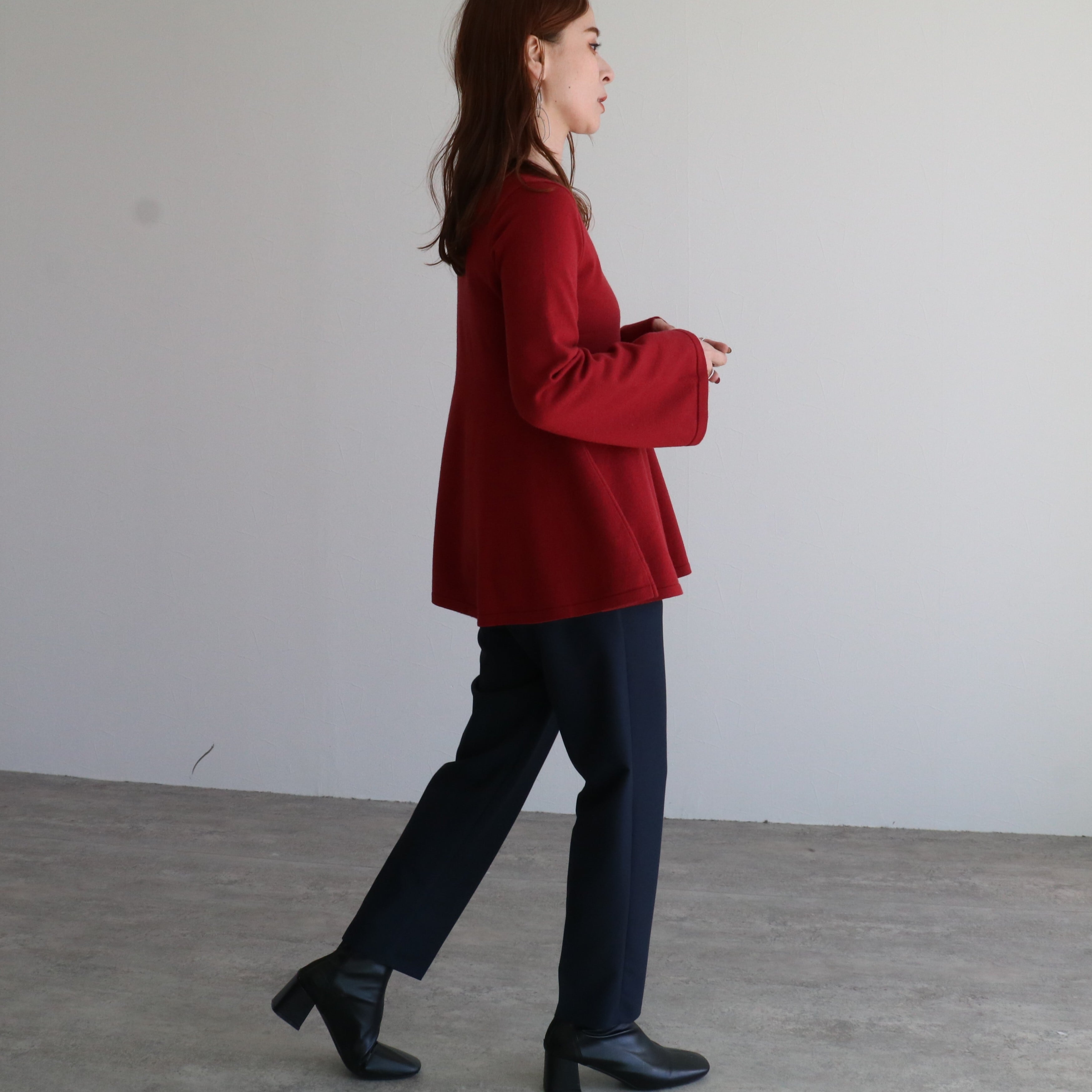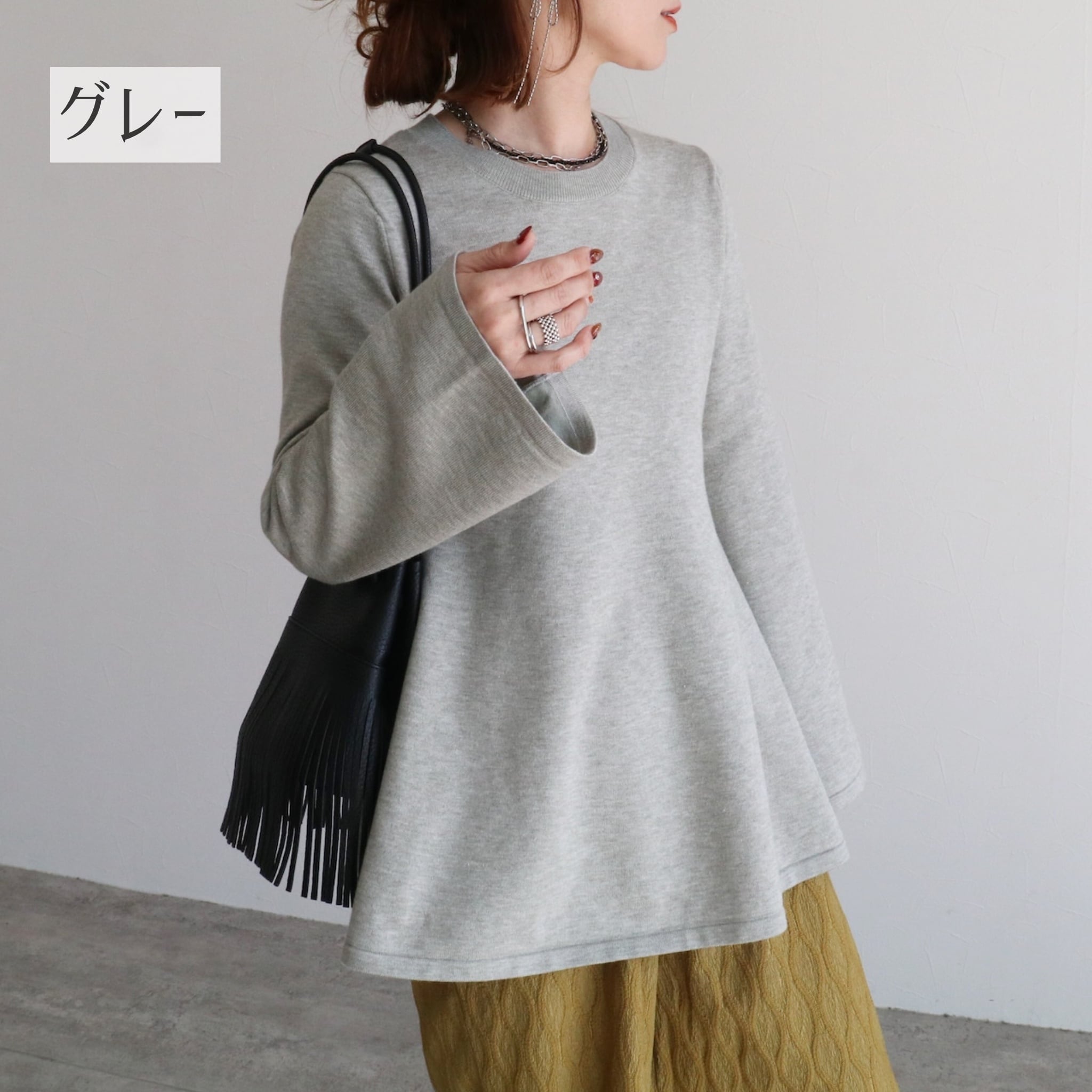 コンパクトなニットのウエストから広がる、ペプラムシルエットが魅力的♡