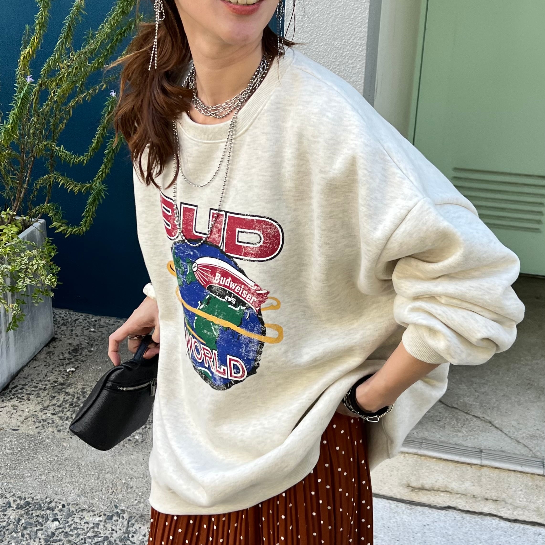 着こなしやすい古着テイストの宇宙プリントがアイキャッチに♩