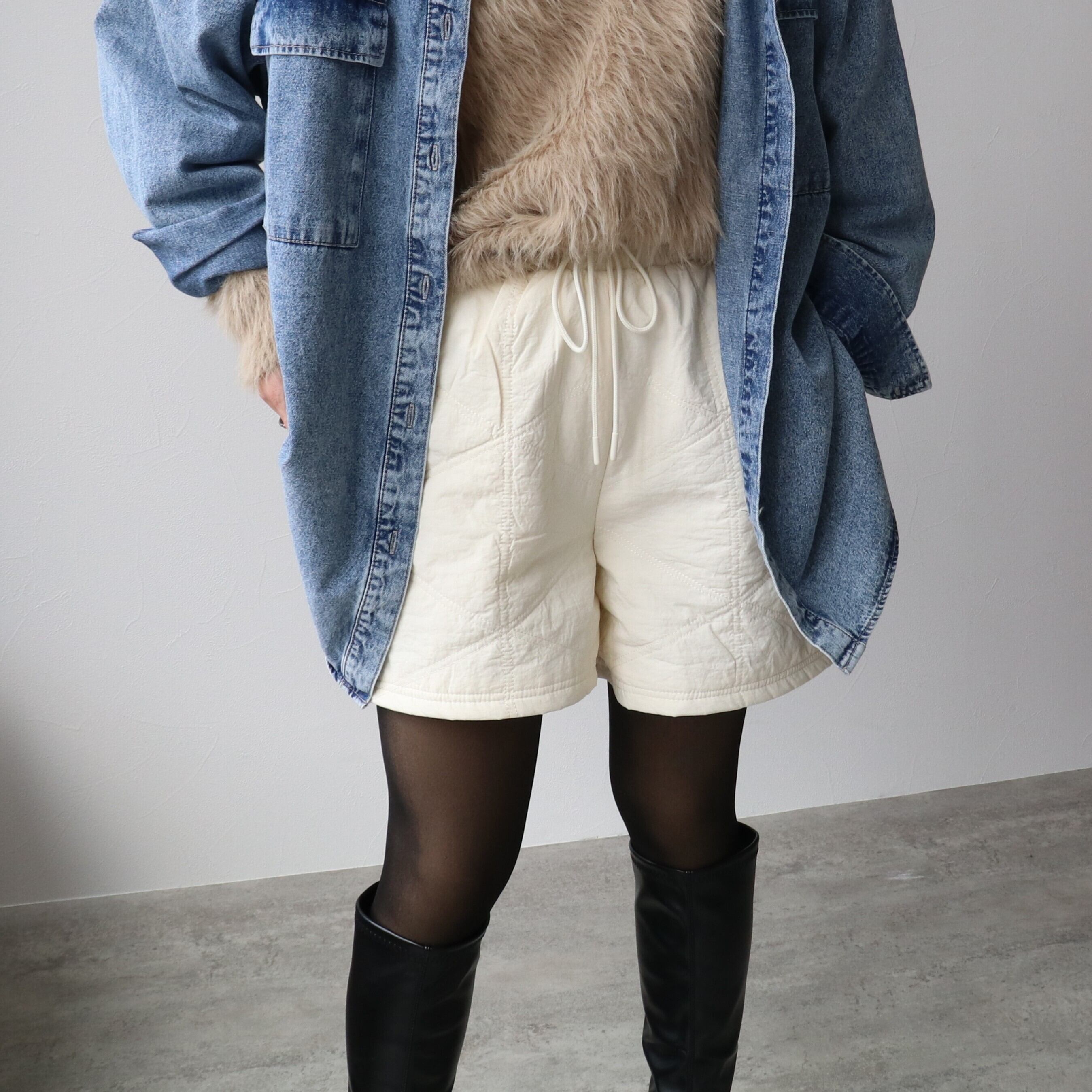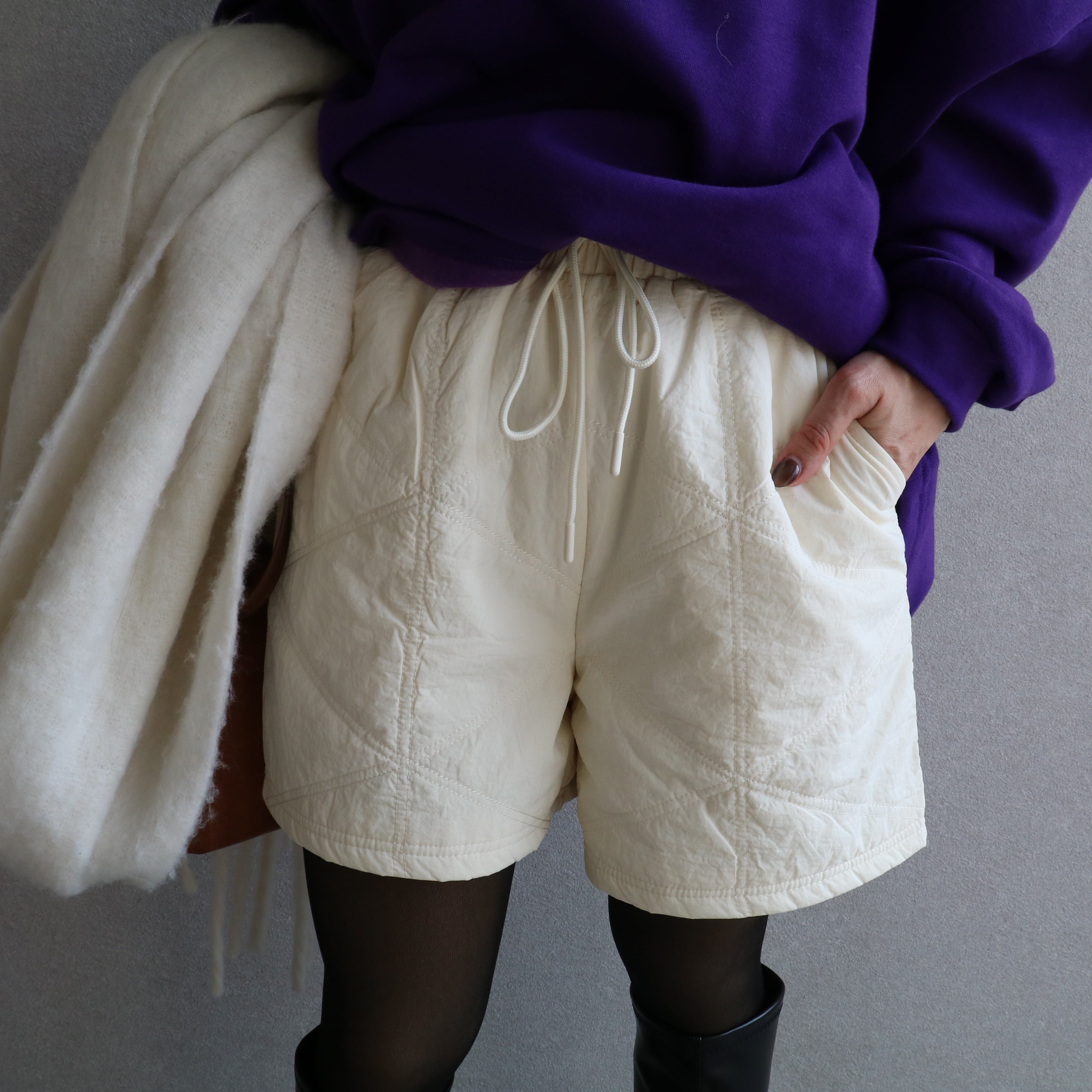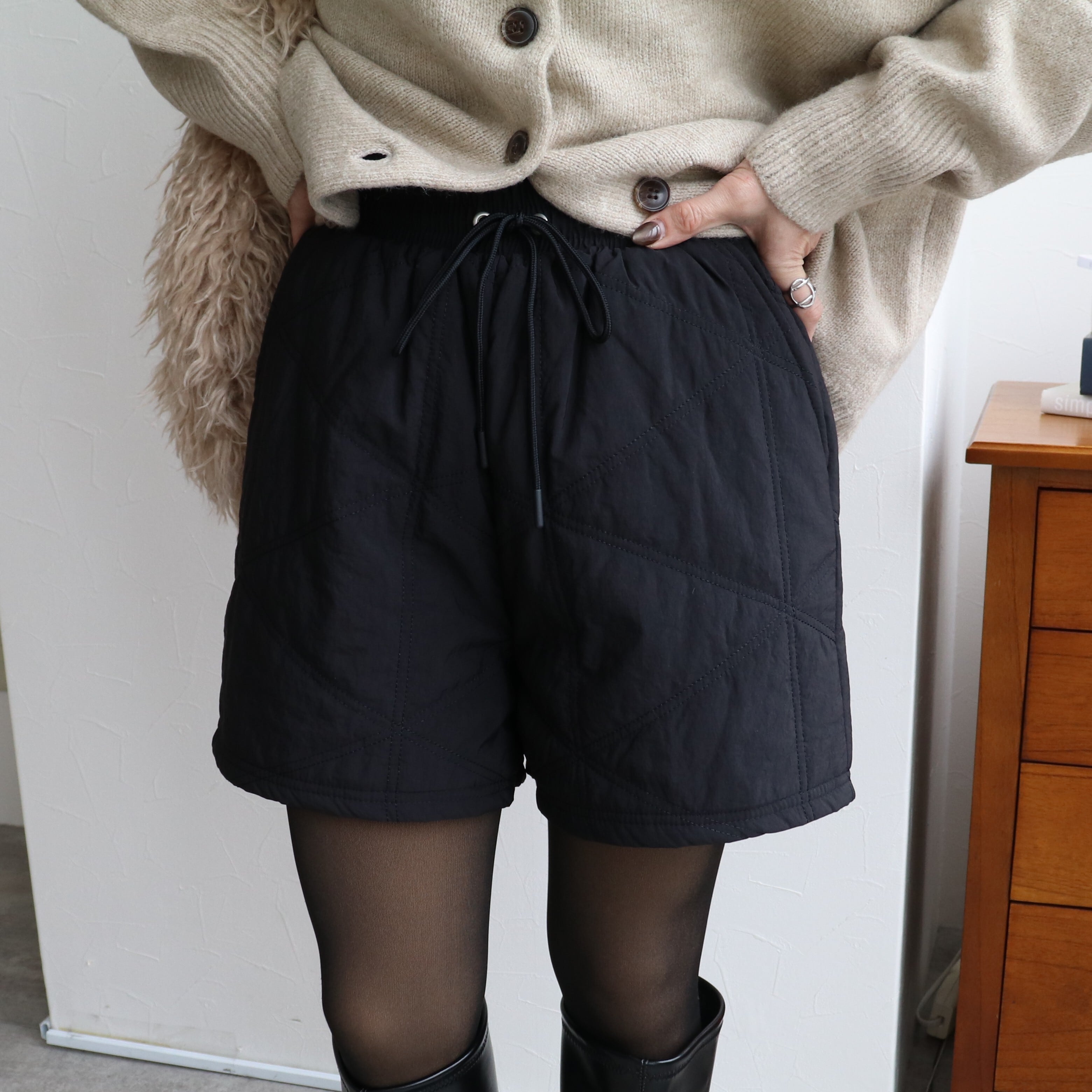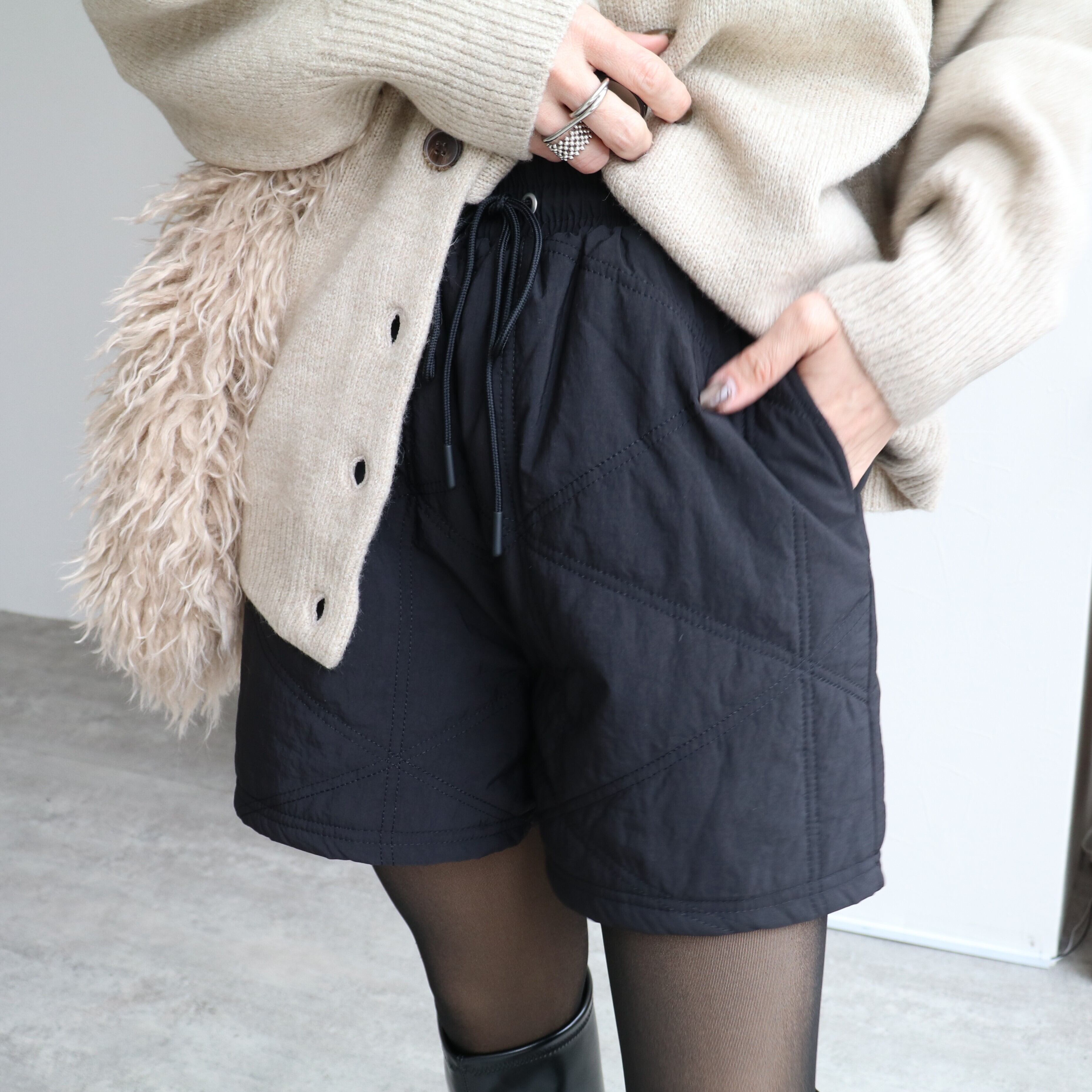 【秋冬に大活躍する上品で高見えするキルトのショートパンツ】