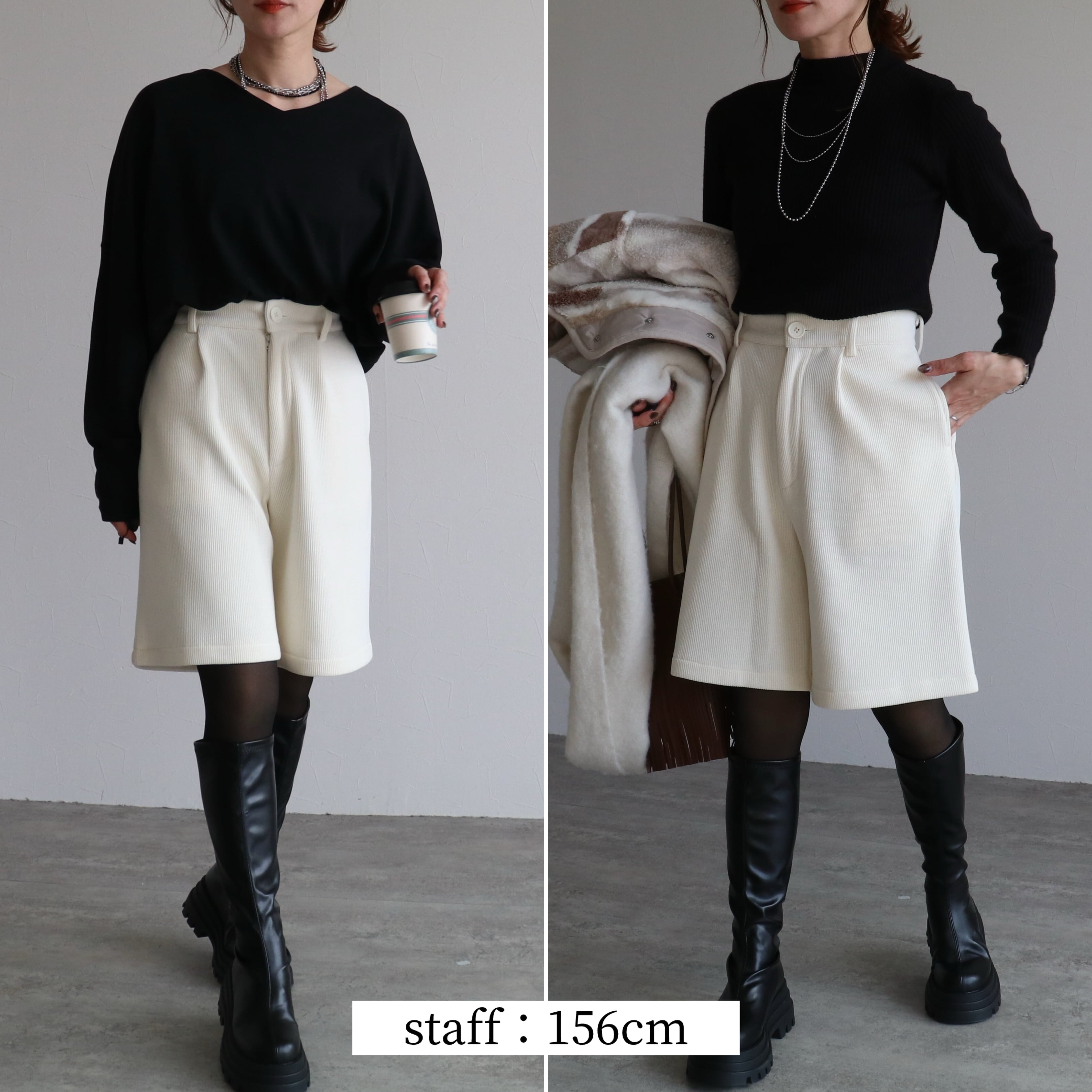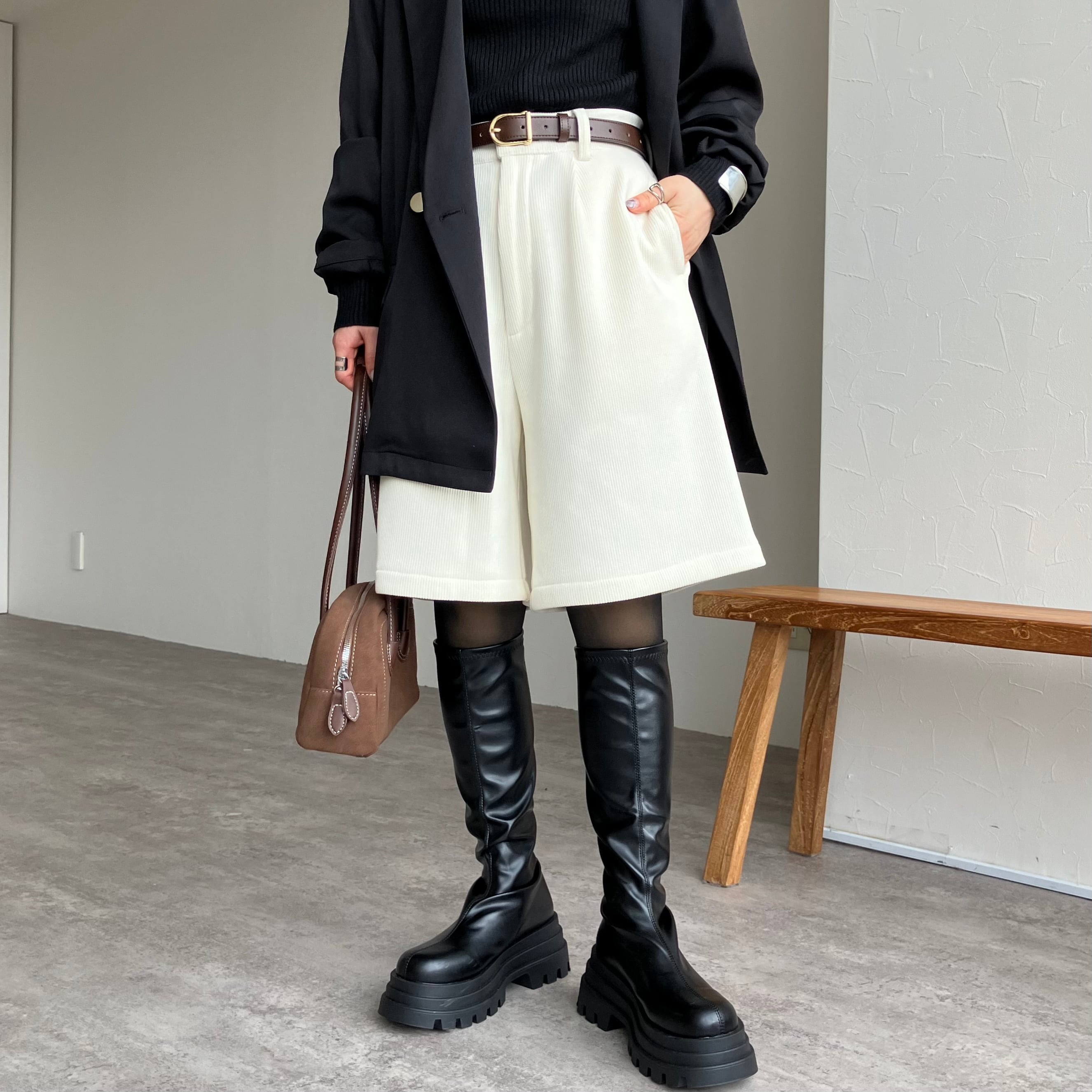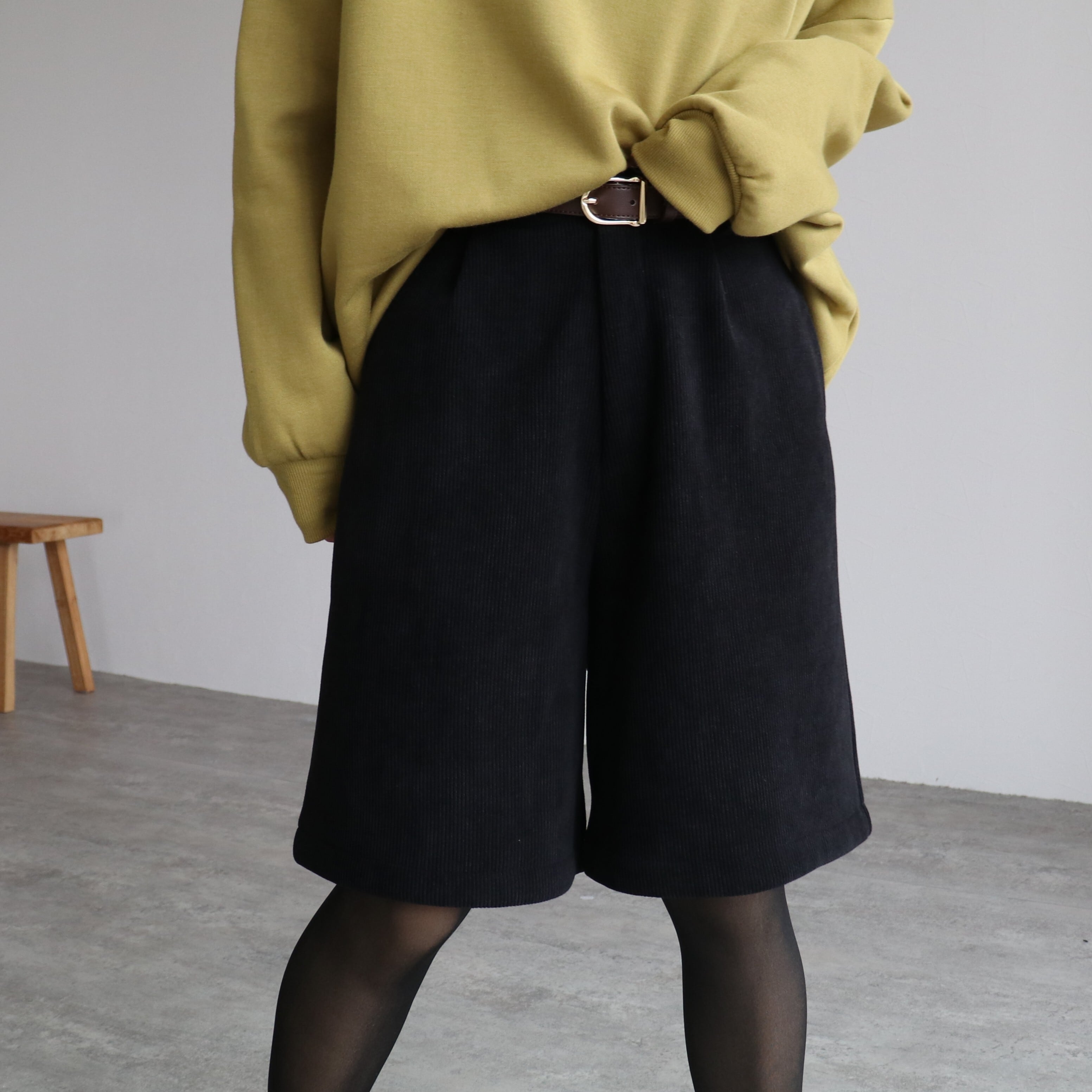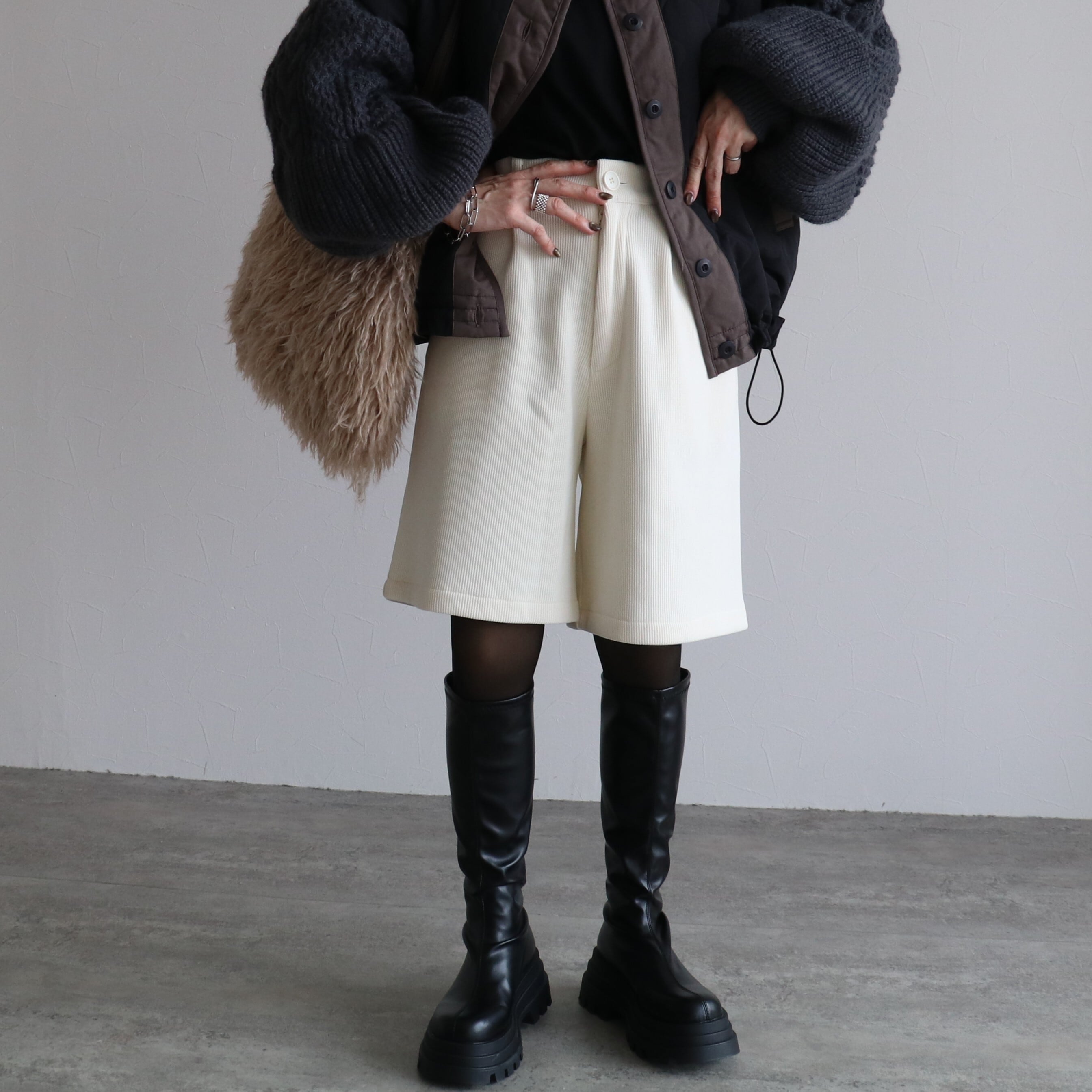 シルエットと暖かさを兼ね備えたコーデュロイ素材のショートパンツ。