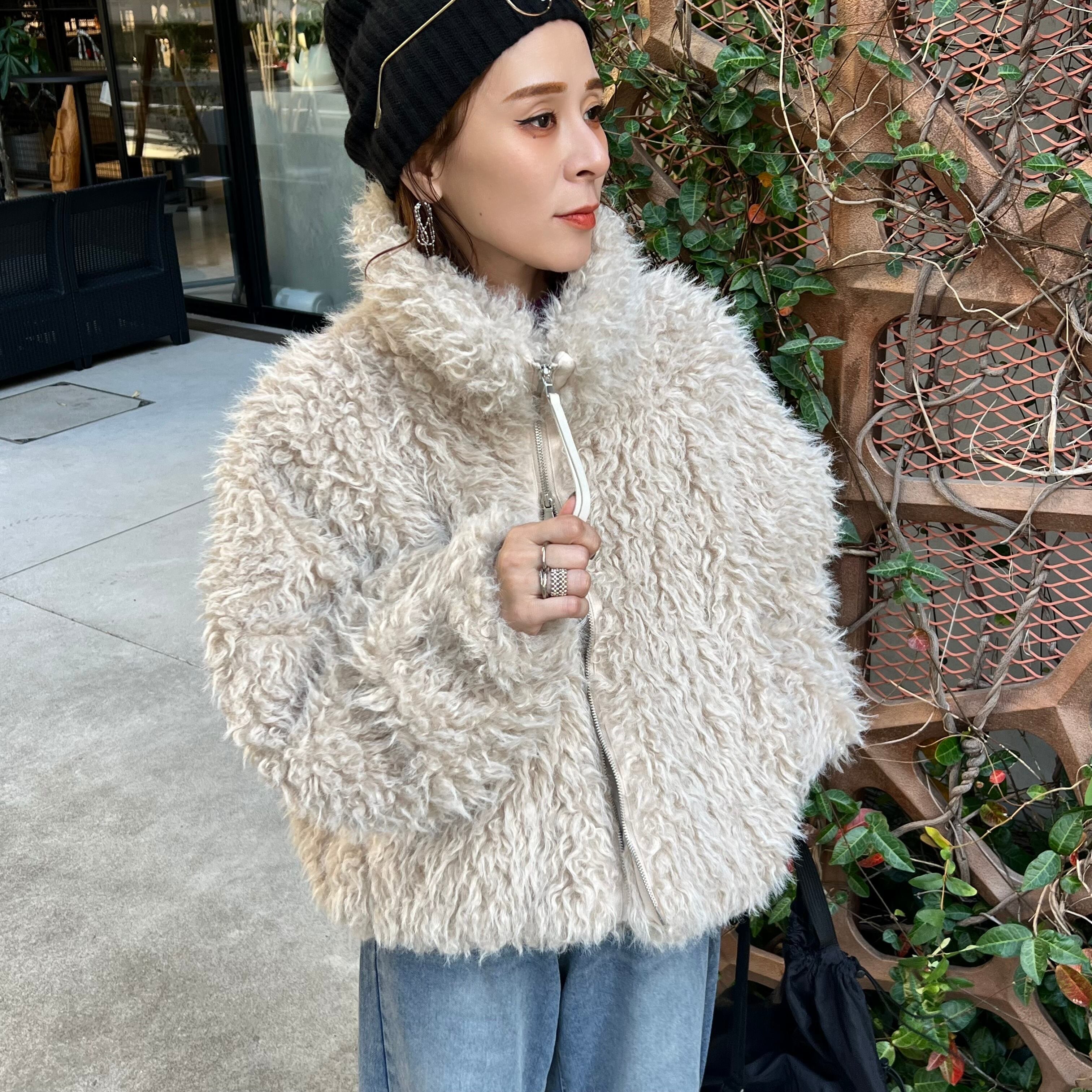 表情豊かな毛足の長いファーと今季注目のダブルジップデザインを組み合わせた、存在感のあるファーブルゾン。