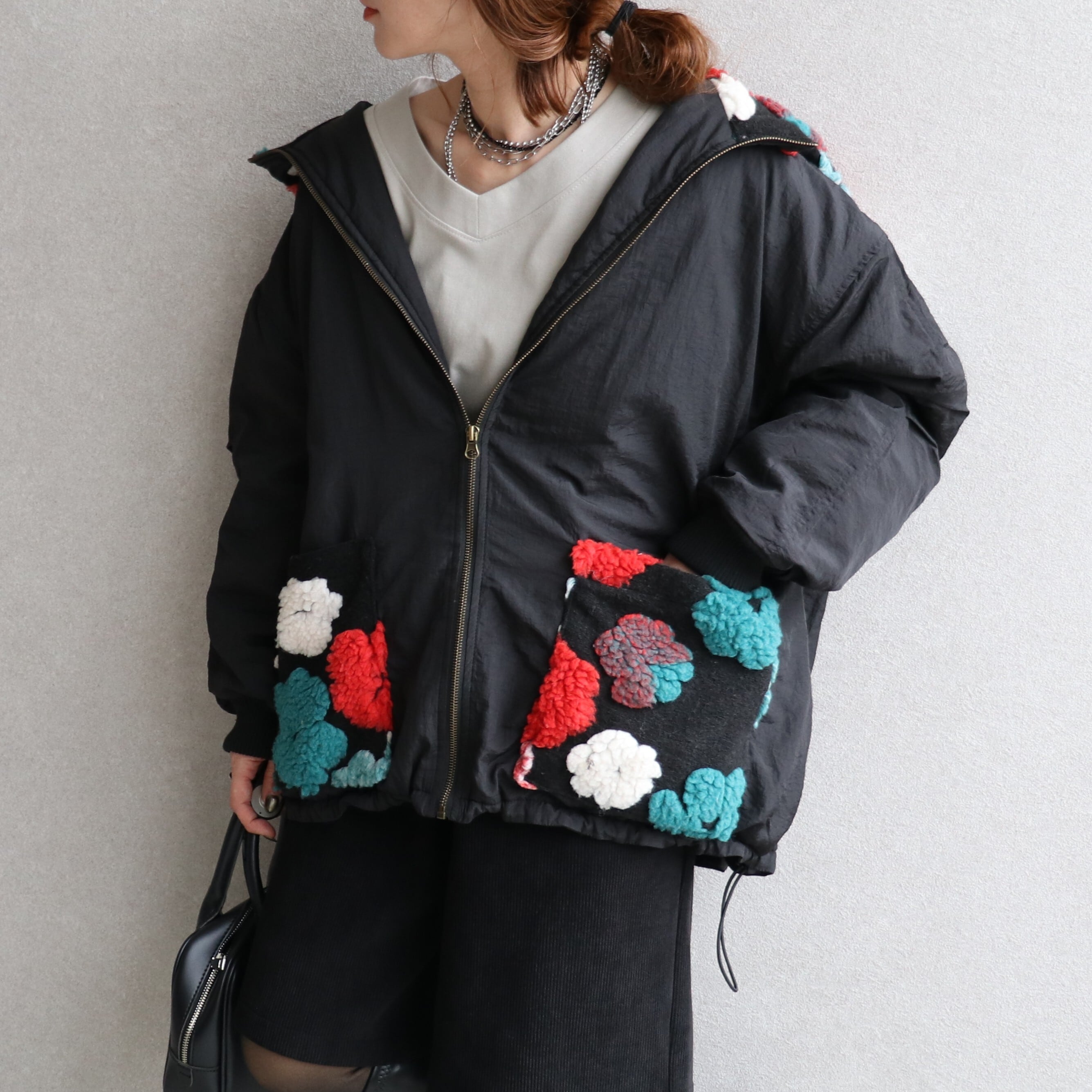 柄ボア使いフードブルゾン【an-A251426L-z】宅配便送料無料/宅配便発送
