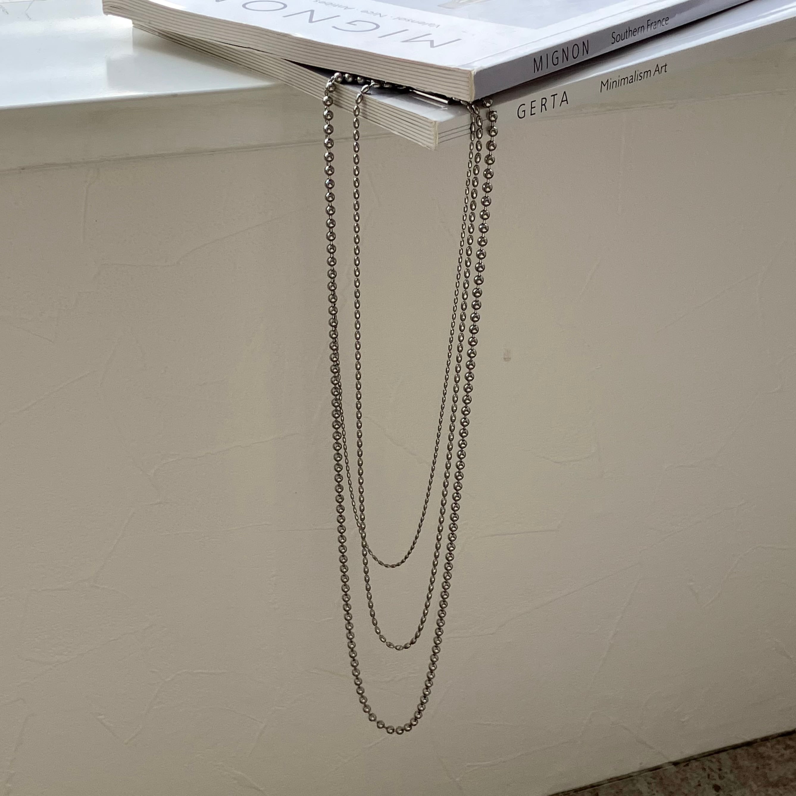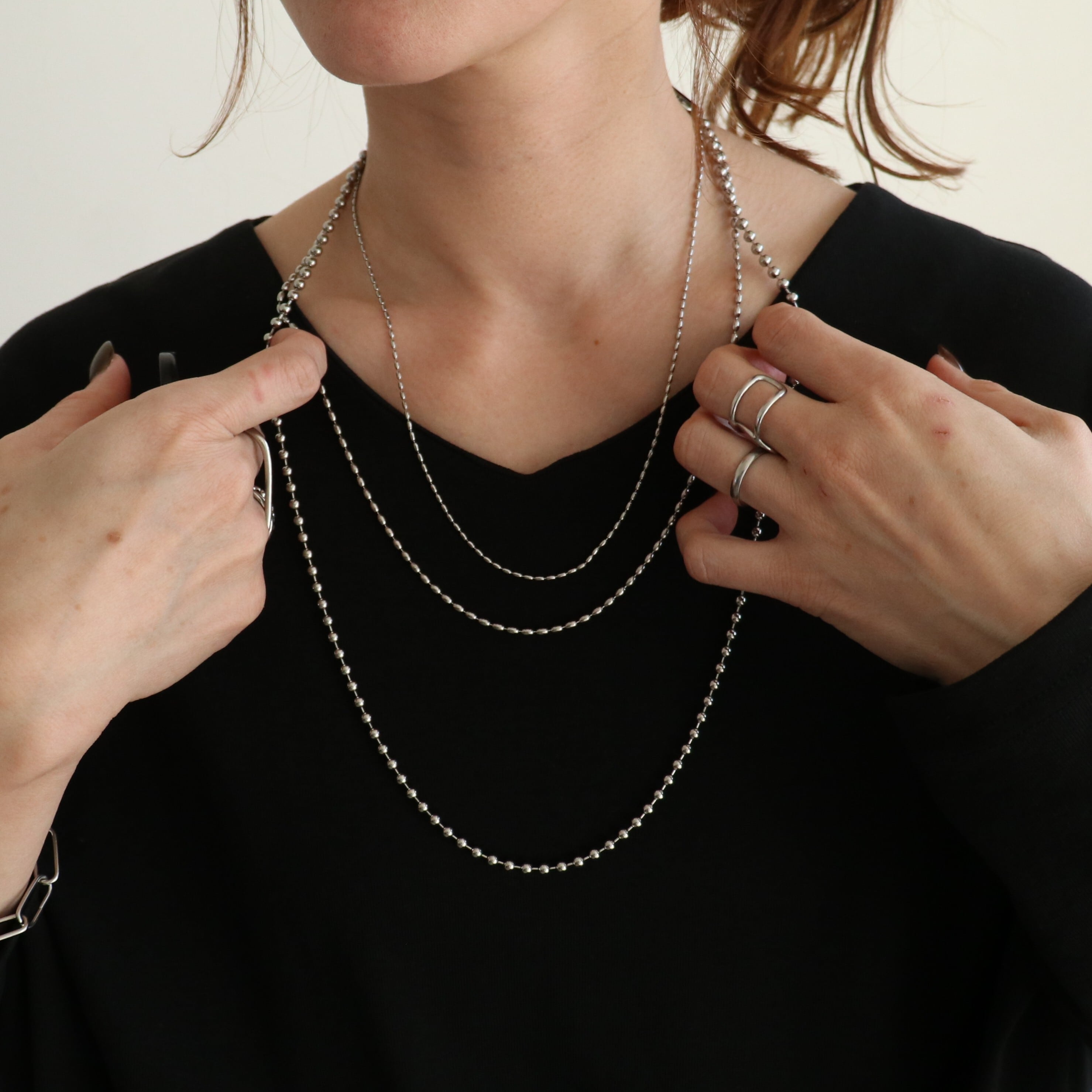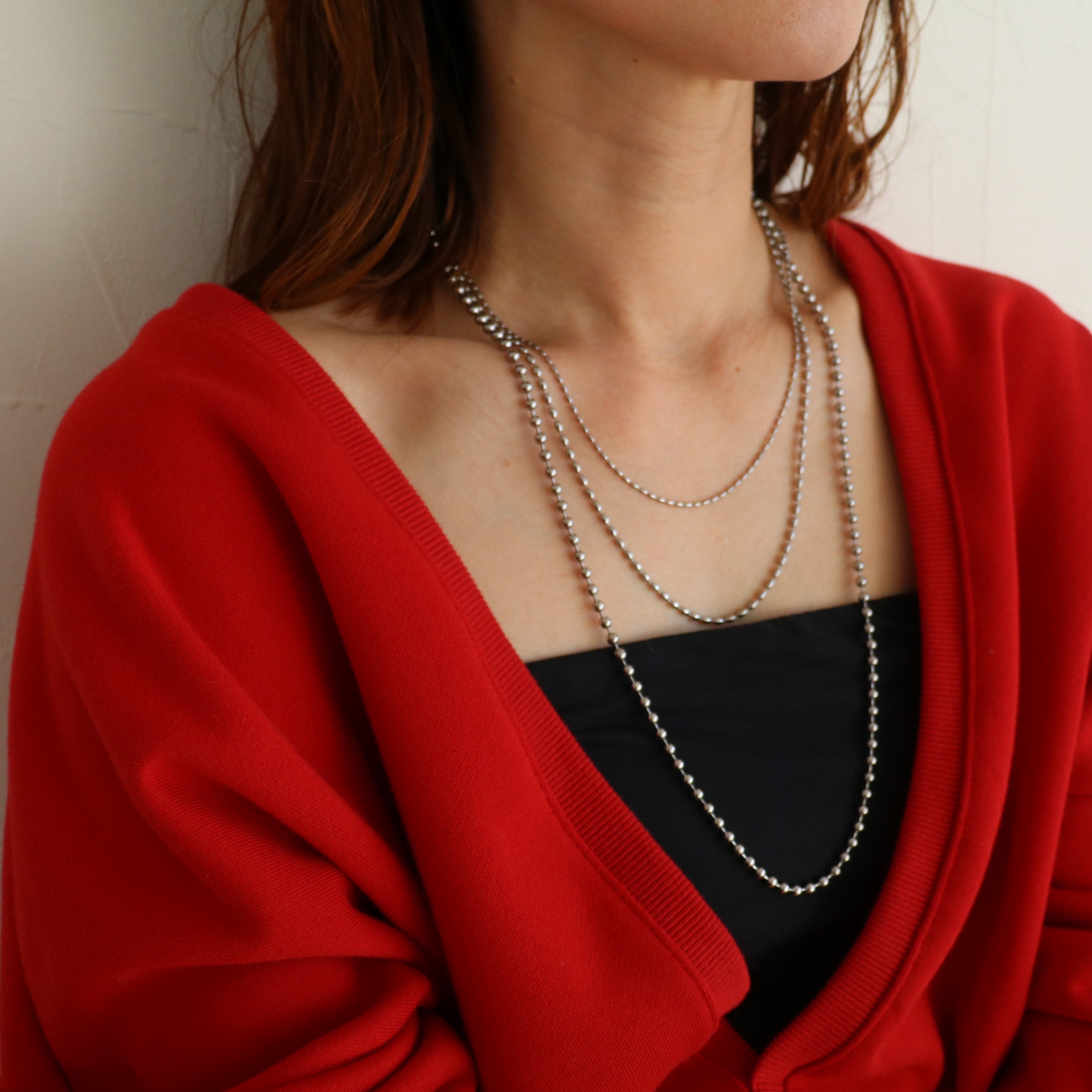 3種類の大きさのボールチェーンを使用したマンテルネックレス。