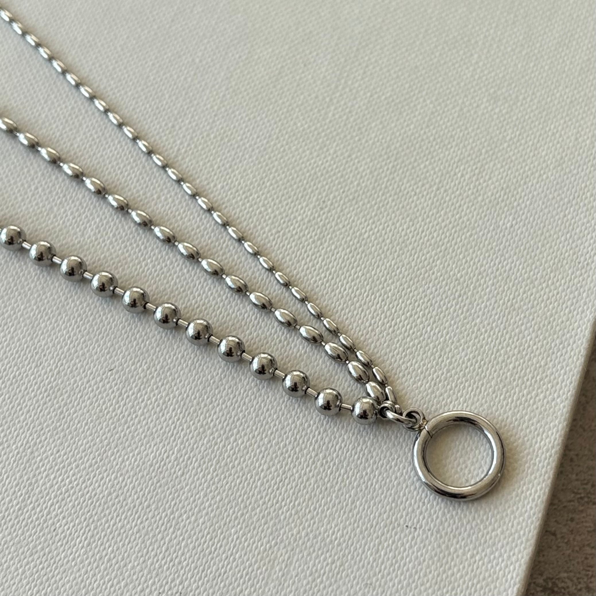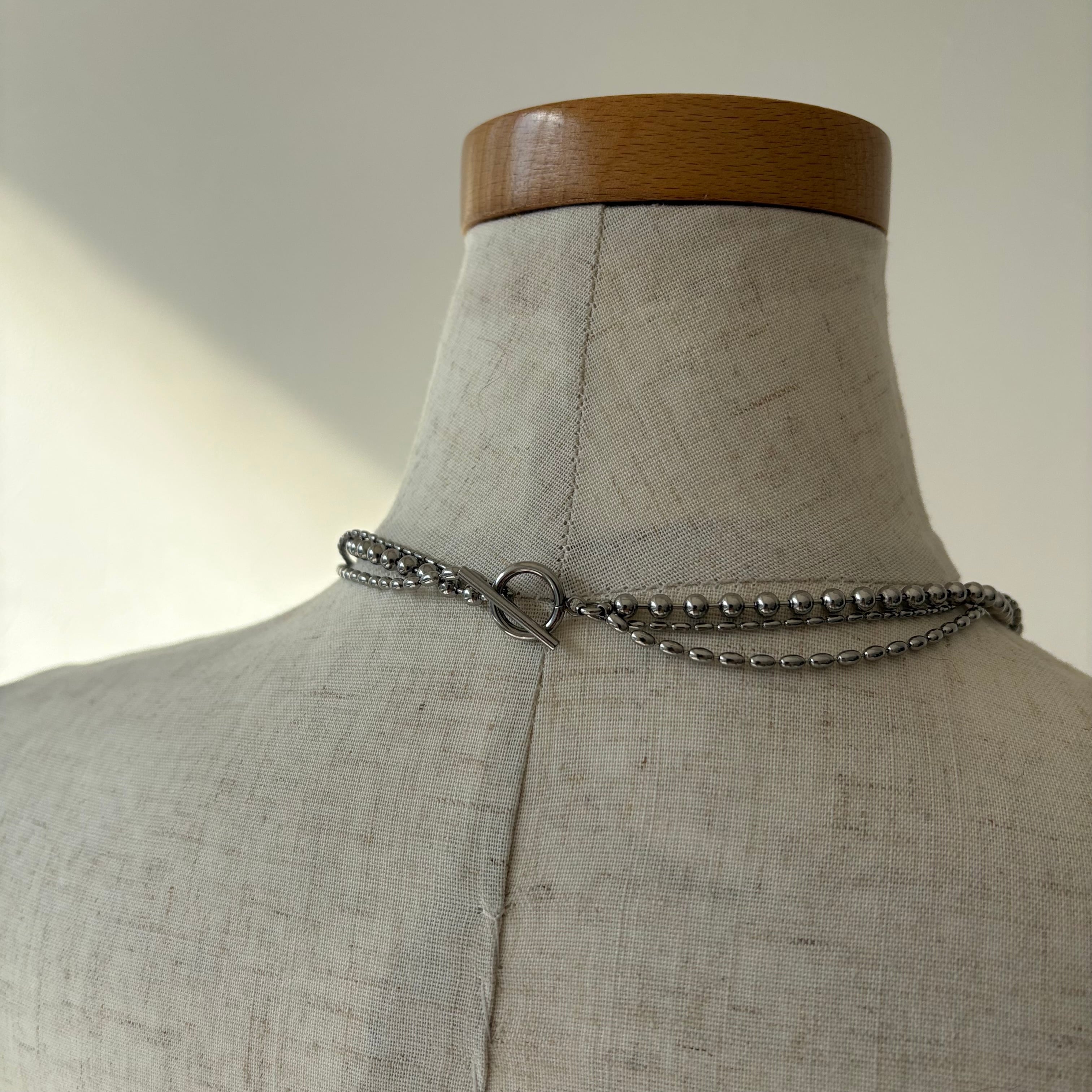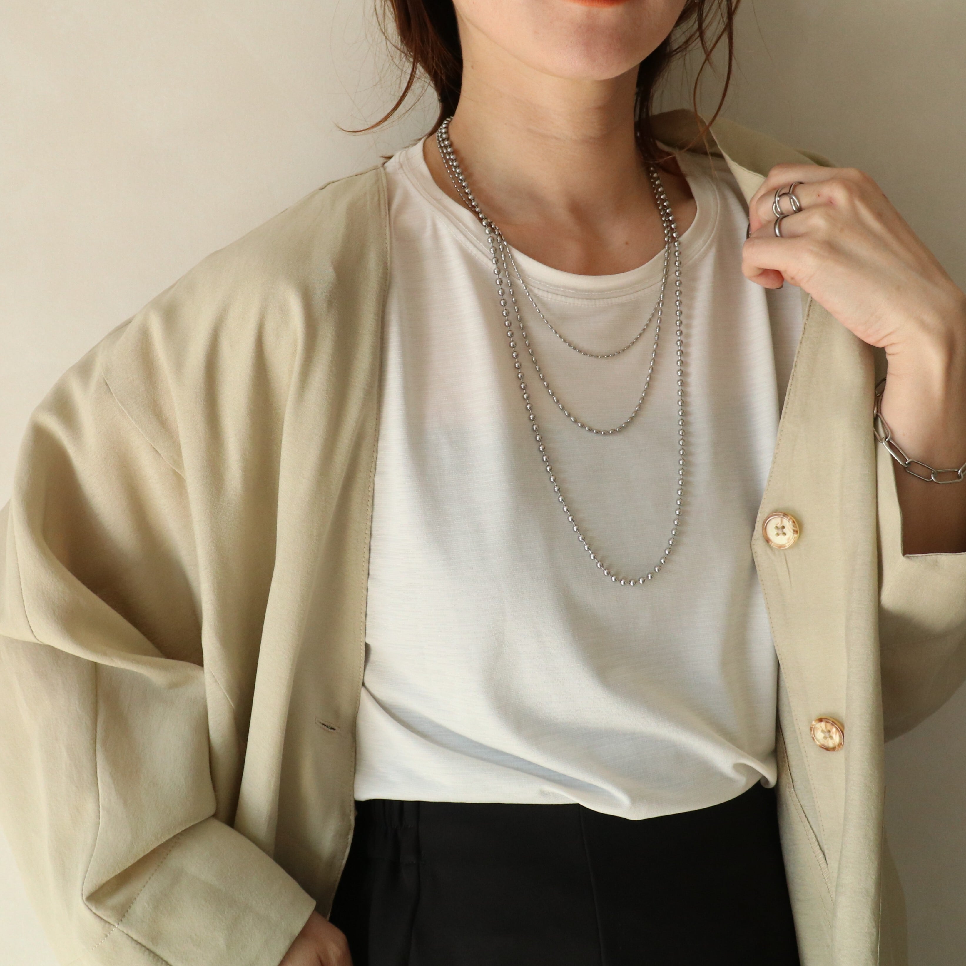 3種類の大きさのボールチェーンを使用したマンテルネックレス。