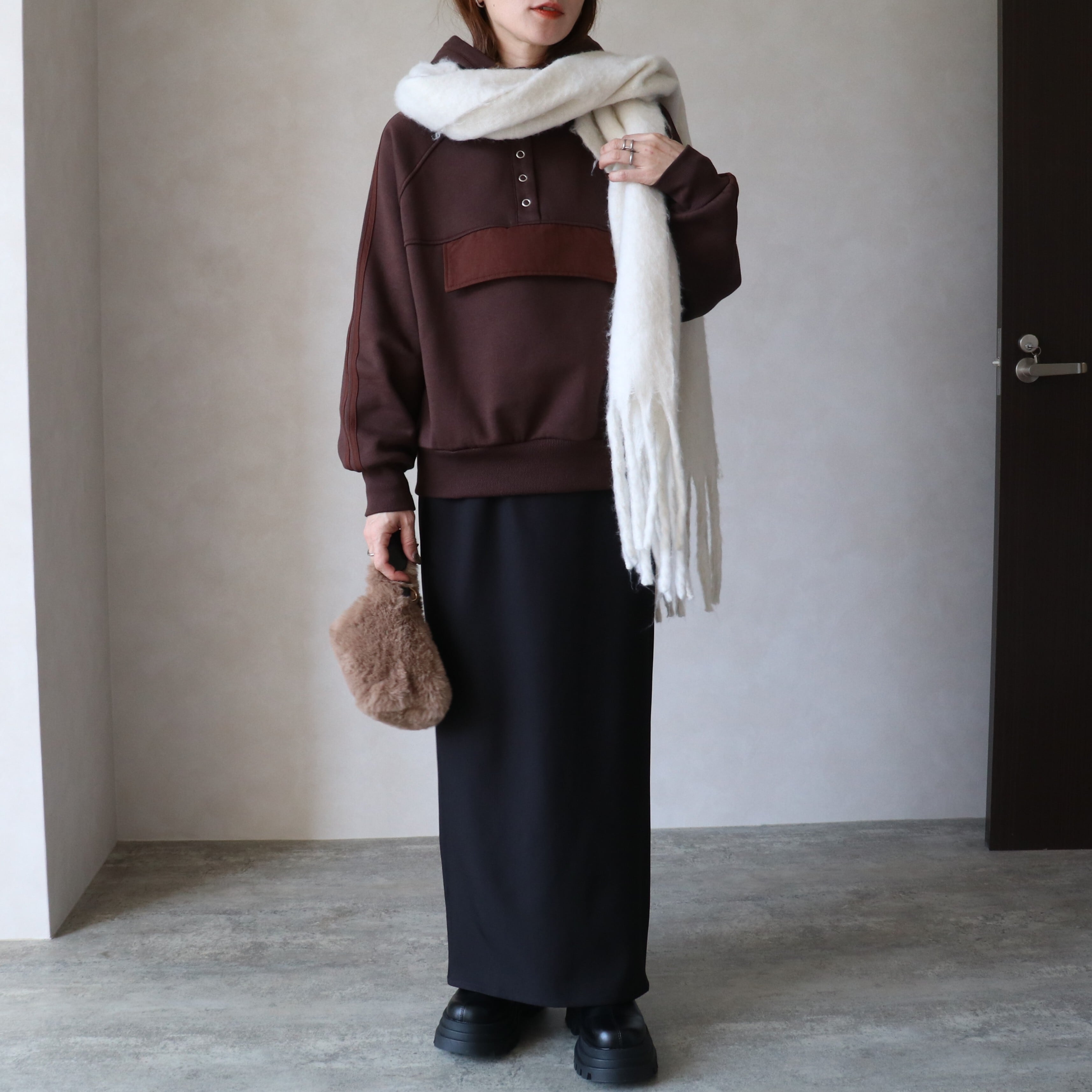 デイリーユースに重宝する裏起毛アノラックパーカー。