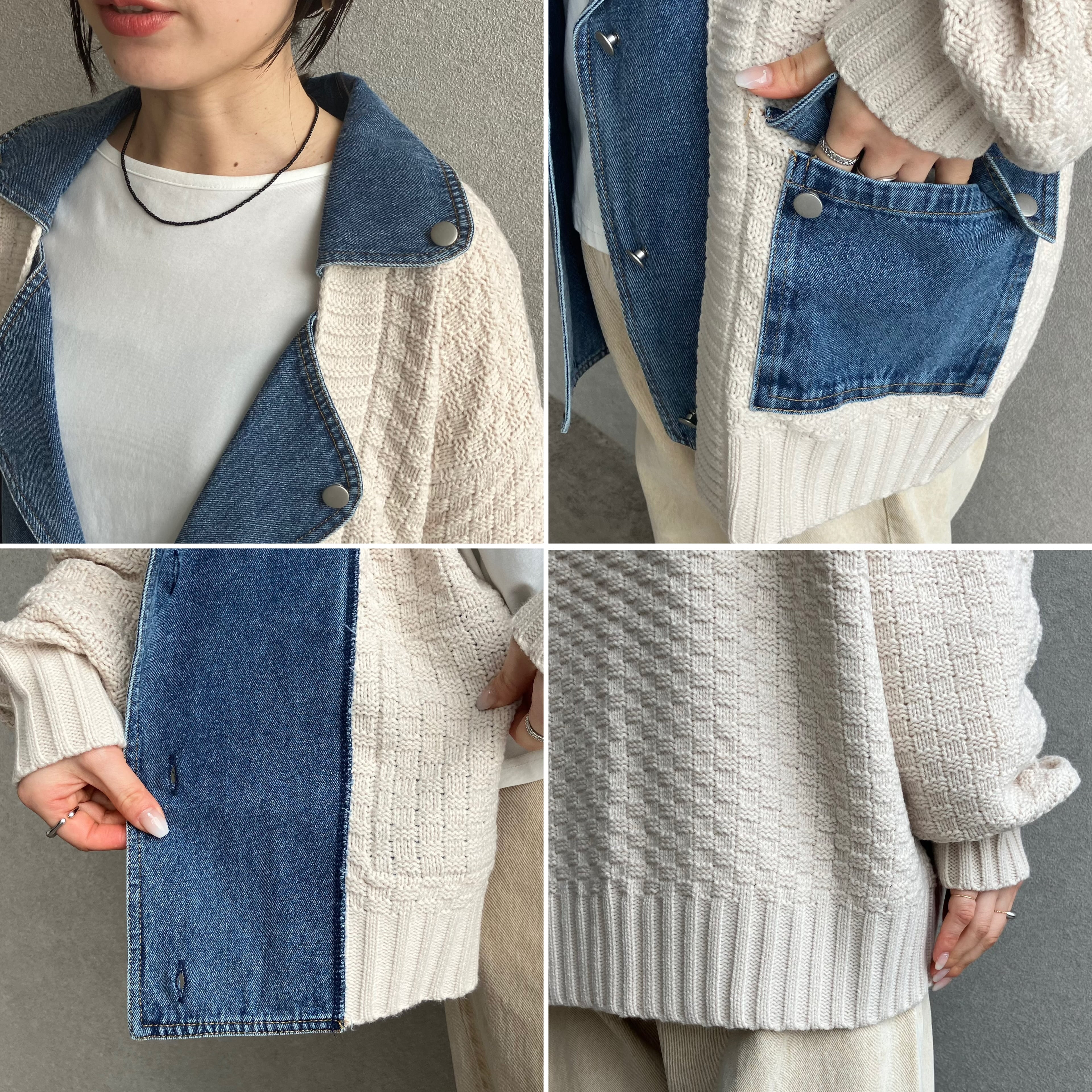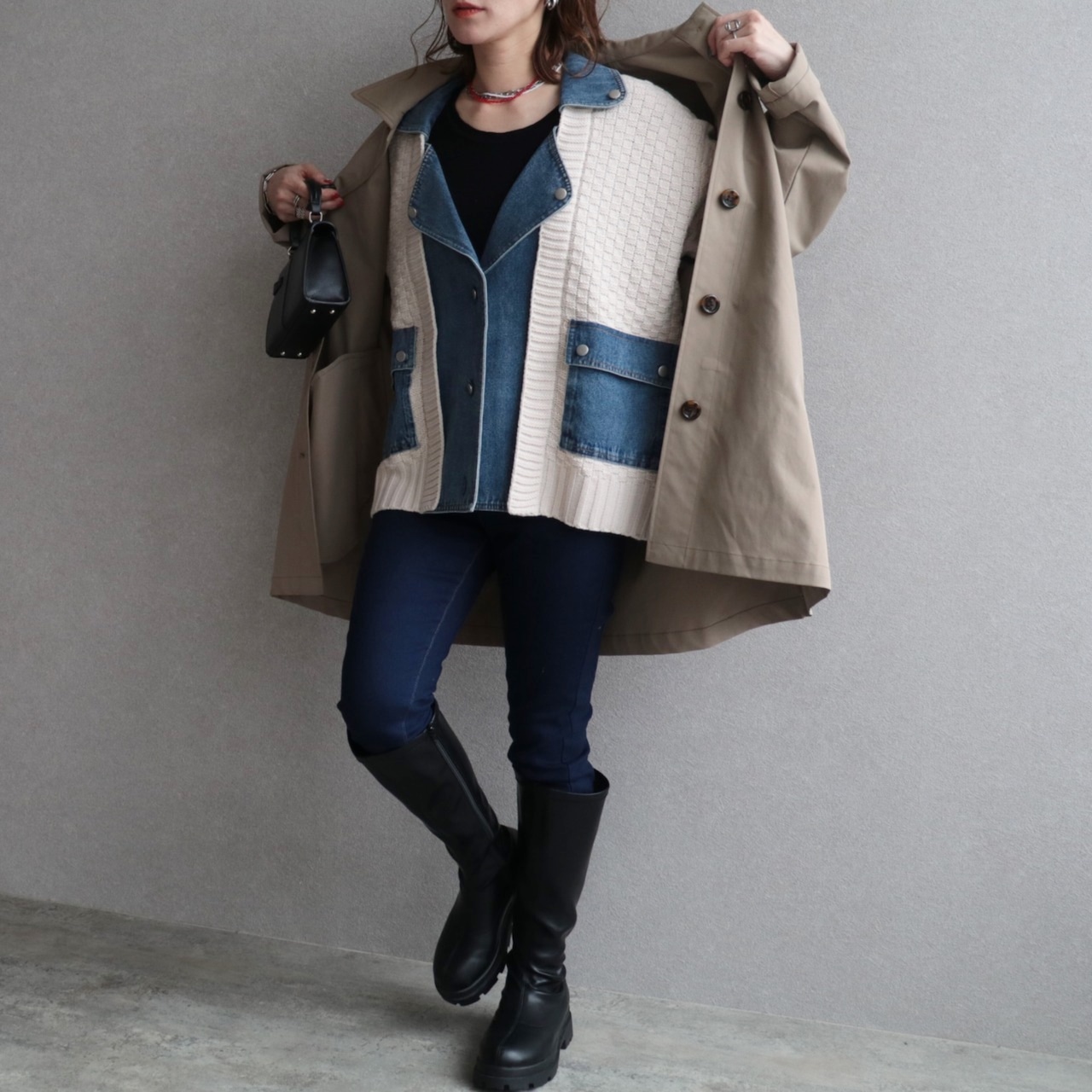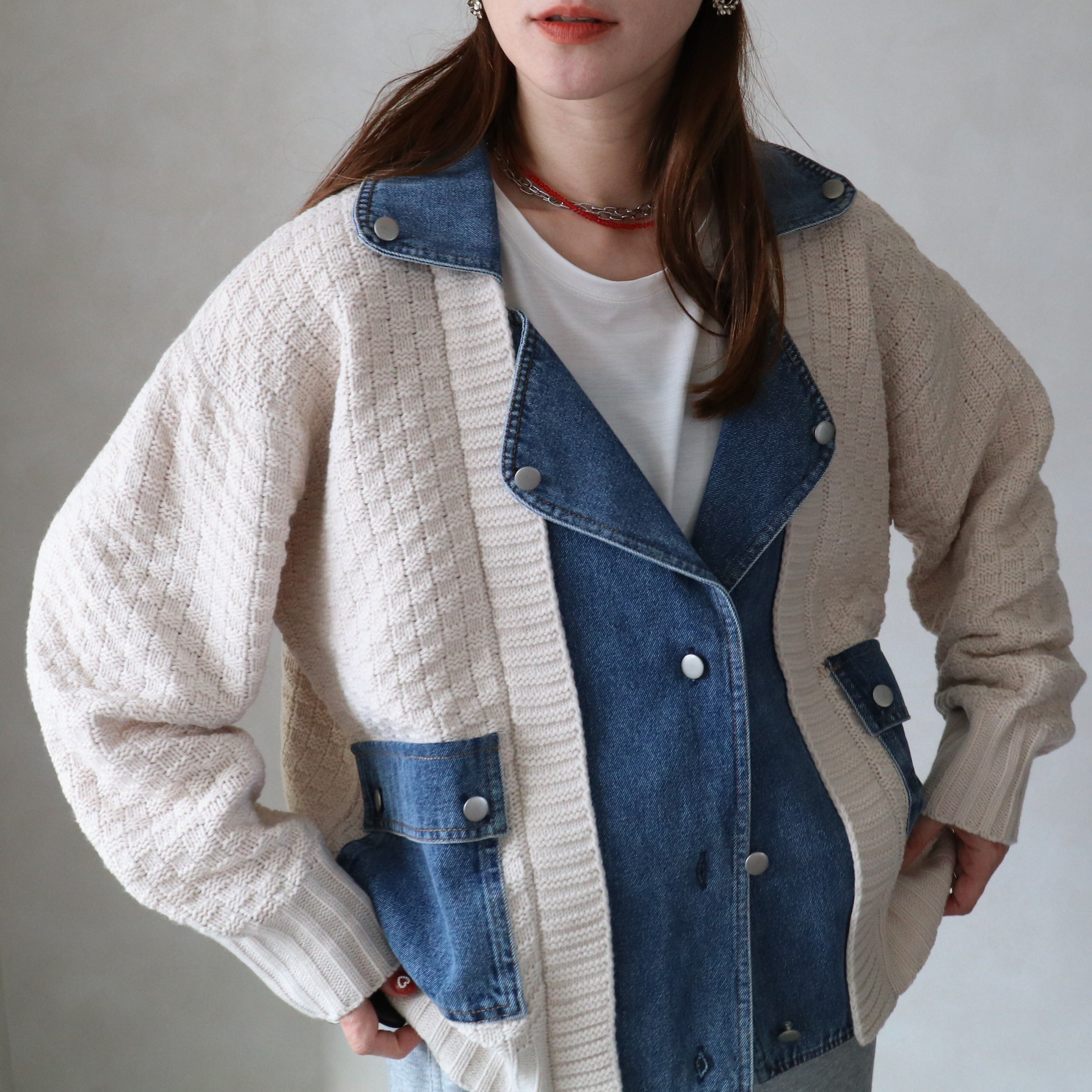 デニムシャツにニットカーデを重ね着したようなレイヤード風ジャケットが登場♡♡