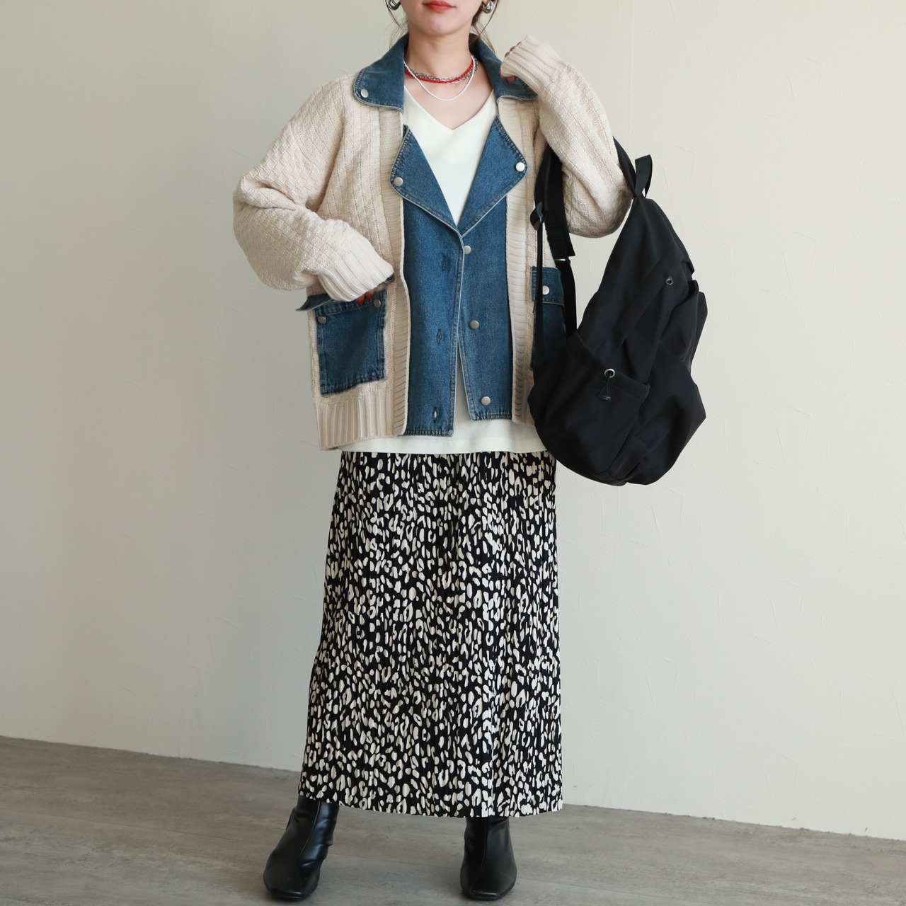 クールな印象のジャケットなので、あえてスカート合わせた甘辛な着こなしもおしゃれ見え!コーディネートのマンネリを打破してくれるアイテムです。