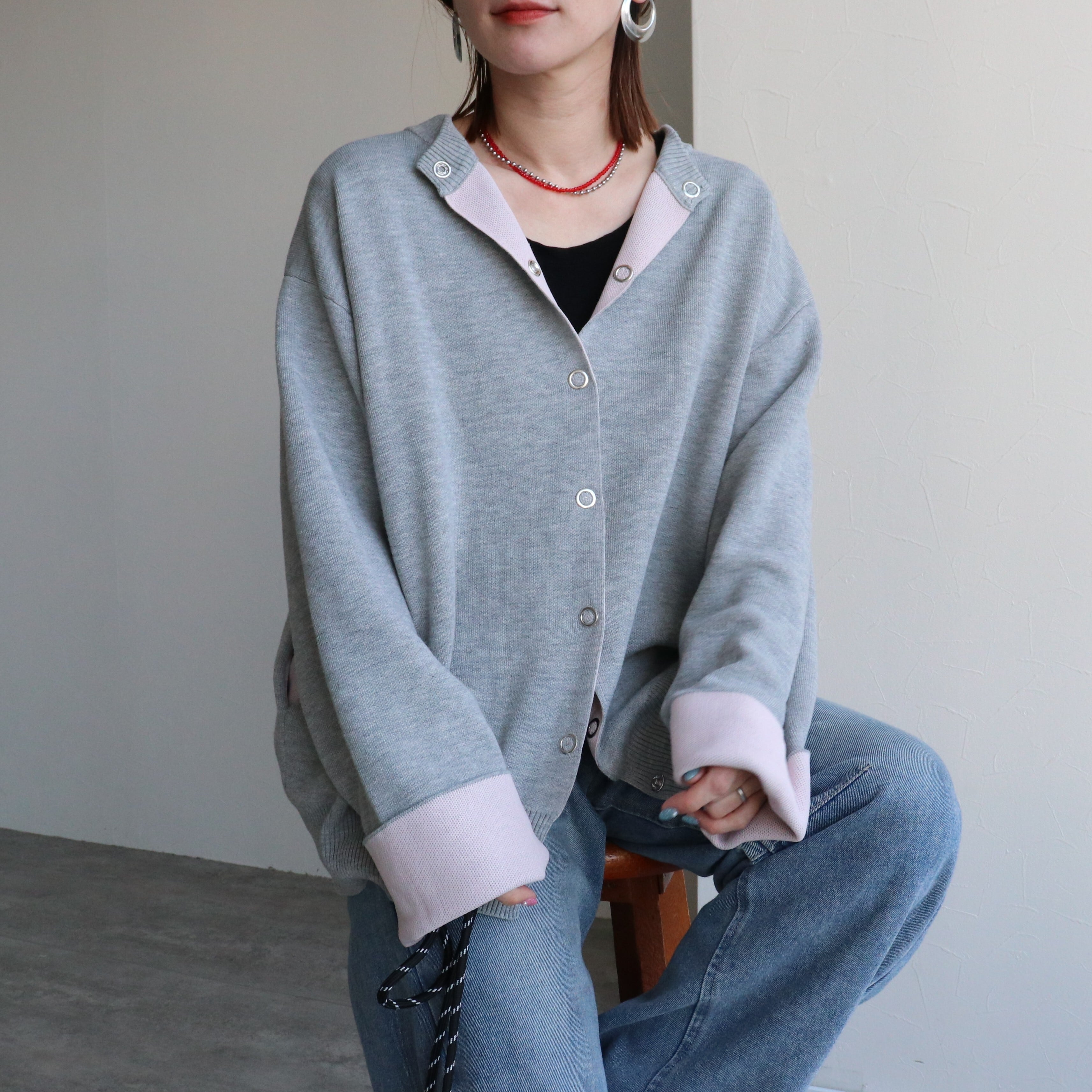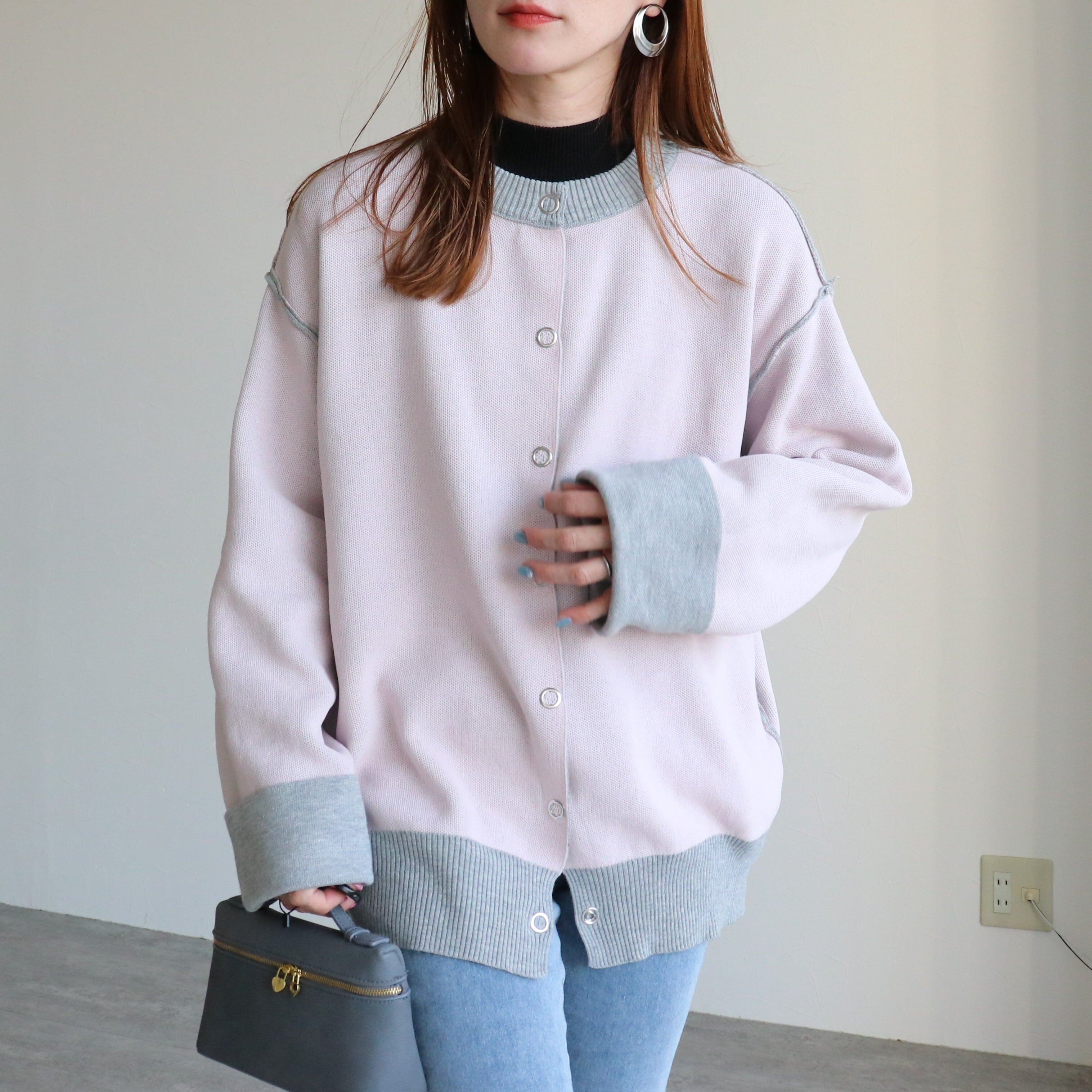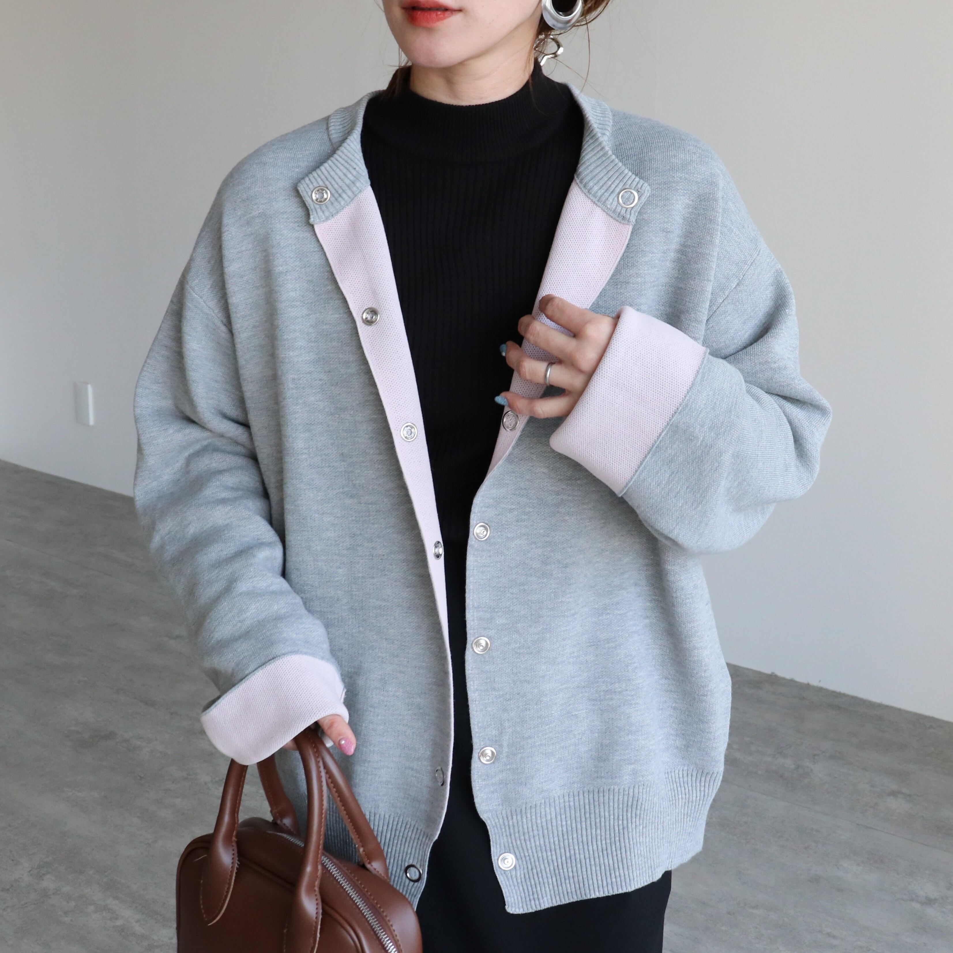 リバーシブル配色ニットスナップボタンカーデ【pa780488-z】宅配便送料無料/宅配便発送