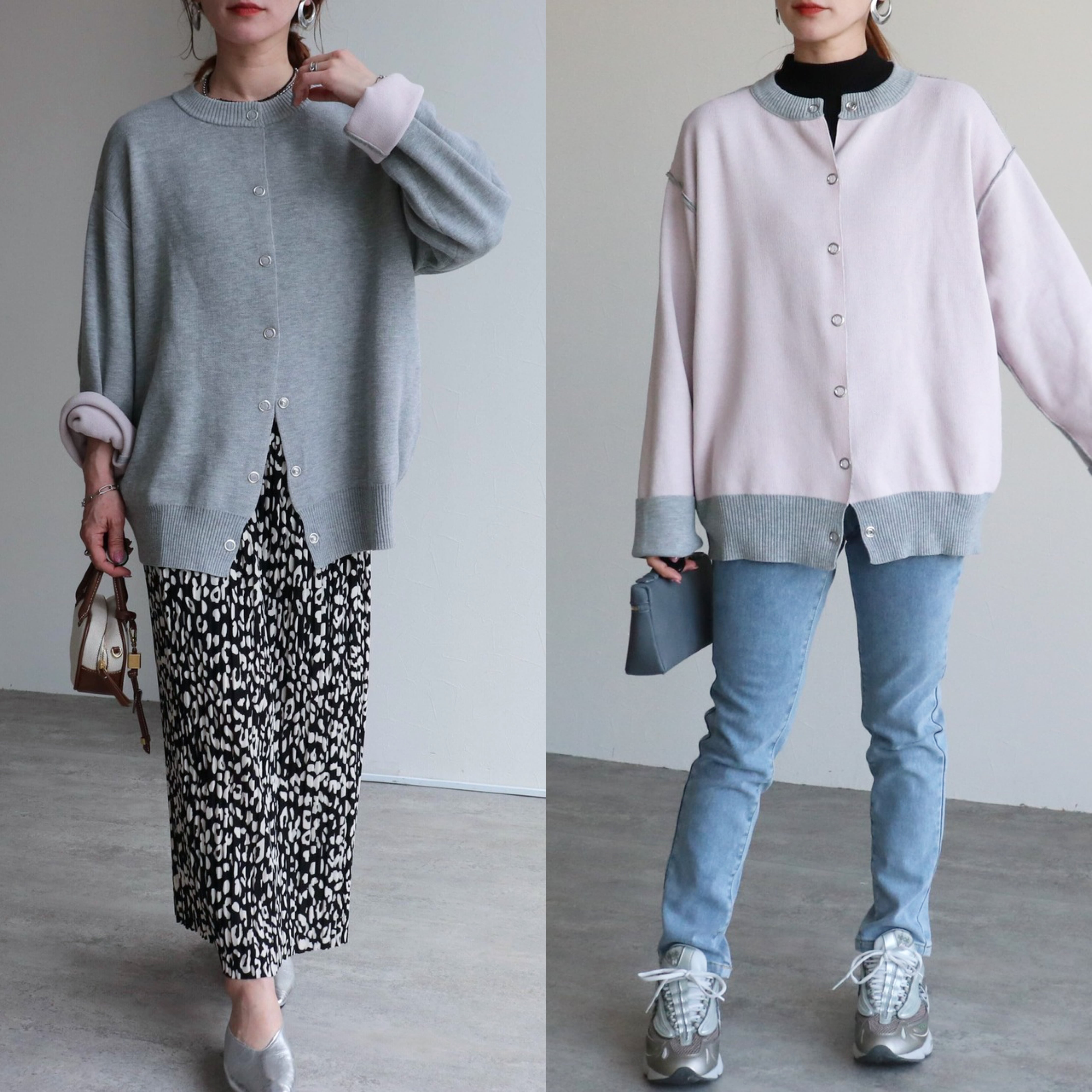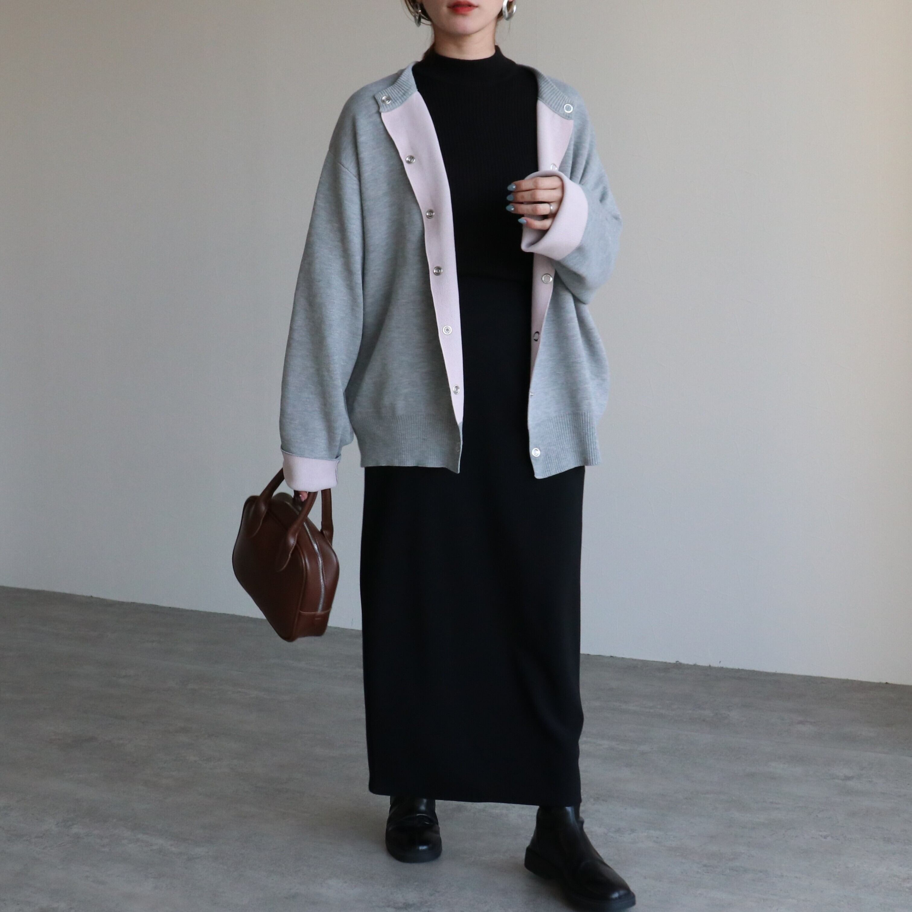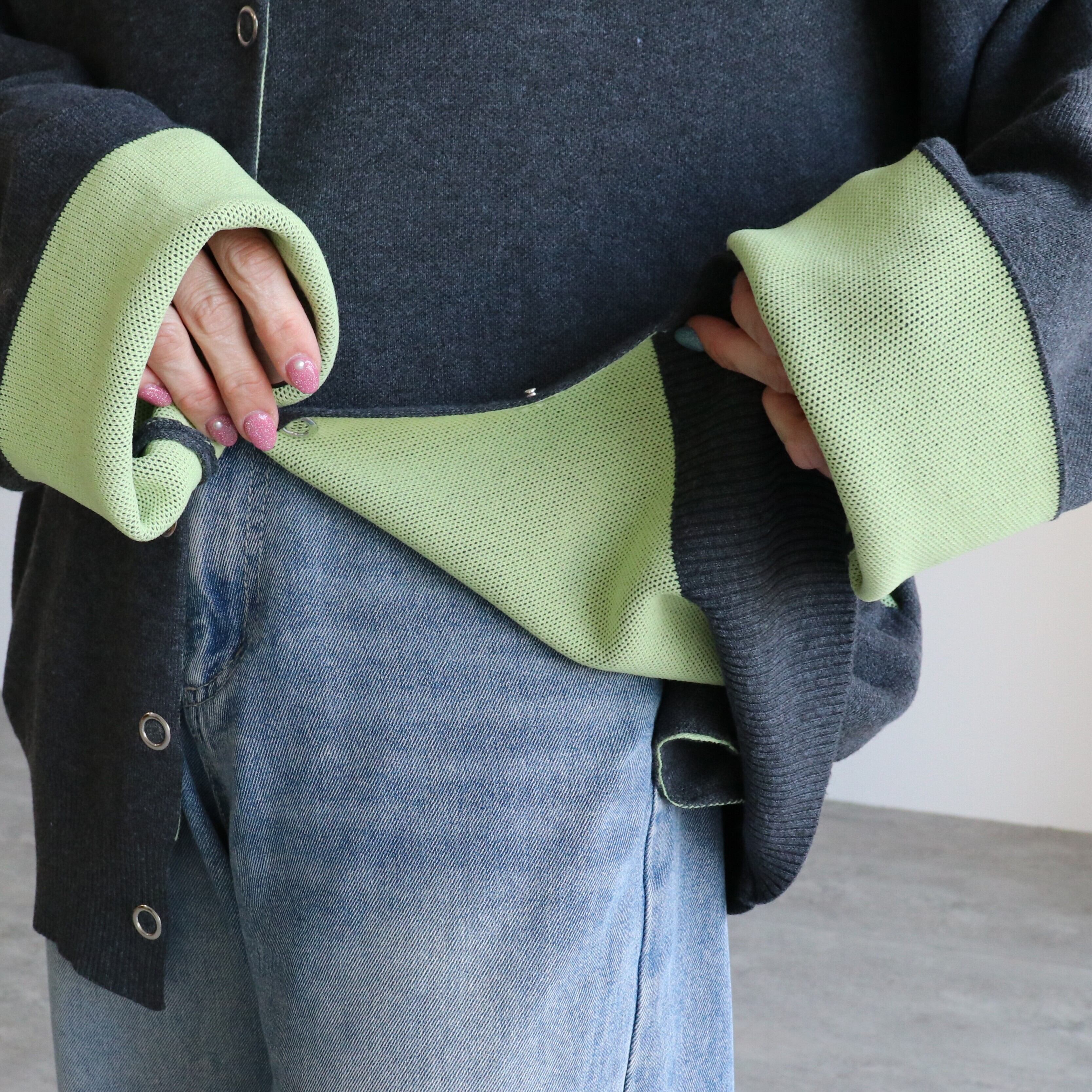 リバーシブル配色ニットスナップボタンカーデ【pa780488-z】宅配便送料無料/宅配便発送