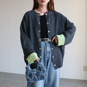 【薄くて軽くてリバーシブル♡ノーカラーニットカーデ】