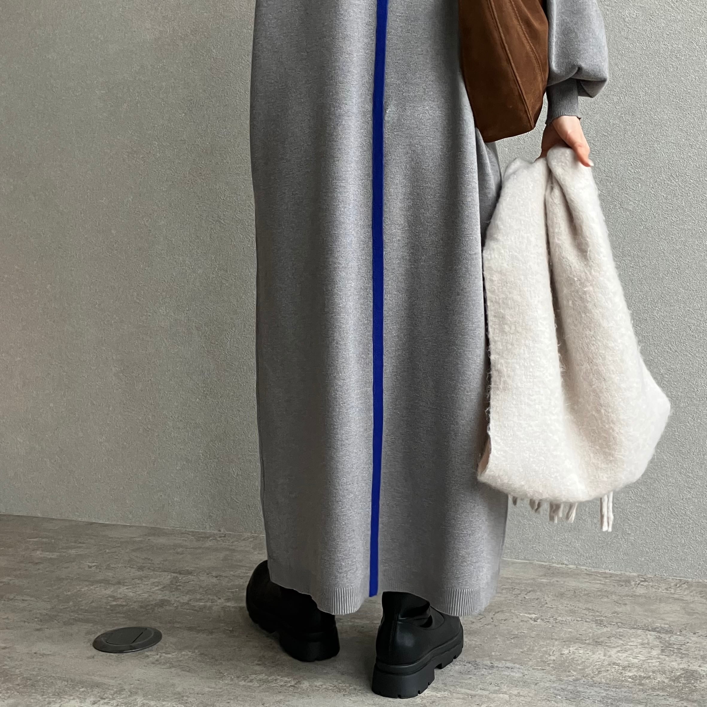 ゆるっとシルエットのミラノリブ配色ロングワンピース。
