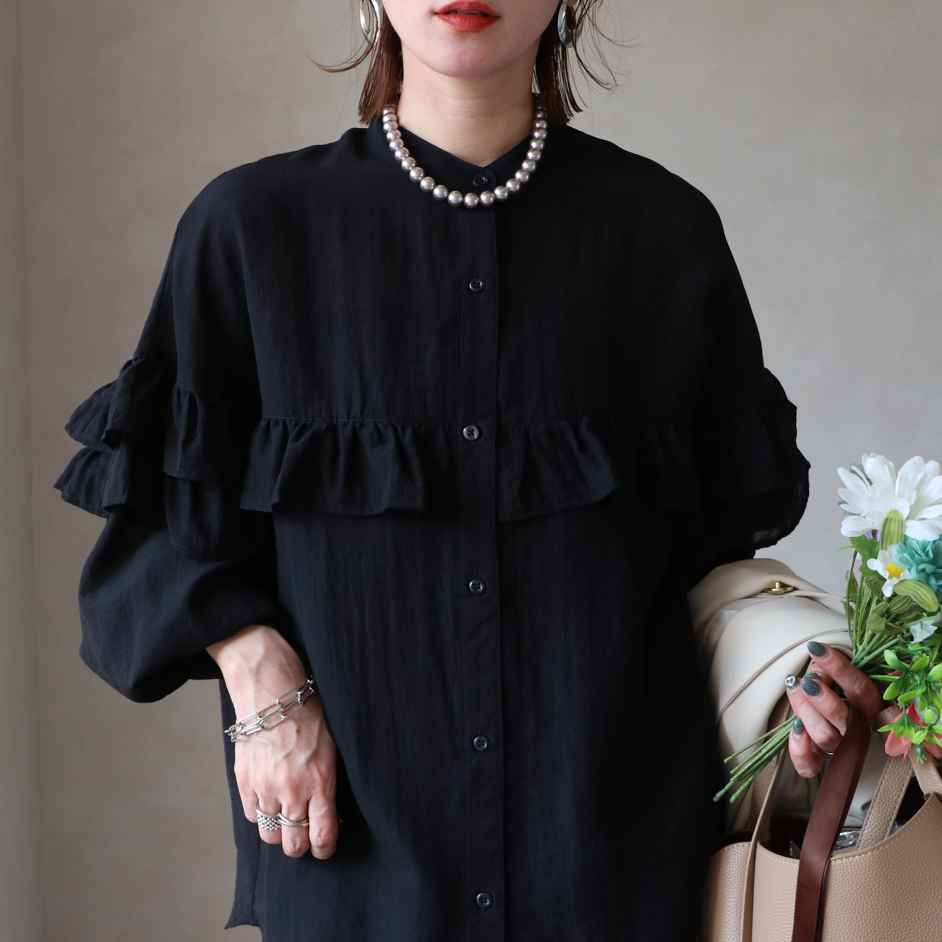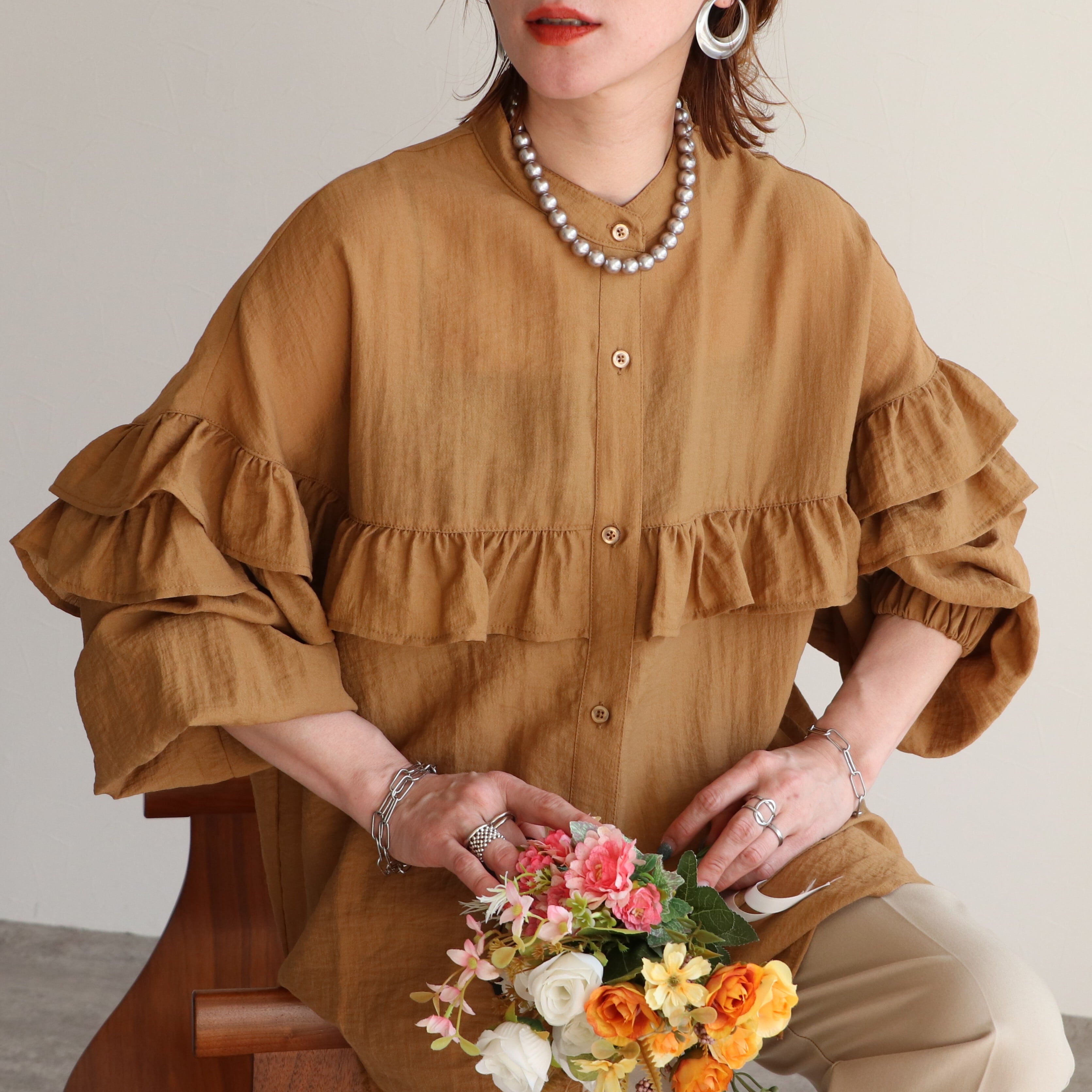 1枚で着映える上品なフリルブラウス。