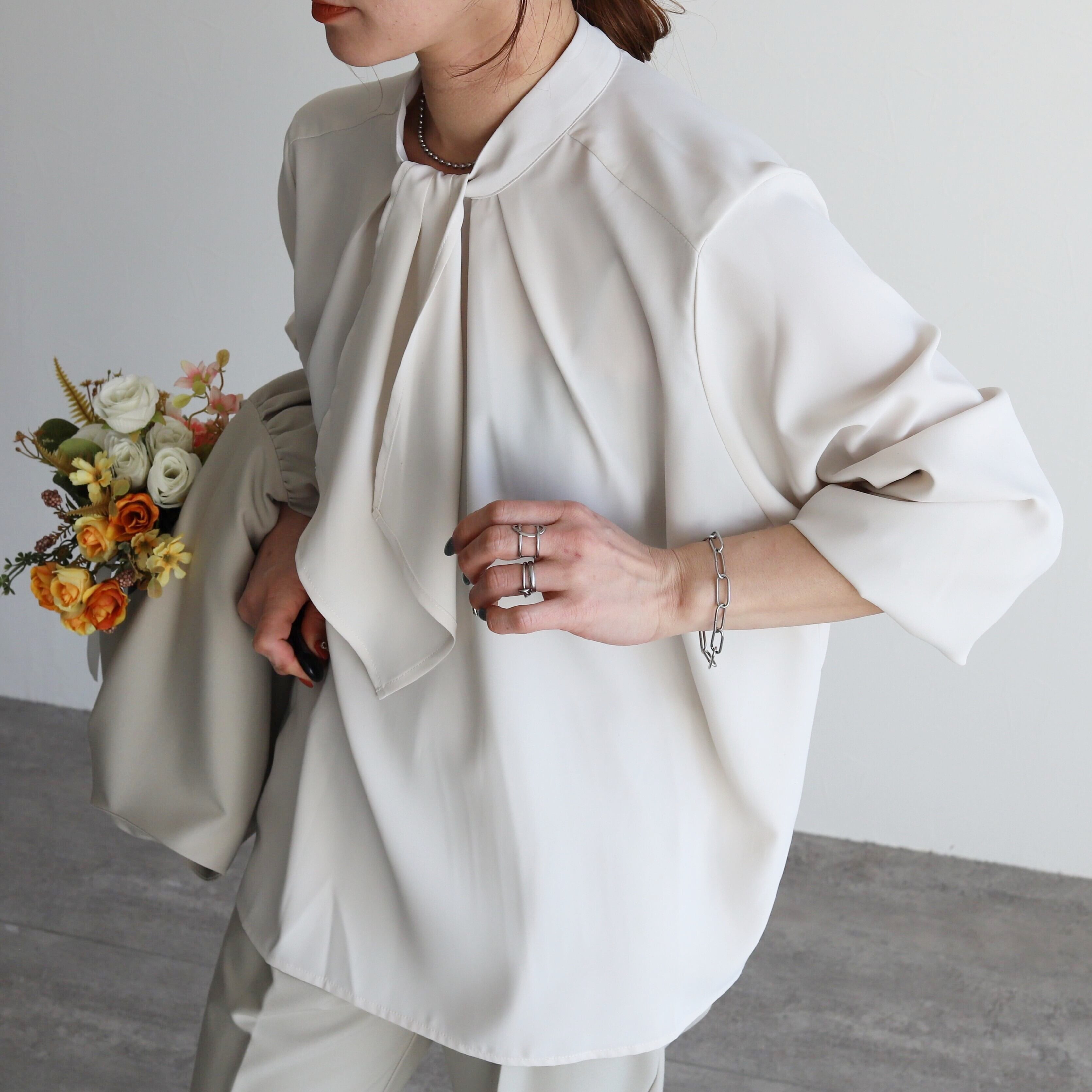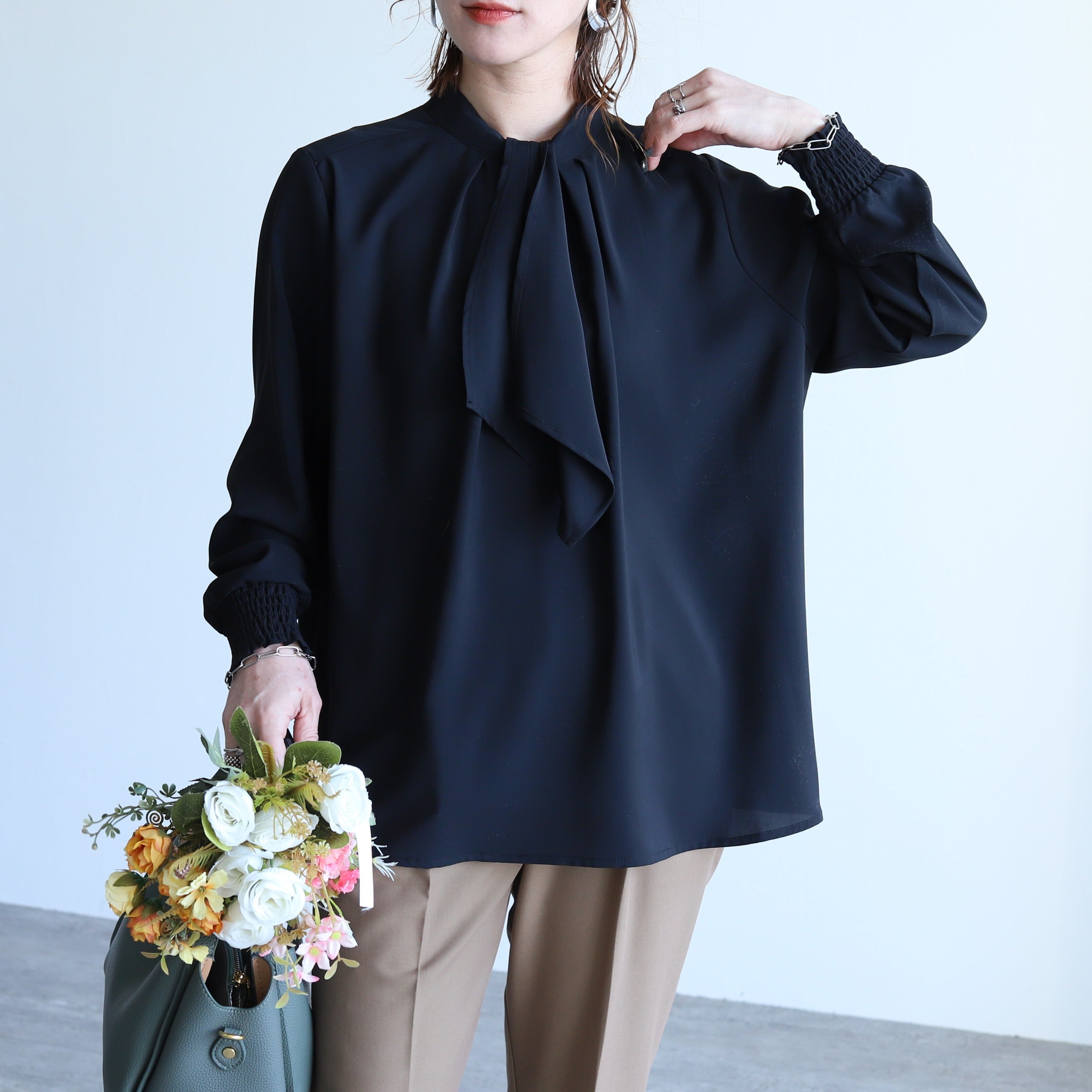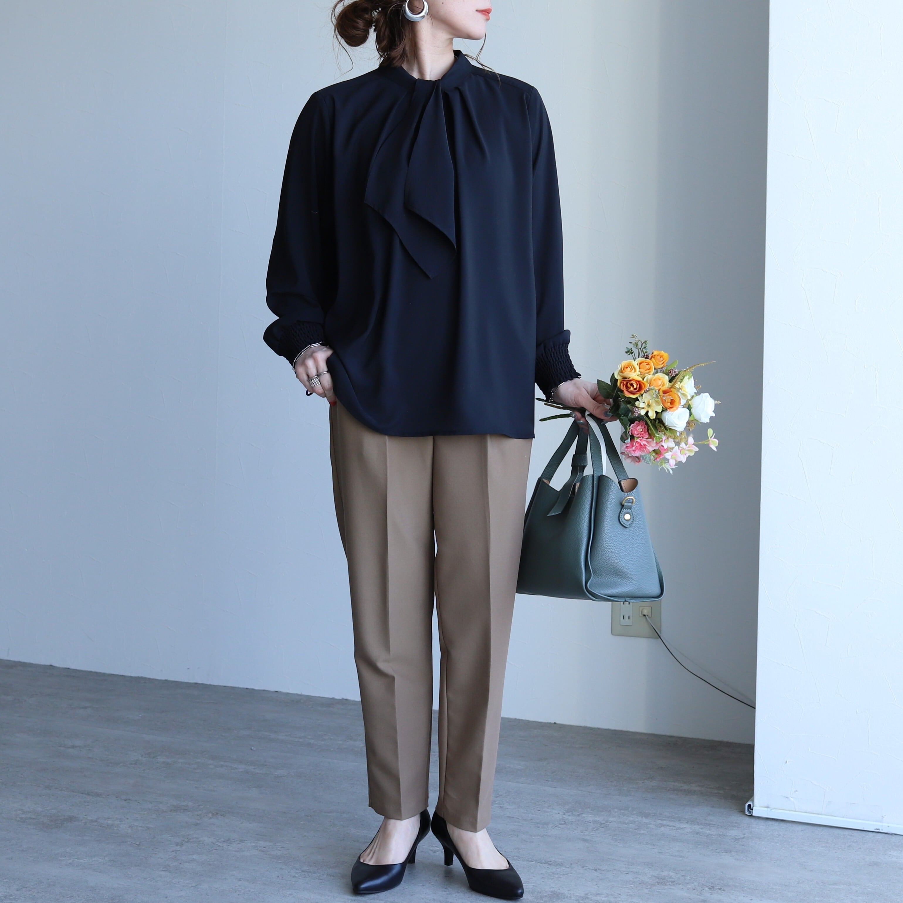 【2WAYで使える!上品さを演出できるボウタイブラウス】