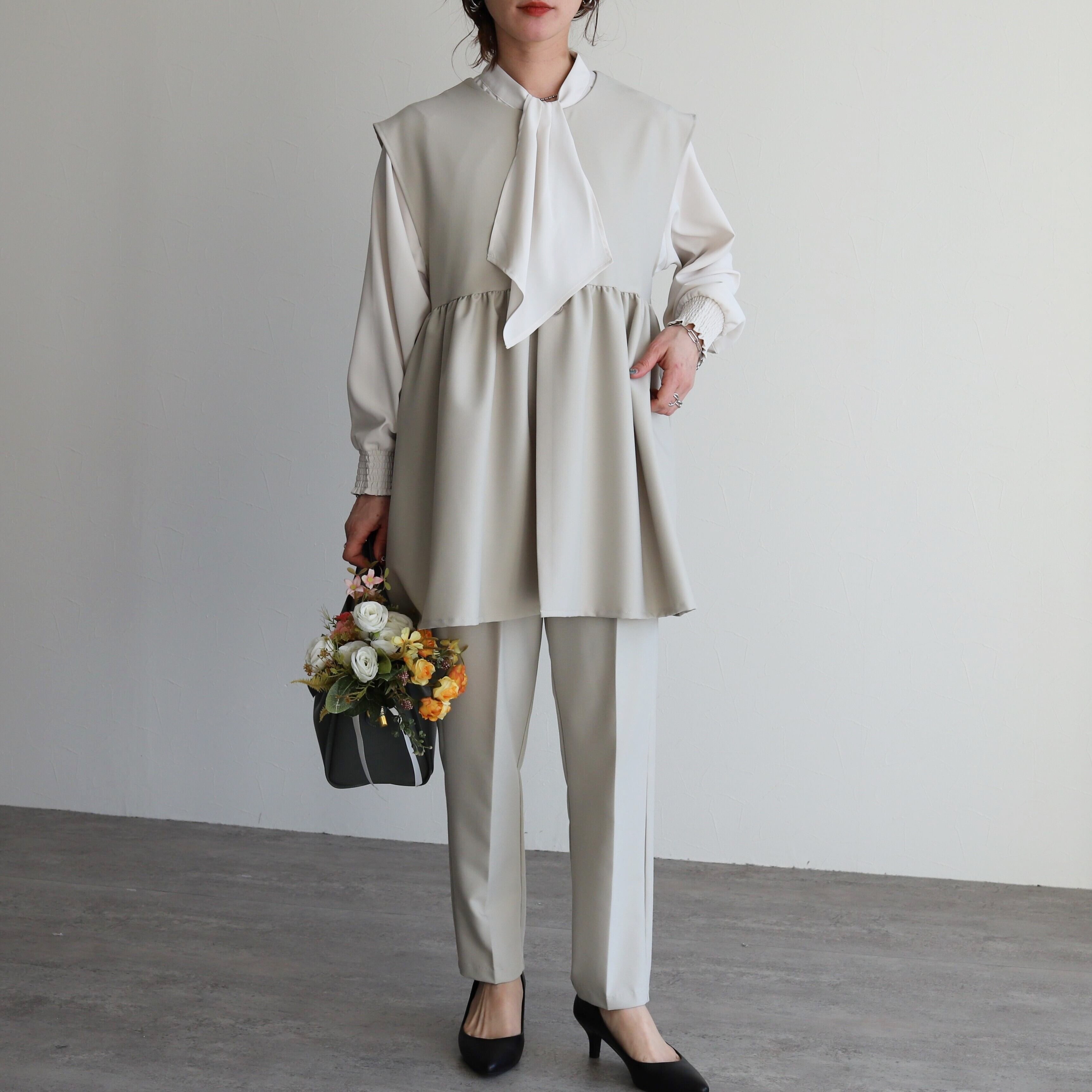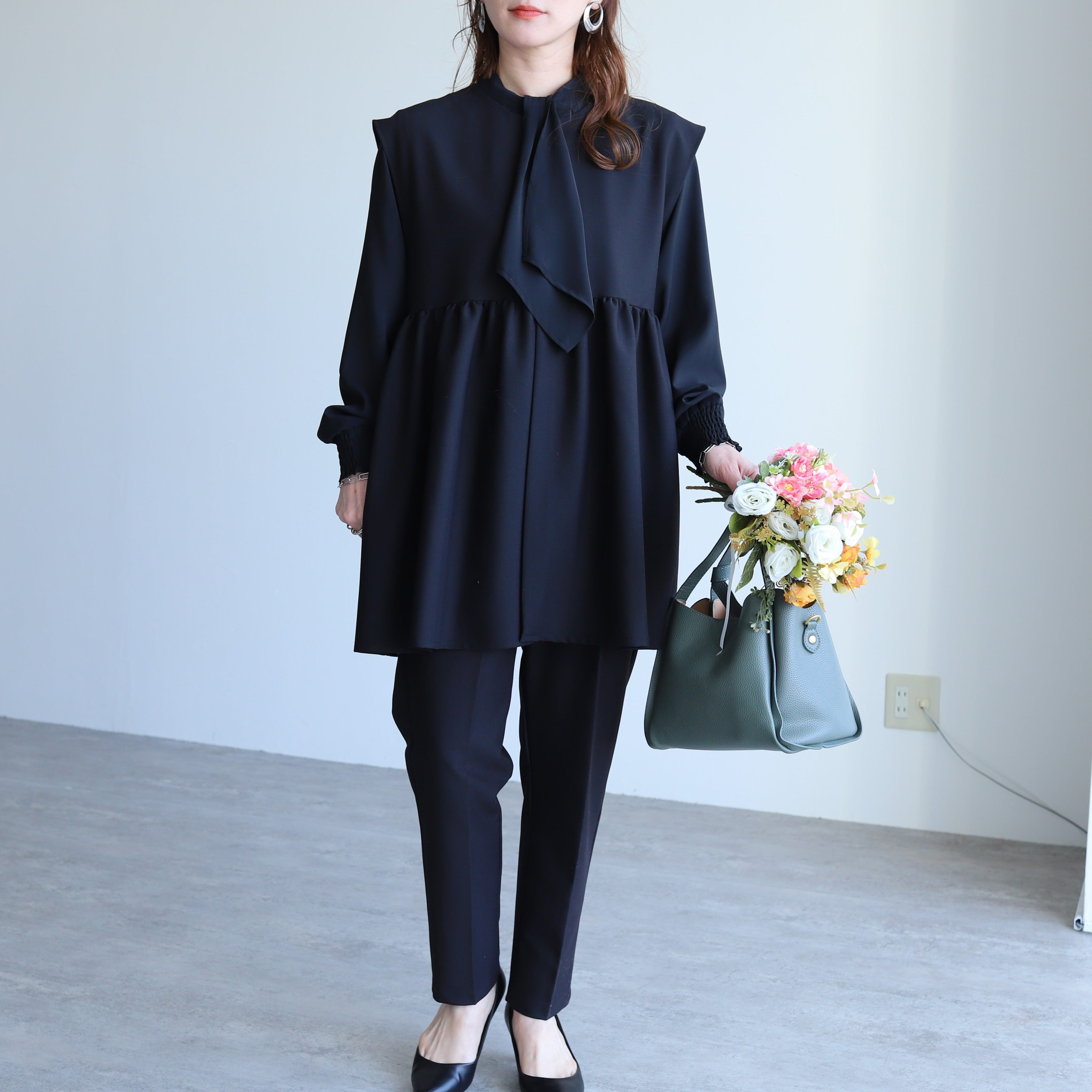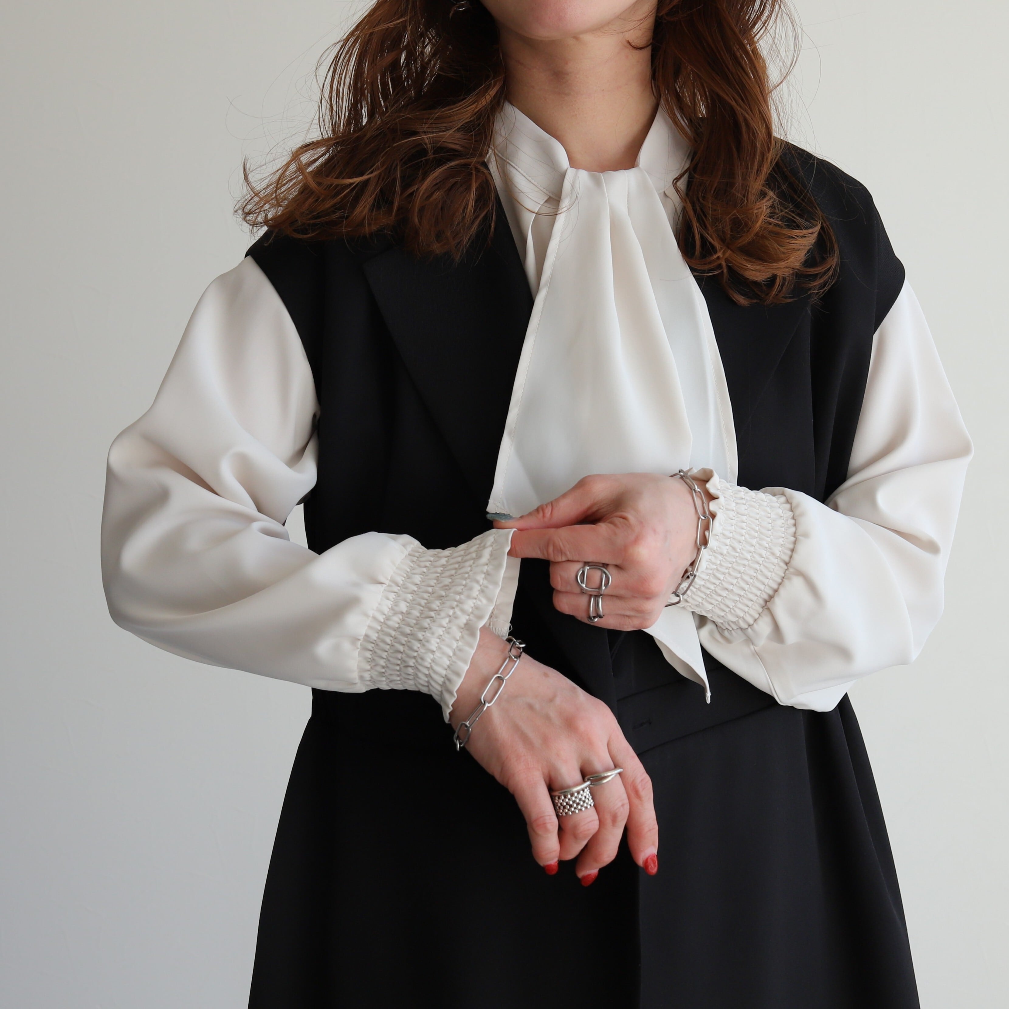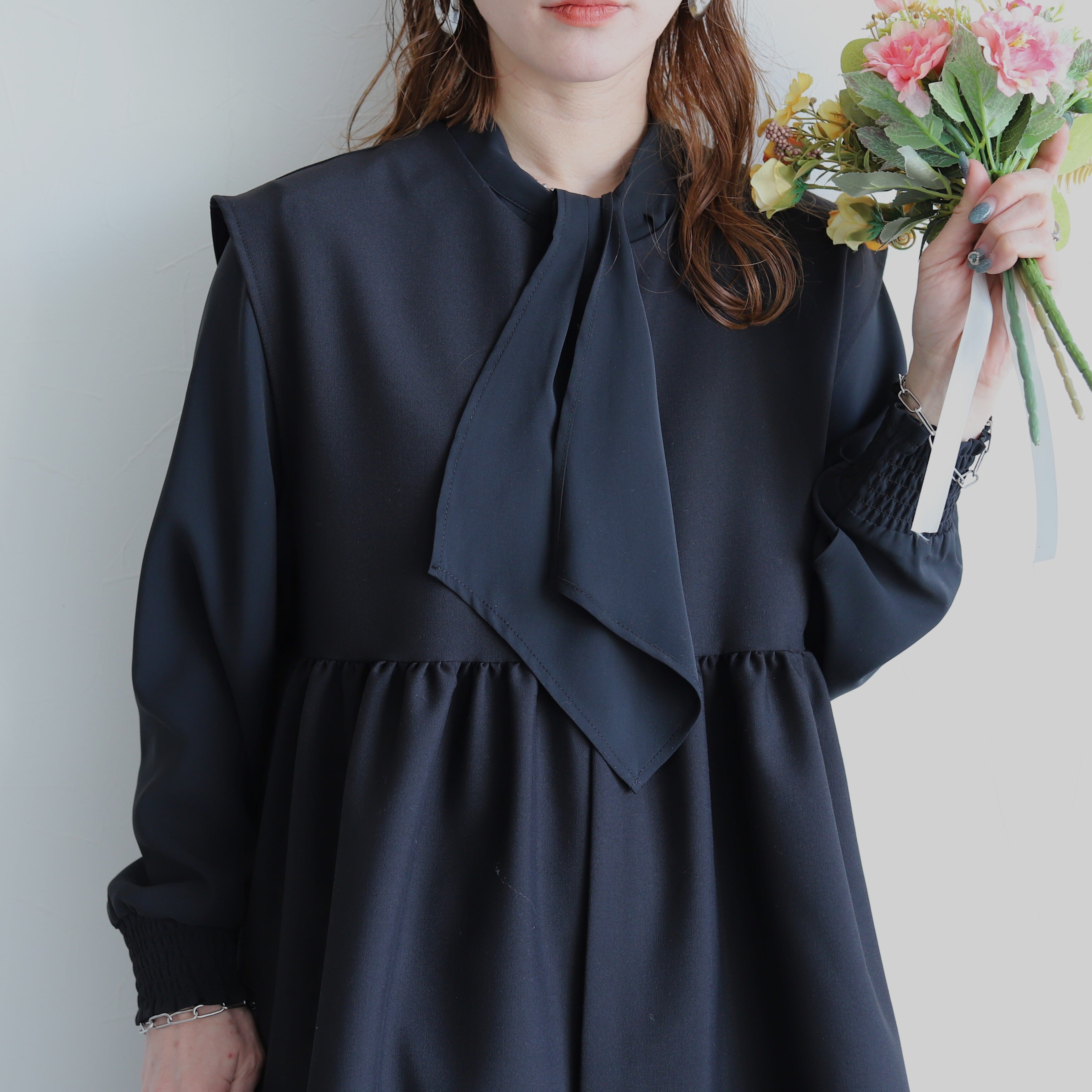 【2WAYで使える!上品さを演出できるボウタイブラウス】