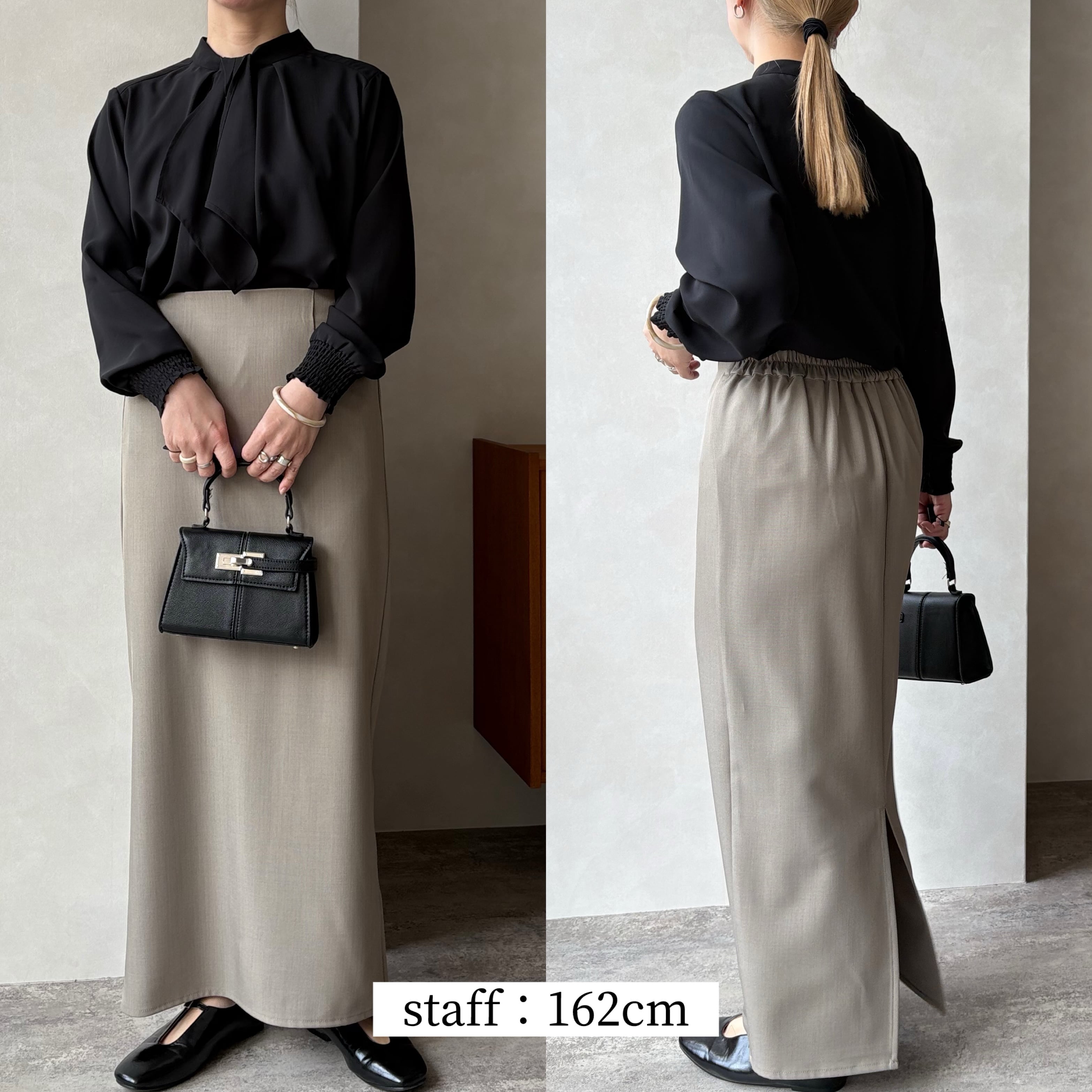 ブラウスがさらりとしている分、ボトムは厚みのあるアイテムを合わせて素材感にメリハリを付けるのがおすすめ♡