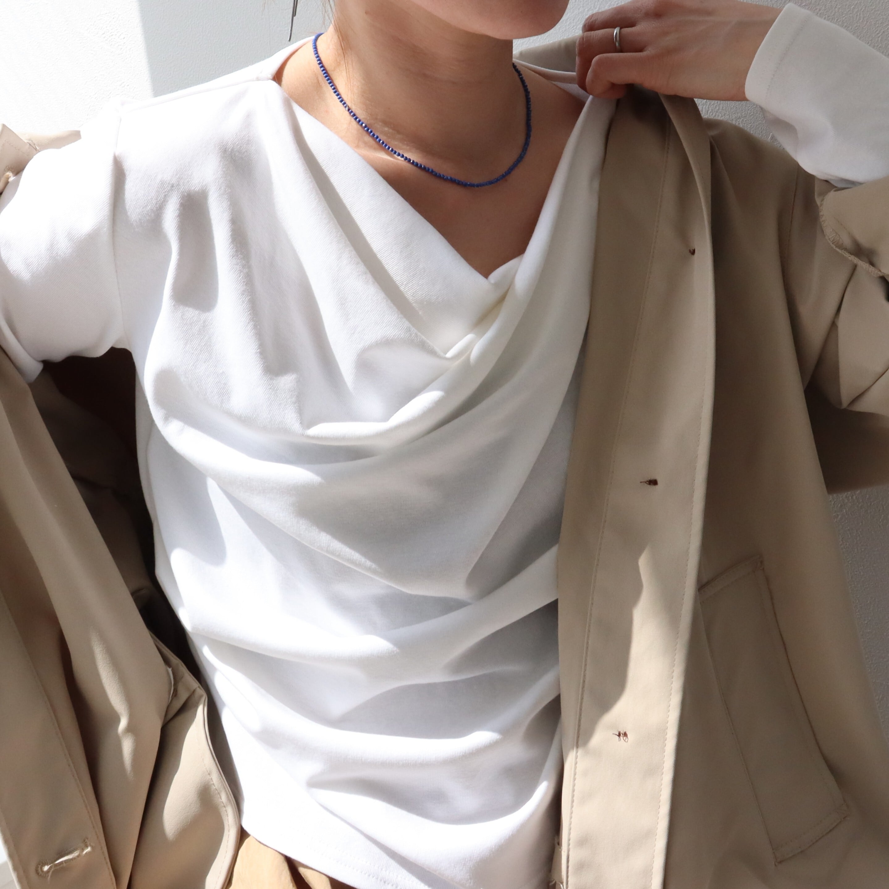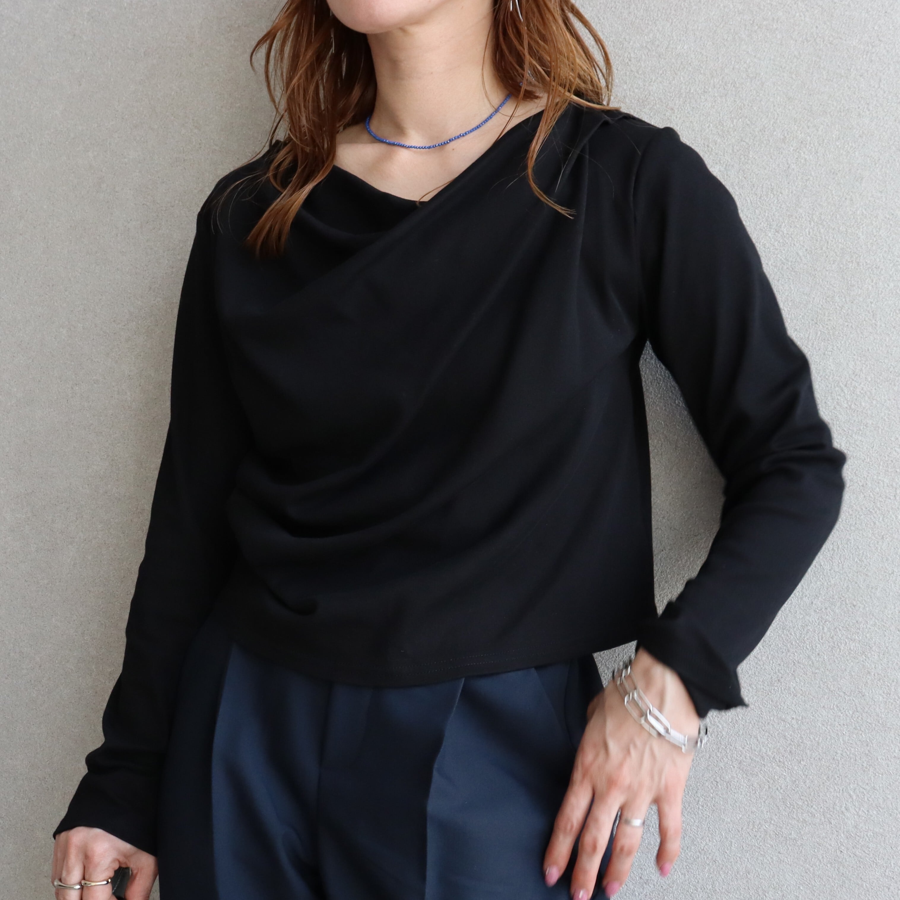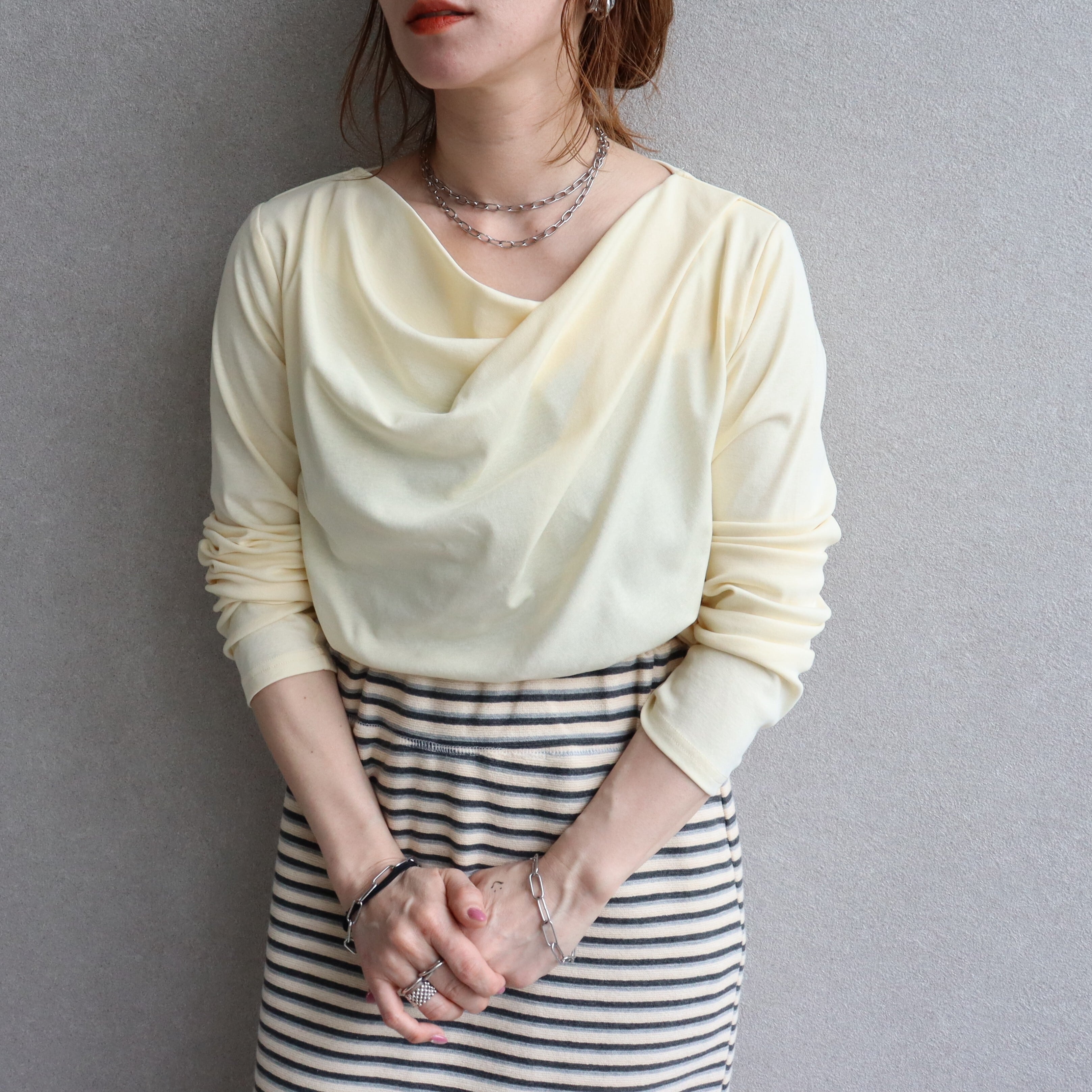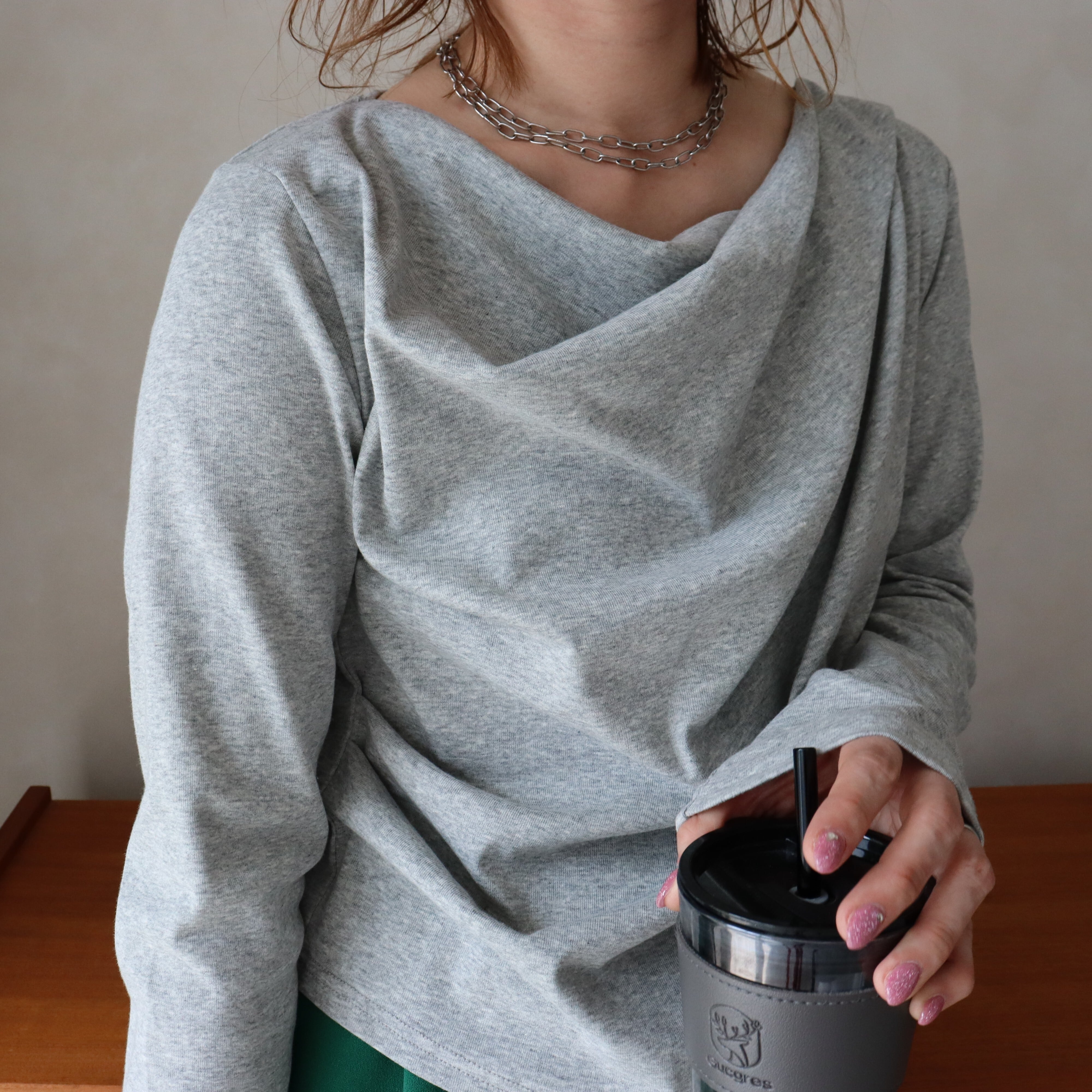 デコルテを美しく見せるドレープデザインで、抜け感のある着こなしが楽しめます(^^)