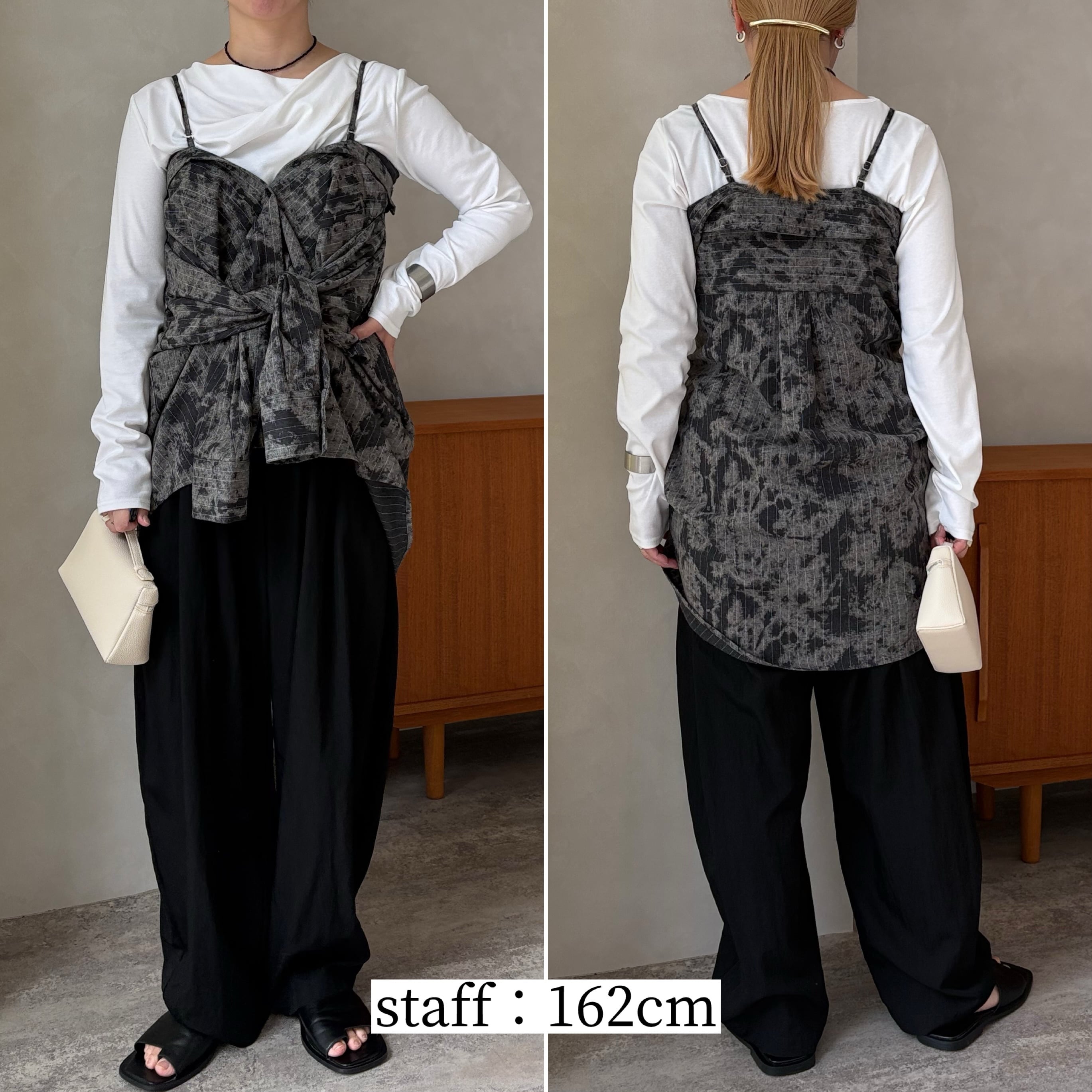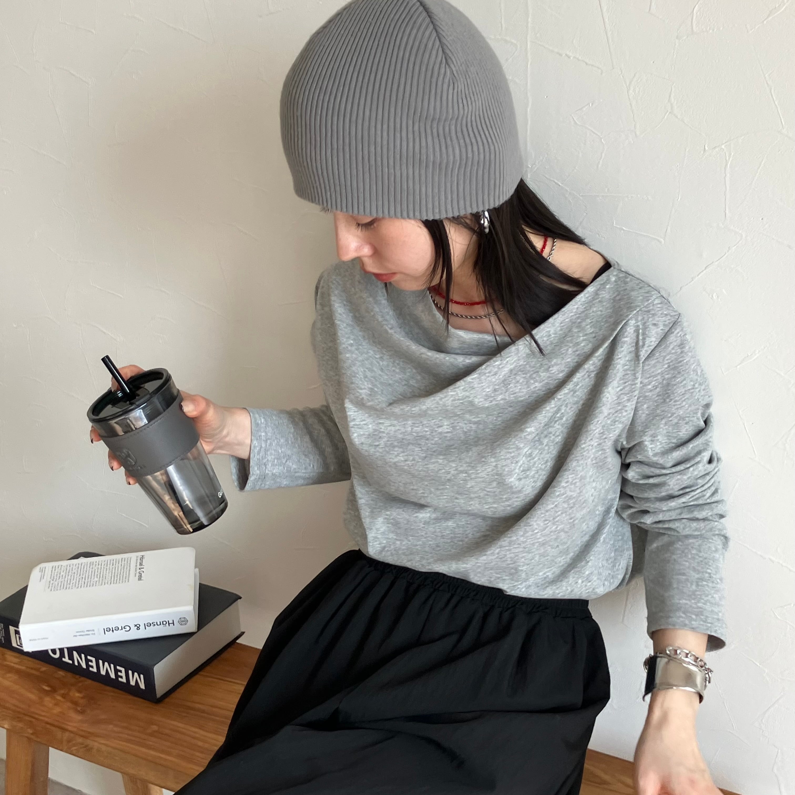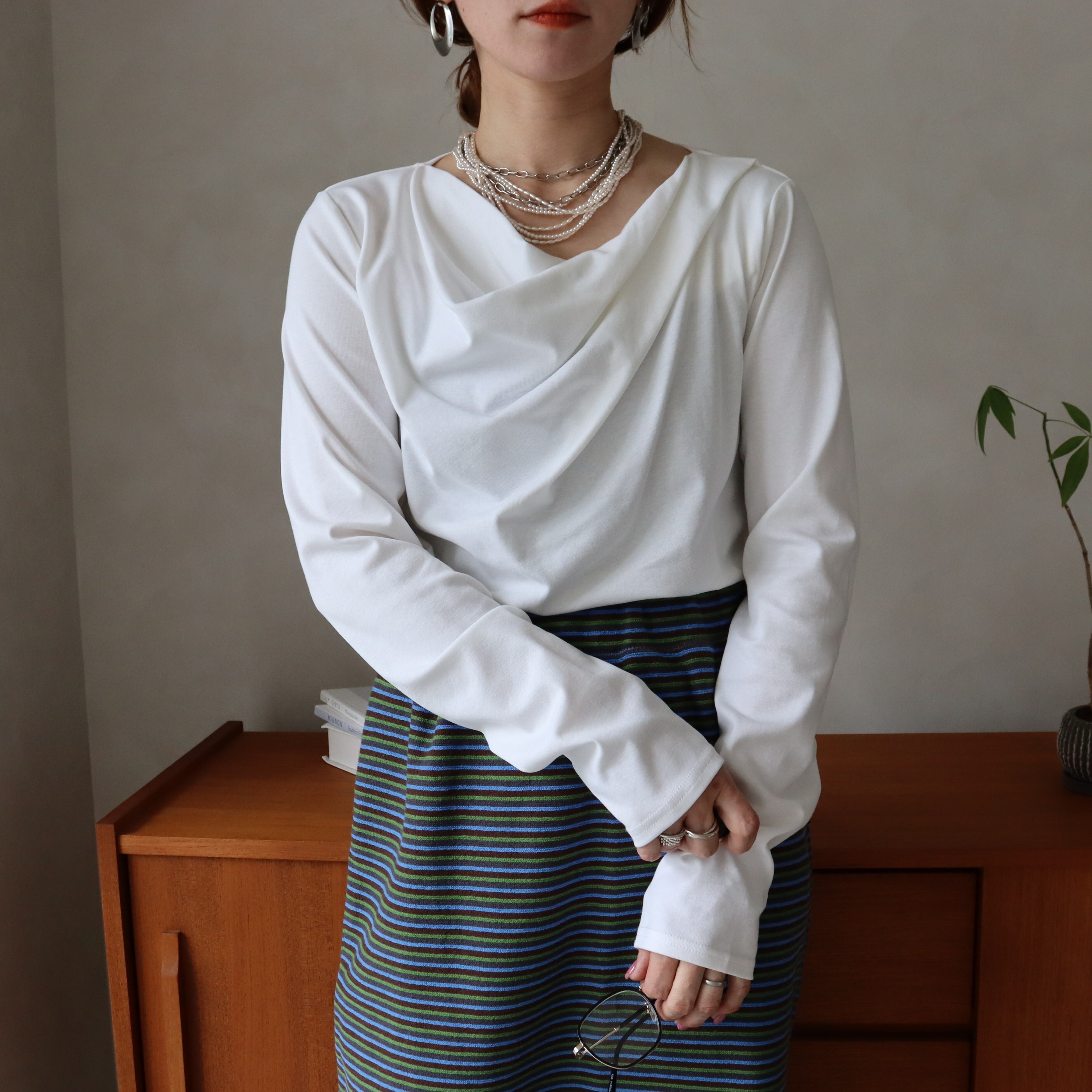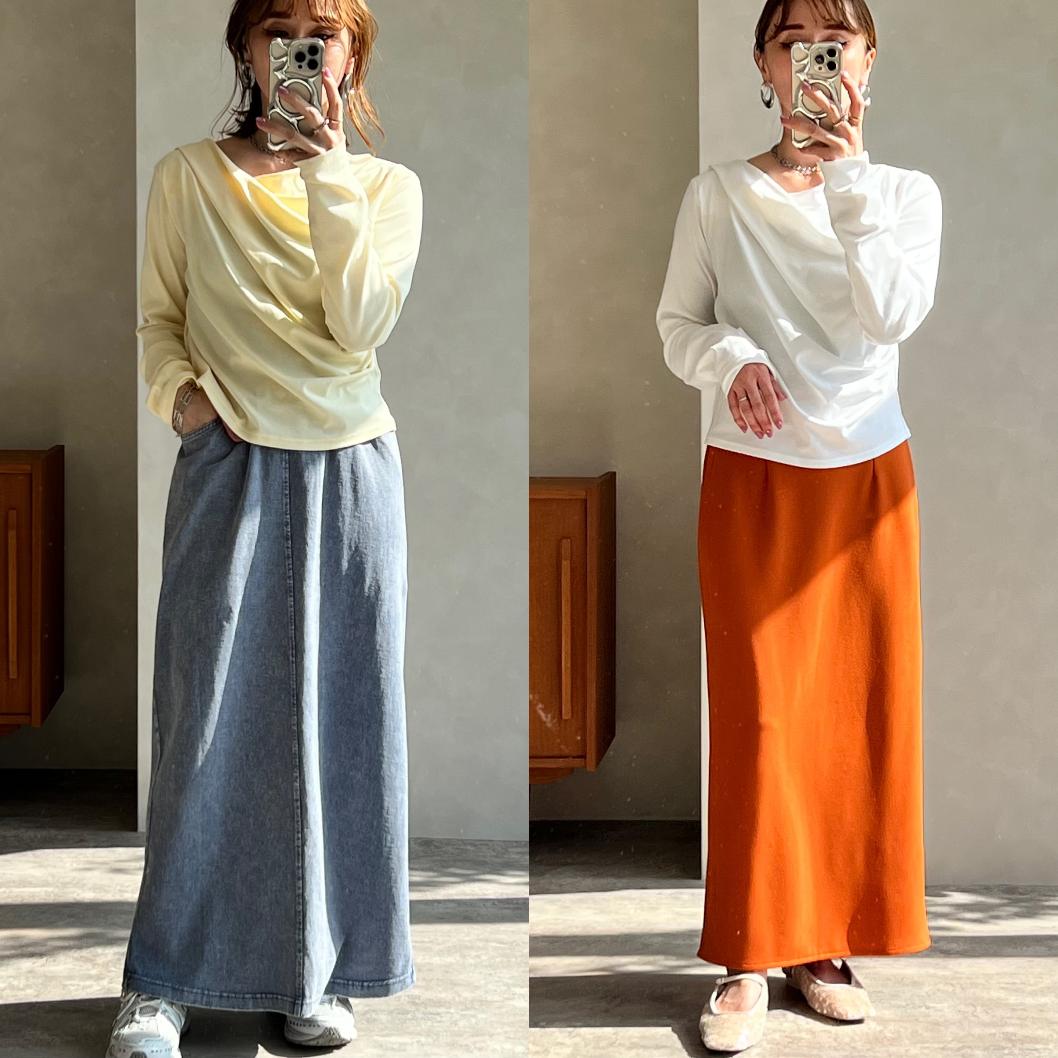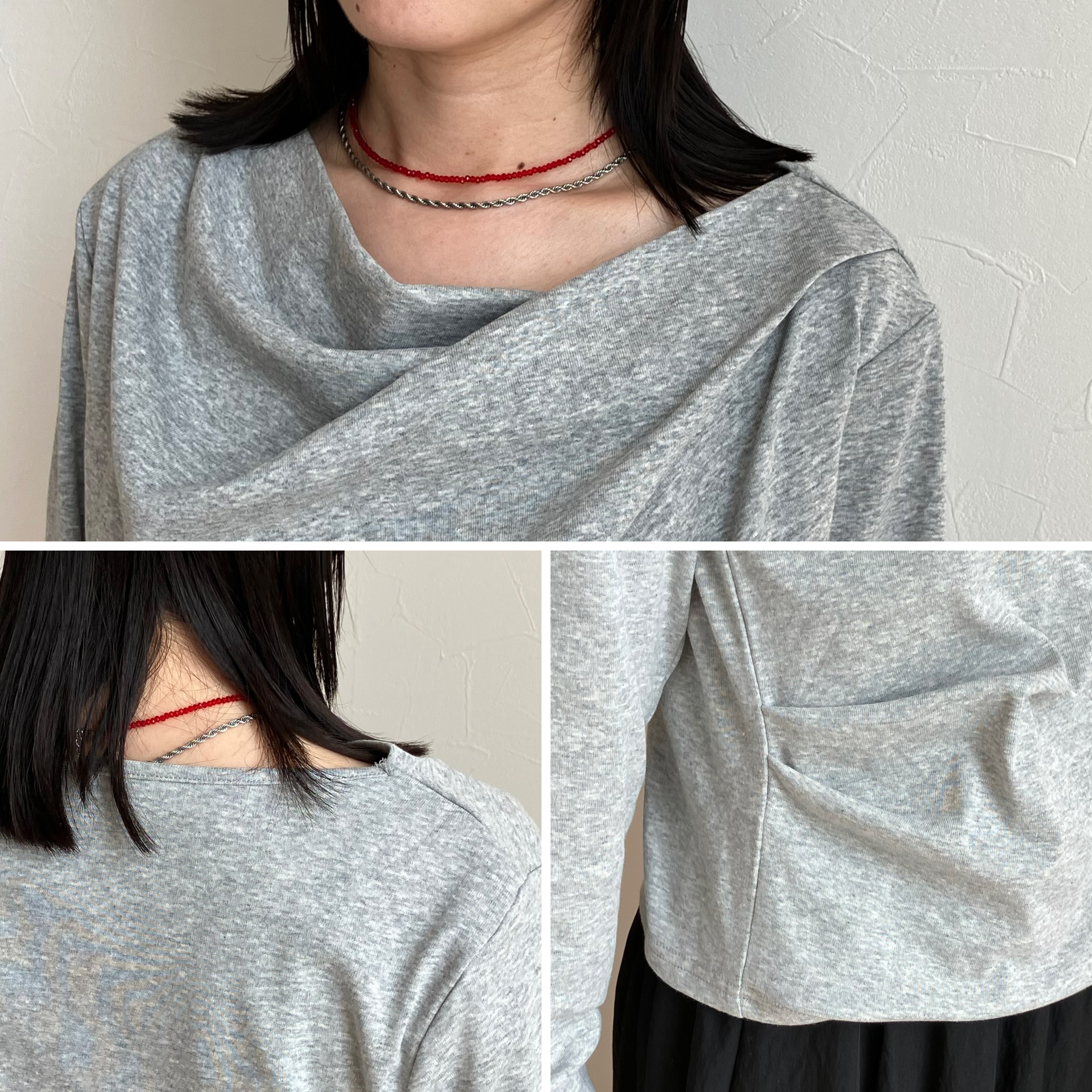 デコルテを美しく見せるドレープデザインで、抜け感のある着こなしが楽しめます(^^)