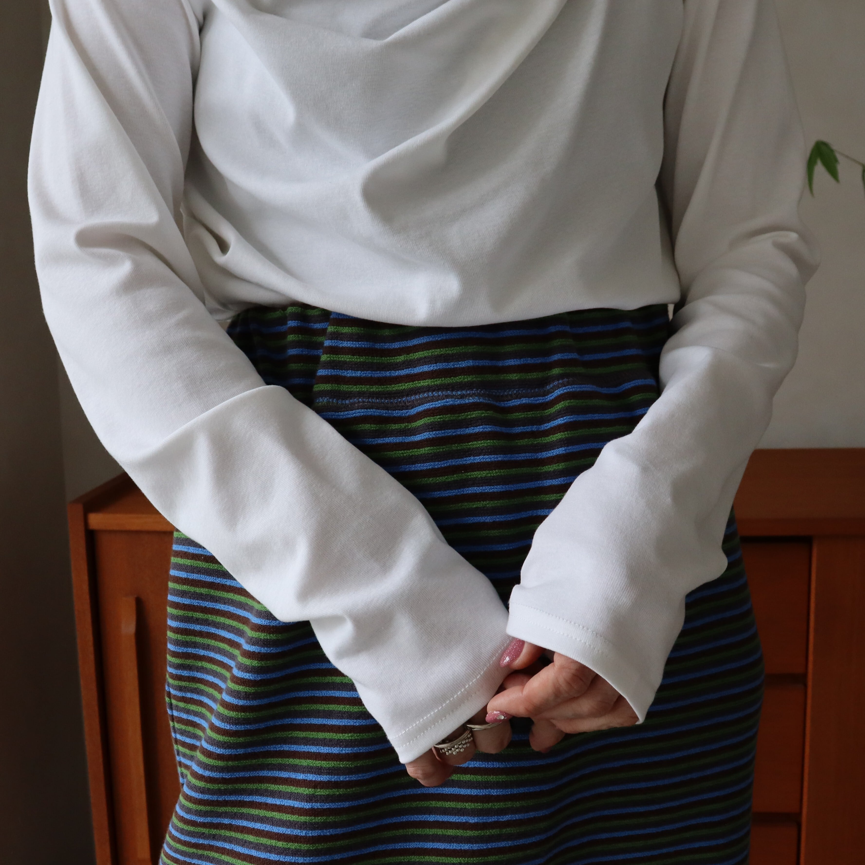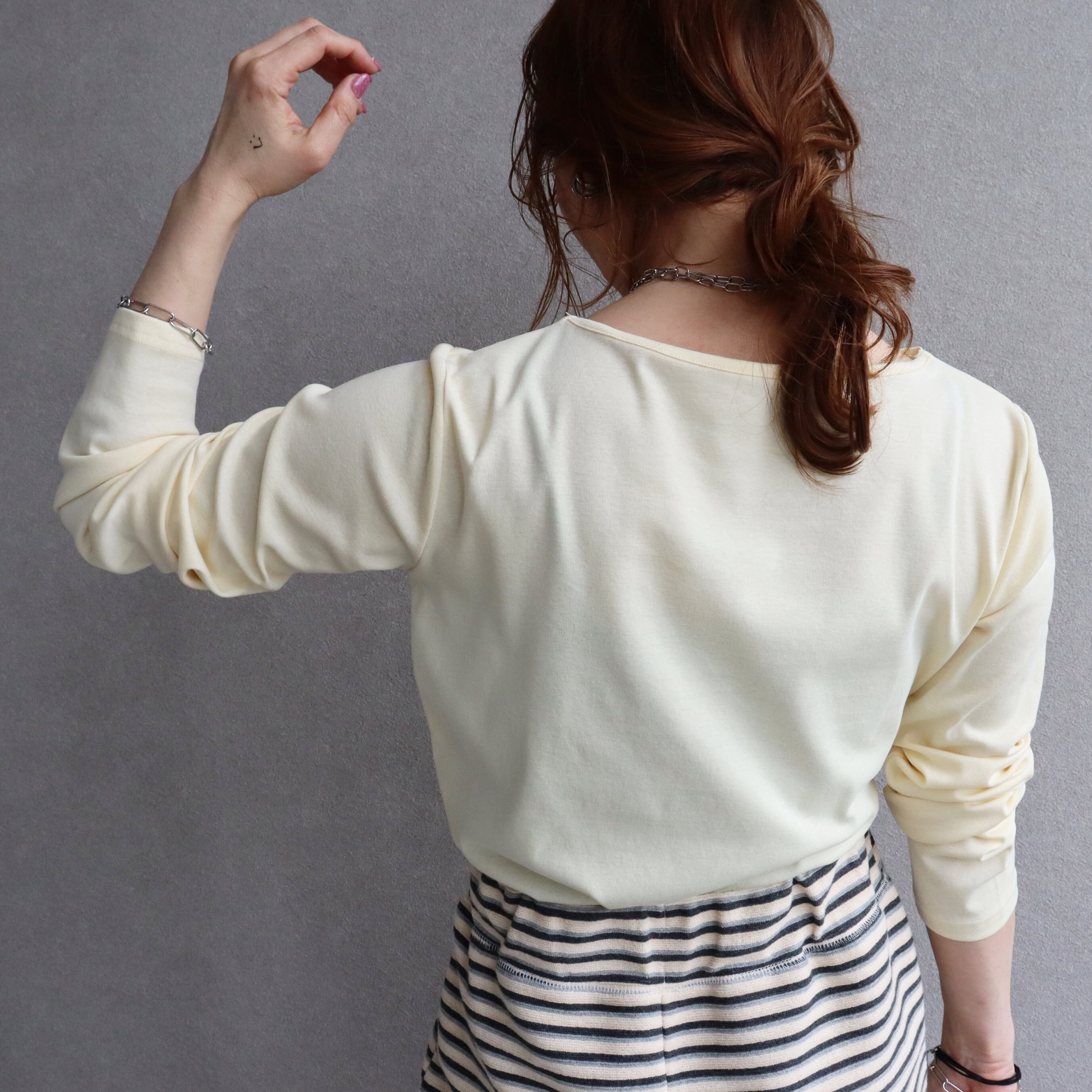 生地感はほどよいフィット感とストレッチ性があり、快適な着心地も魅力のカットソーです。