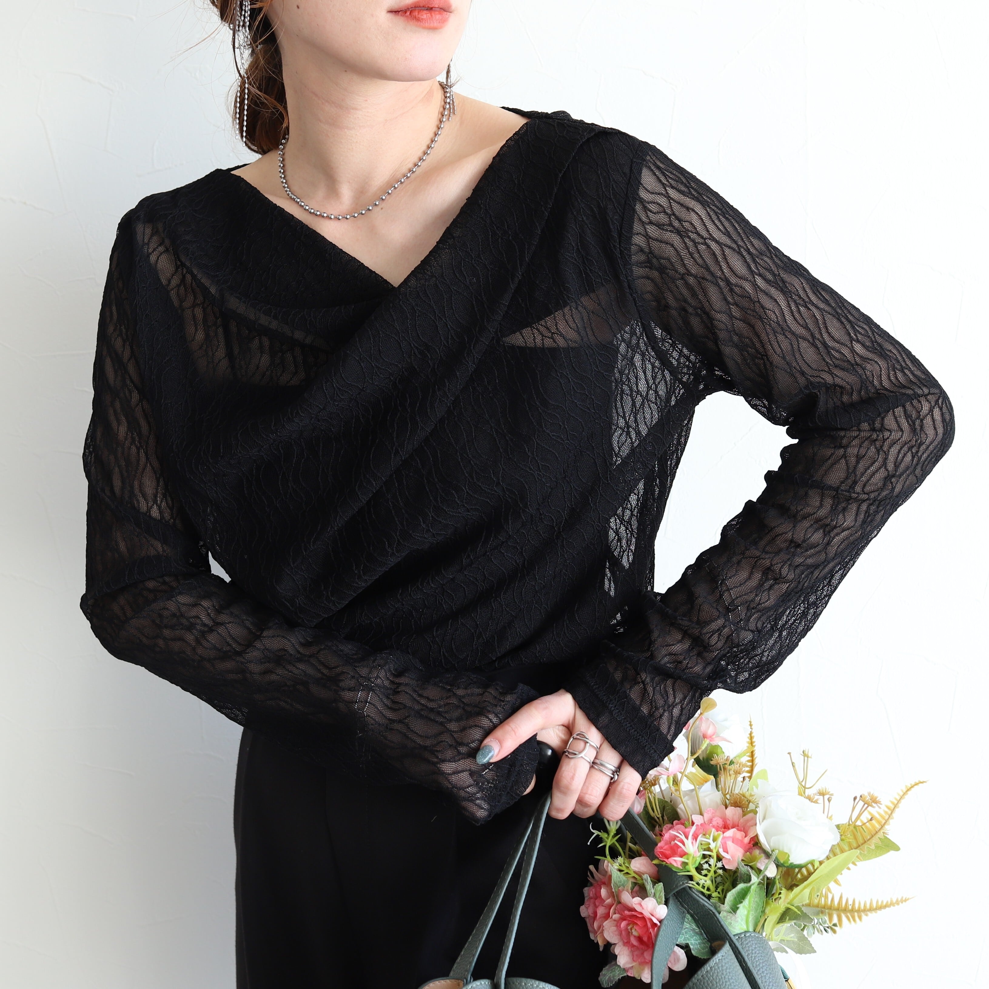 レースドレープネックプルオーバー【bel-z-33301-z】メール便送料無料/ネコポス発送10
