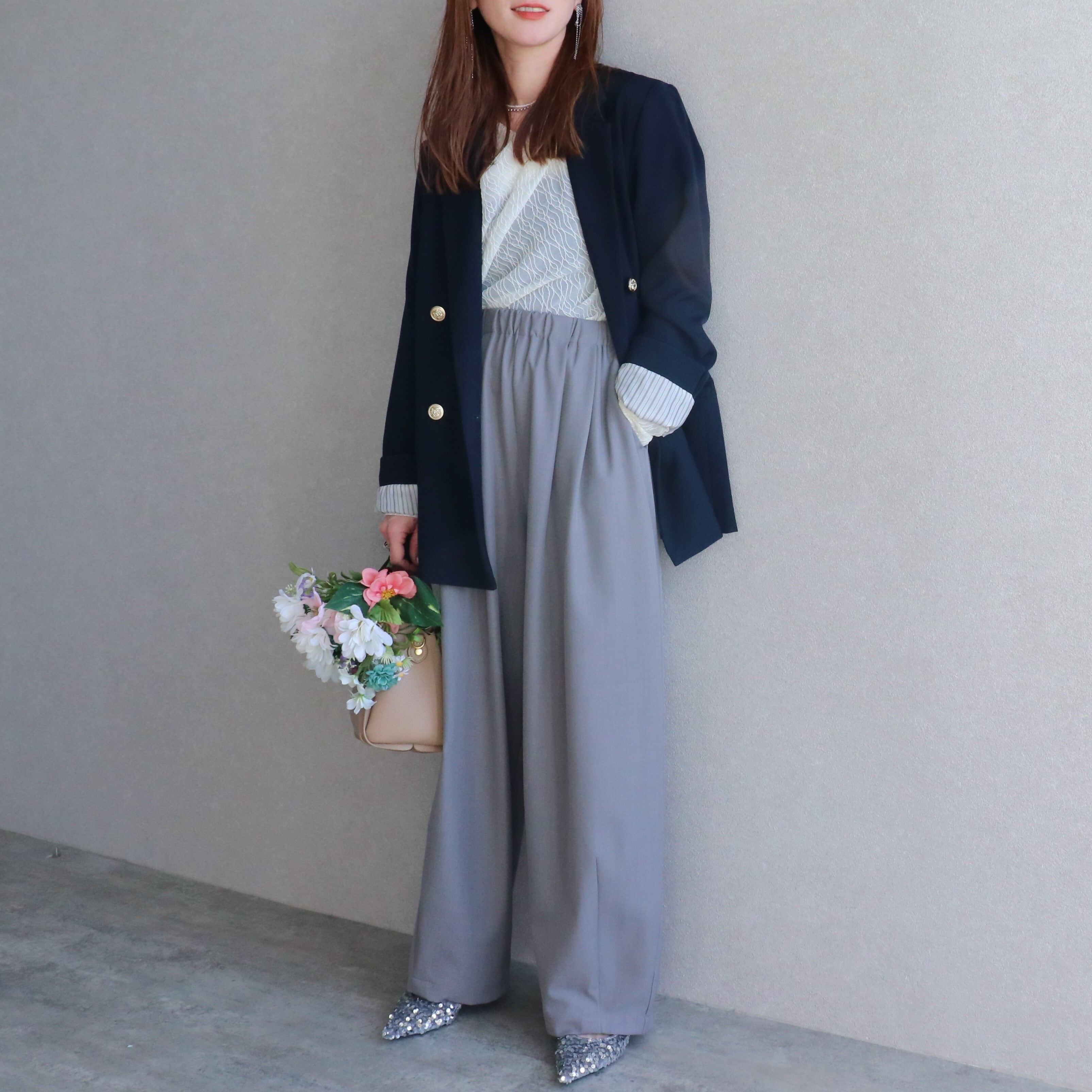 ボトムにはシンプルなパンツやすっきりとしたスカートがおすすめ♡