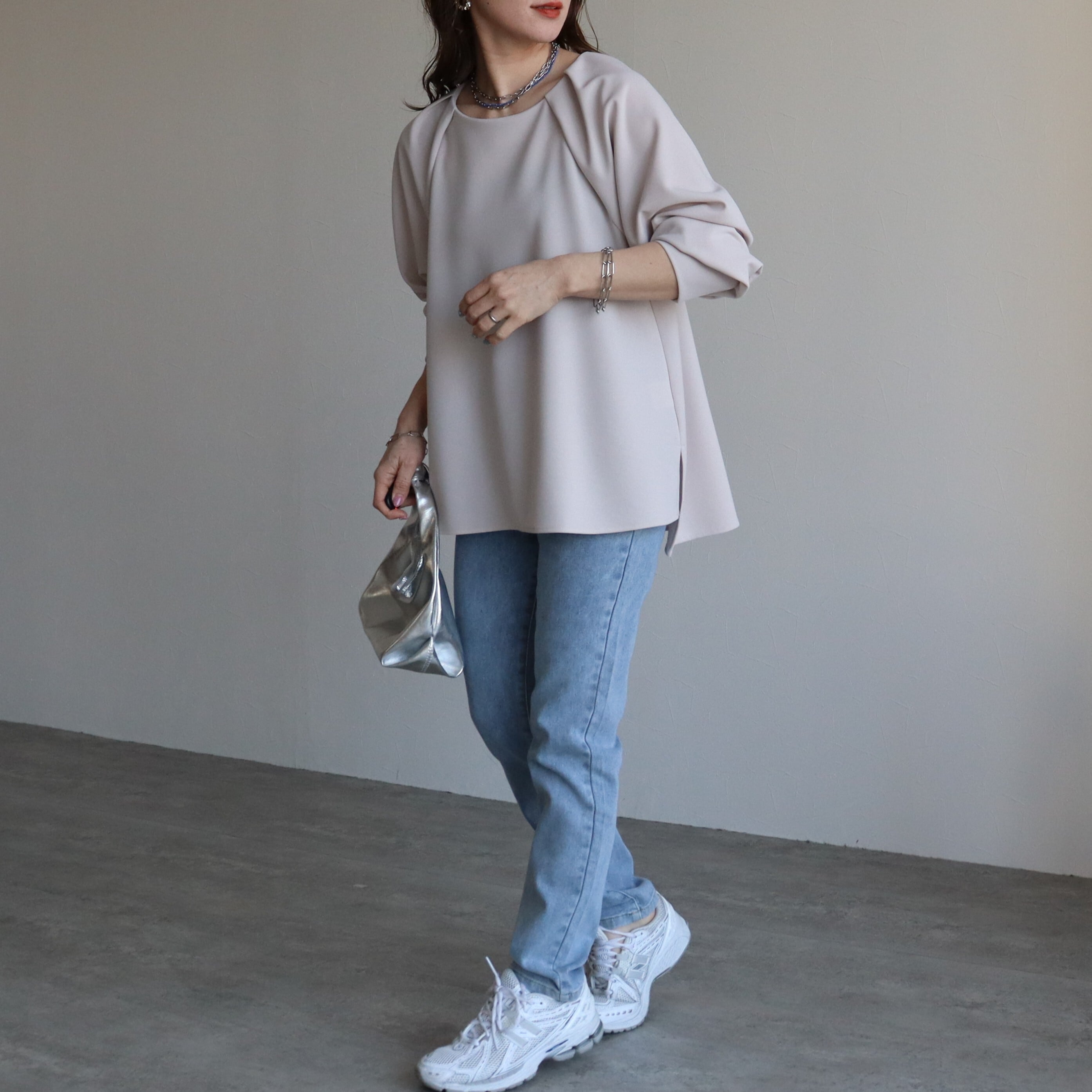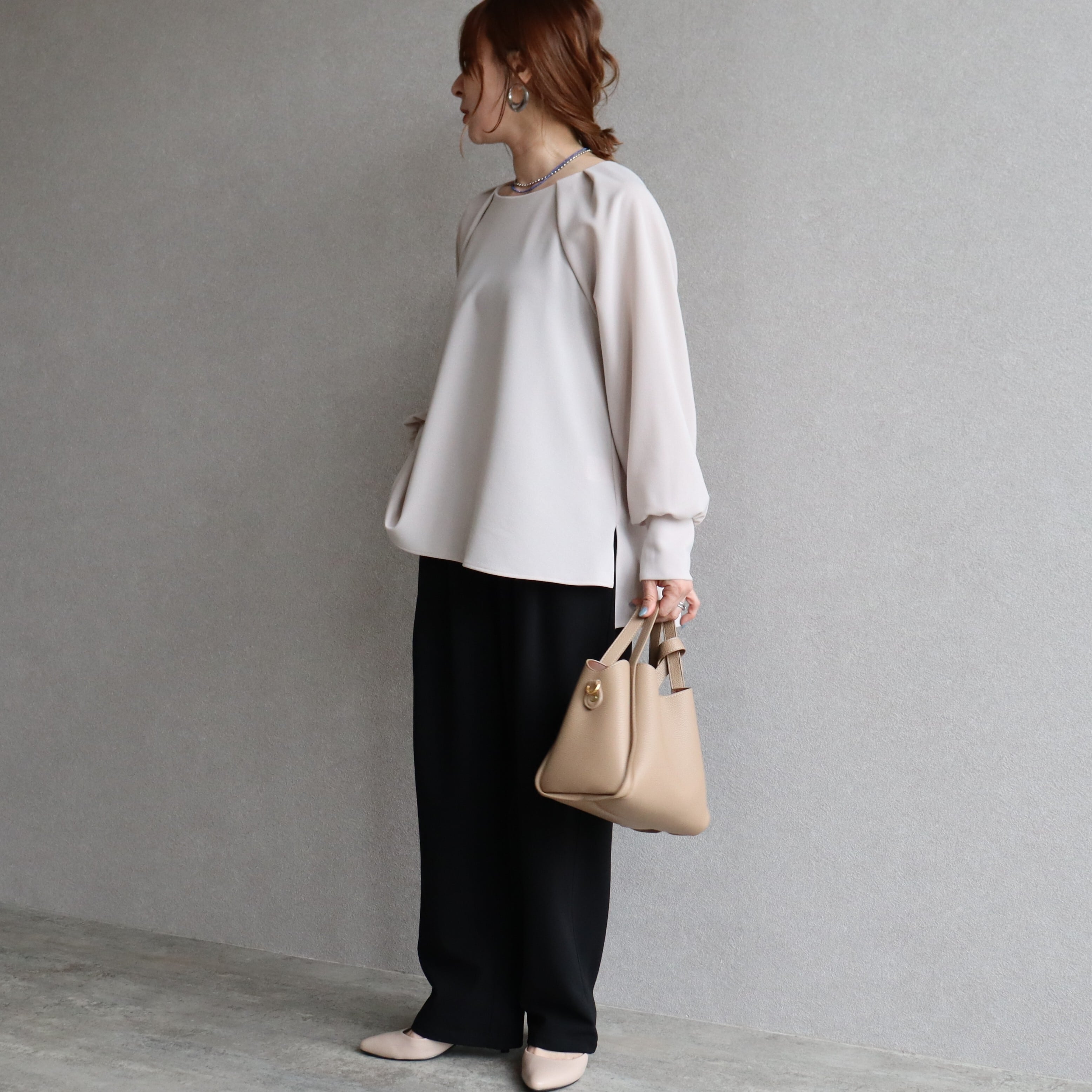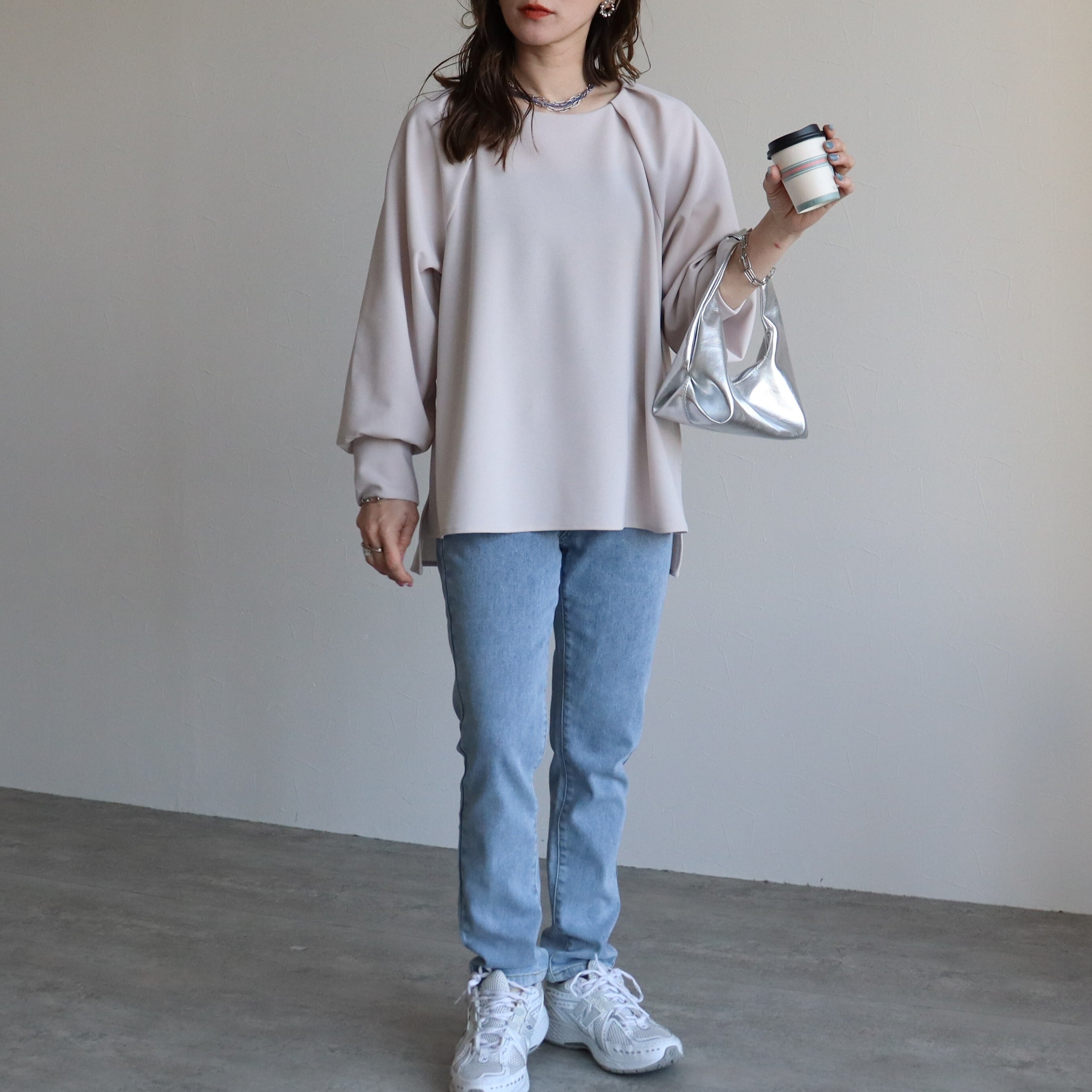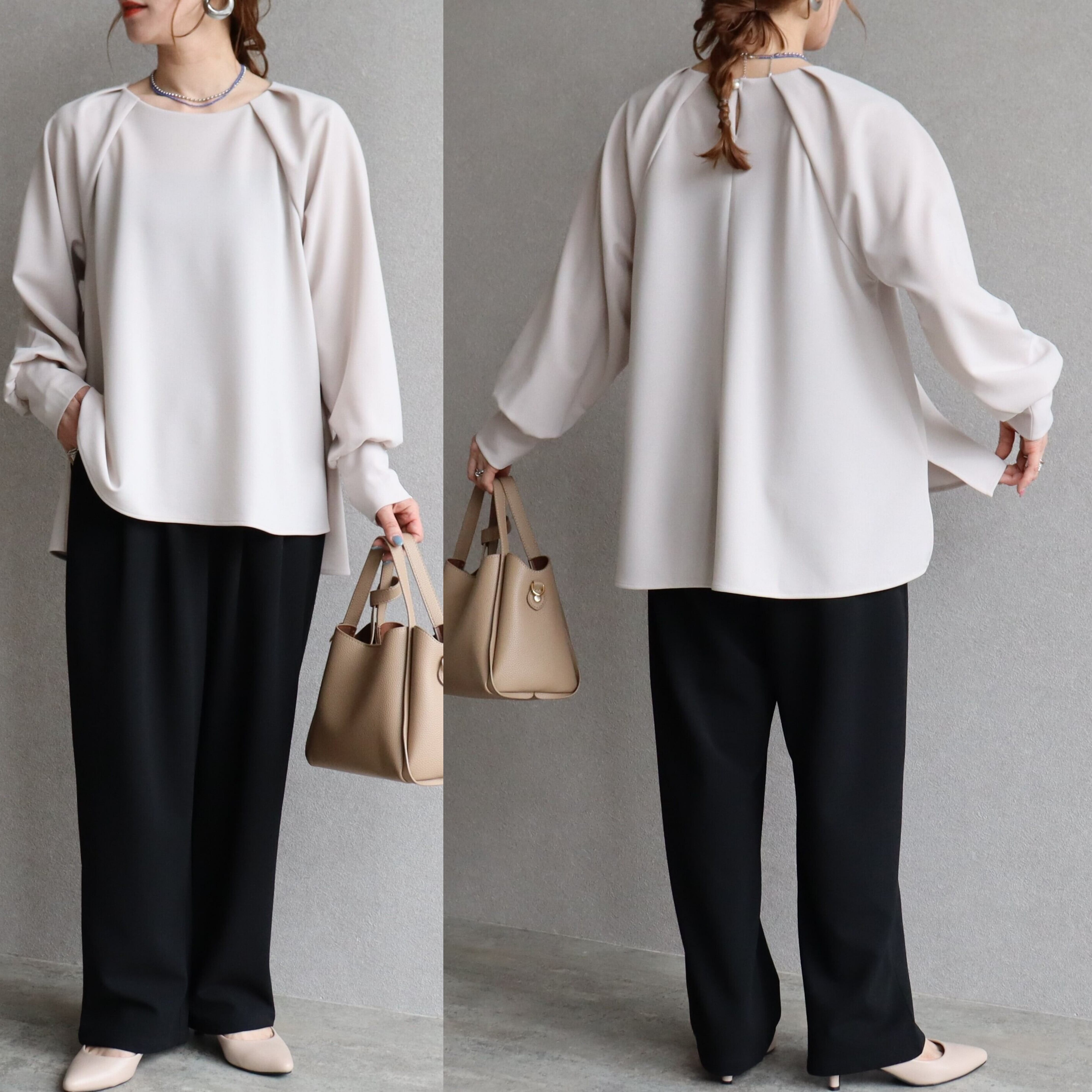 ふんわりとした袖と前後差のある着丈が独特なシルエットを作り出し、