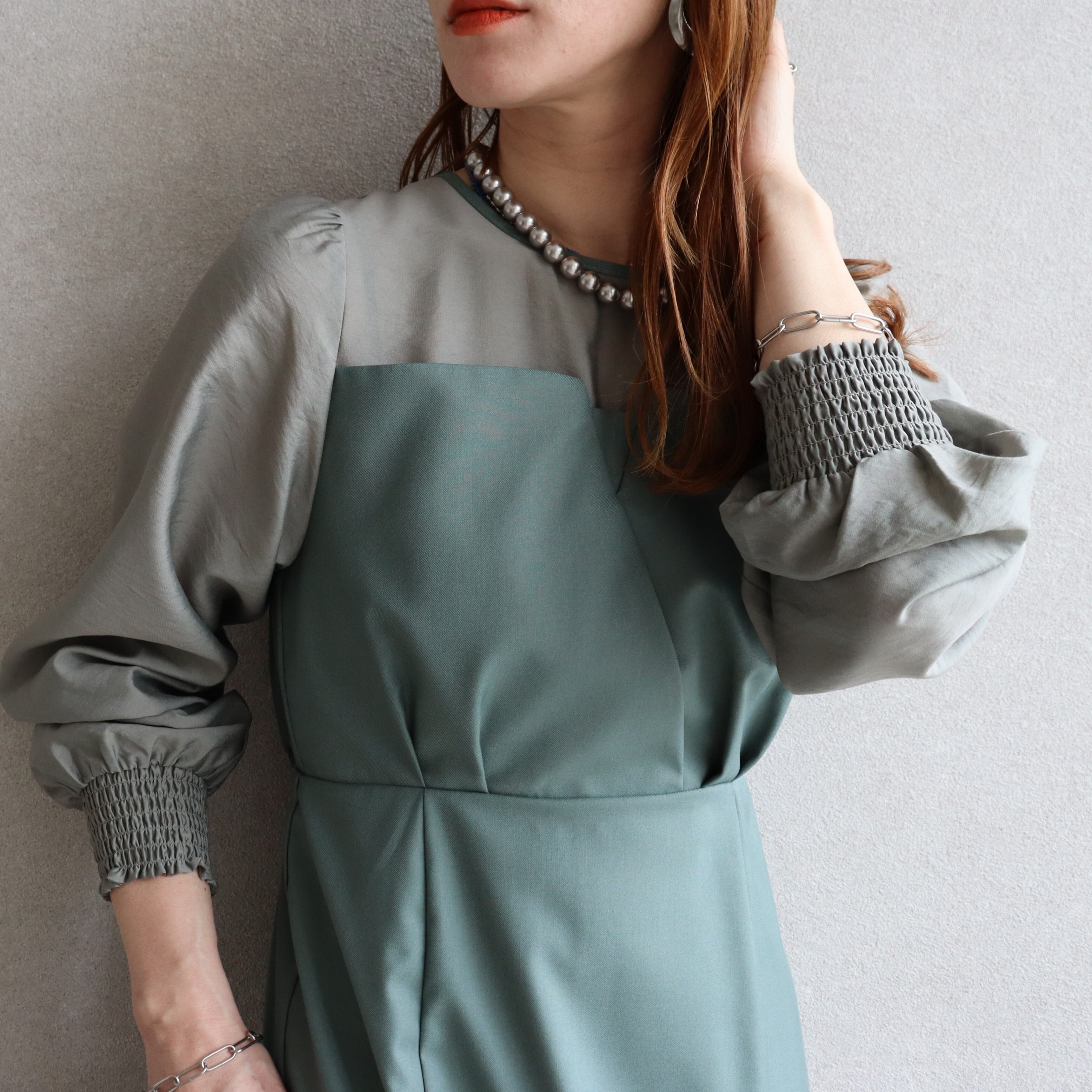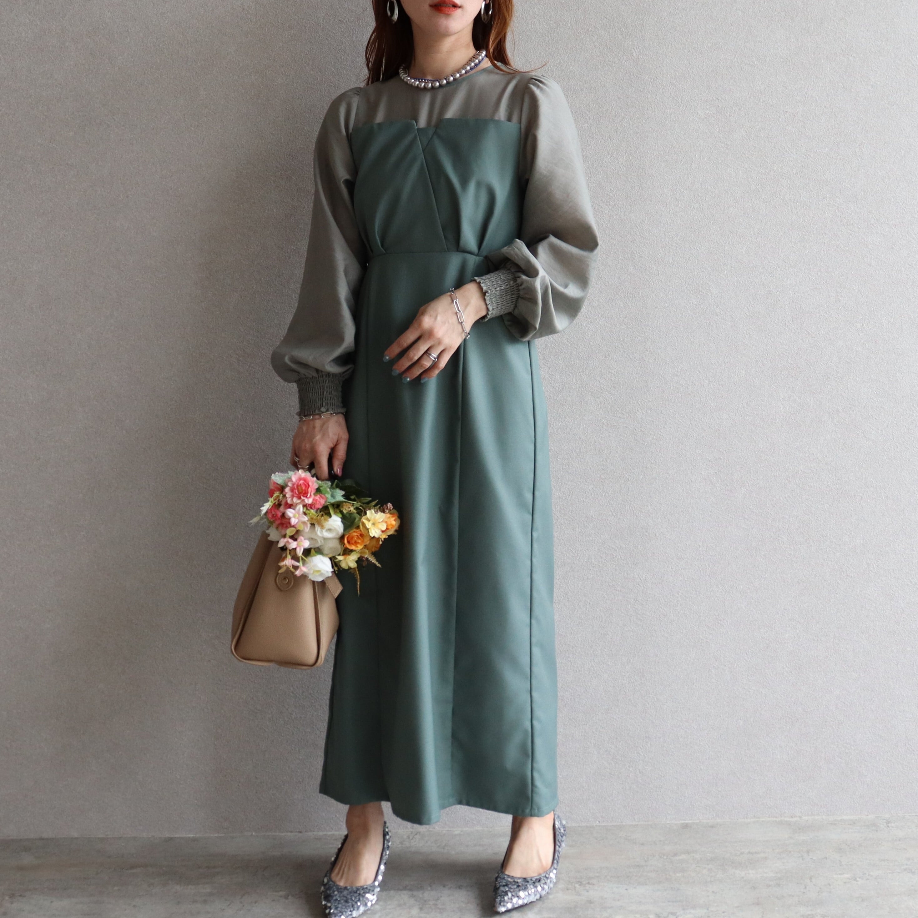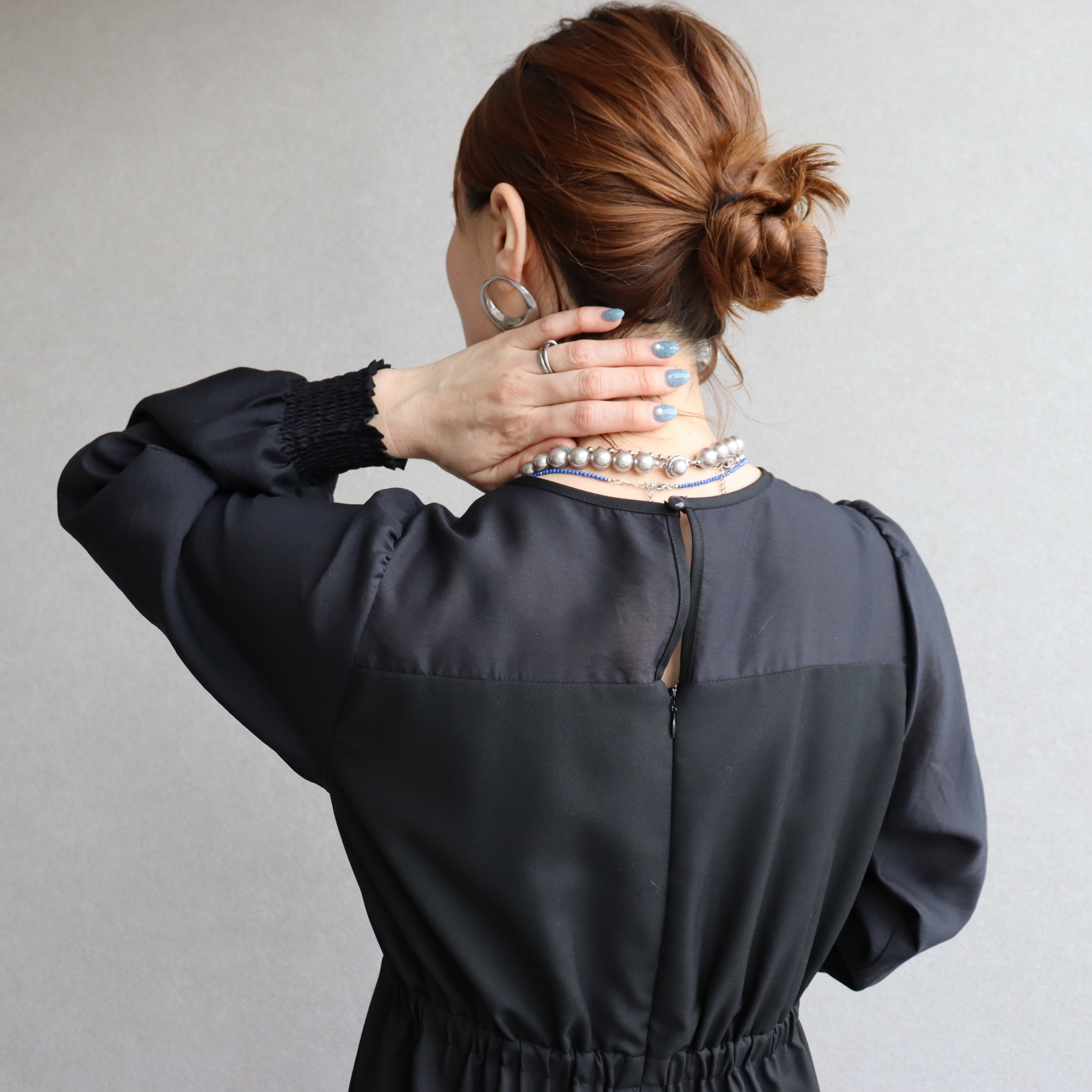 インナーにシフォンブラウスを合わせたような、フェイクレイヤードデザインが印象的★