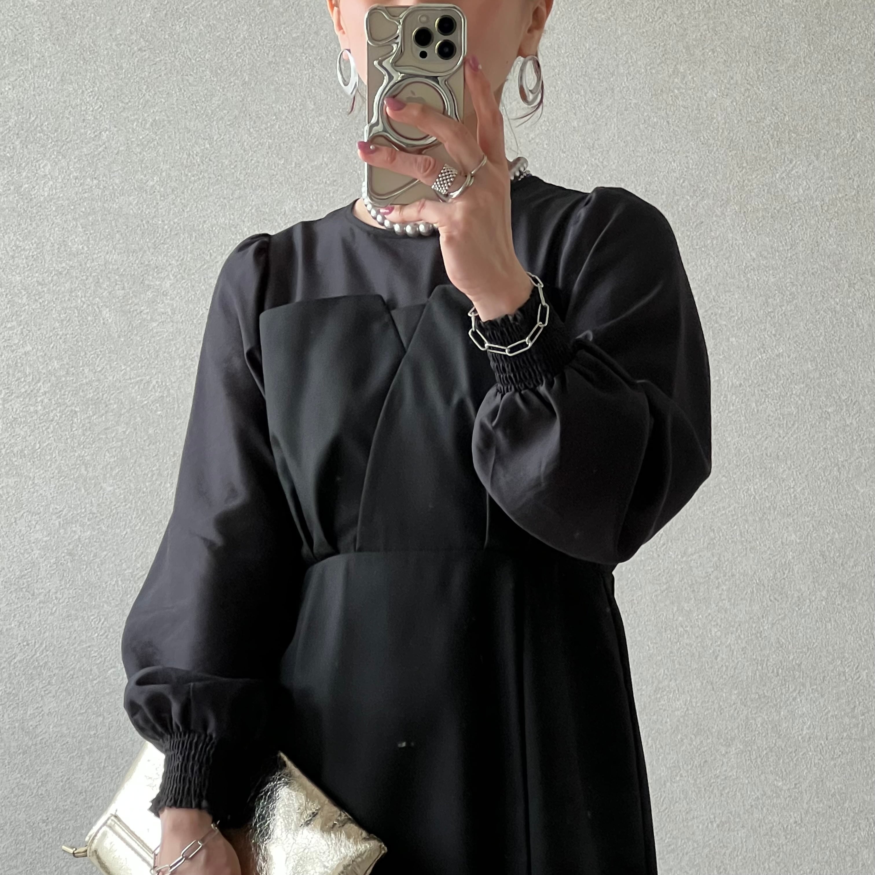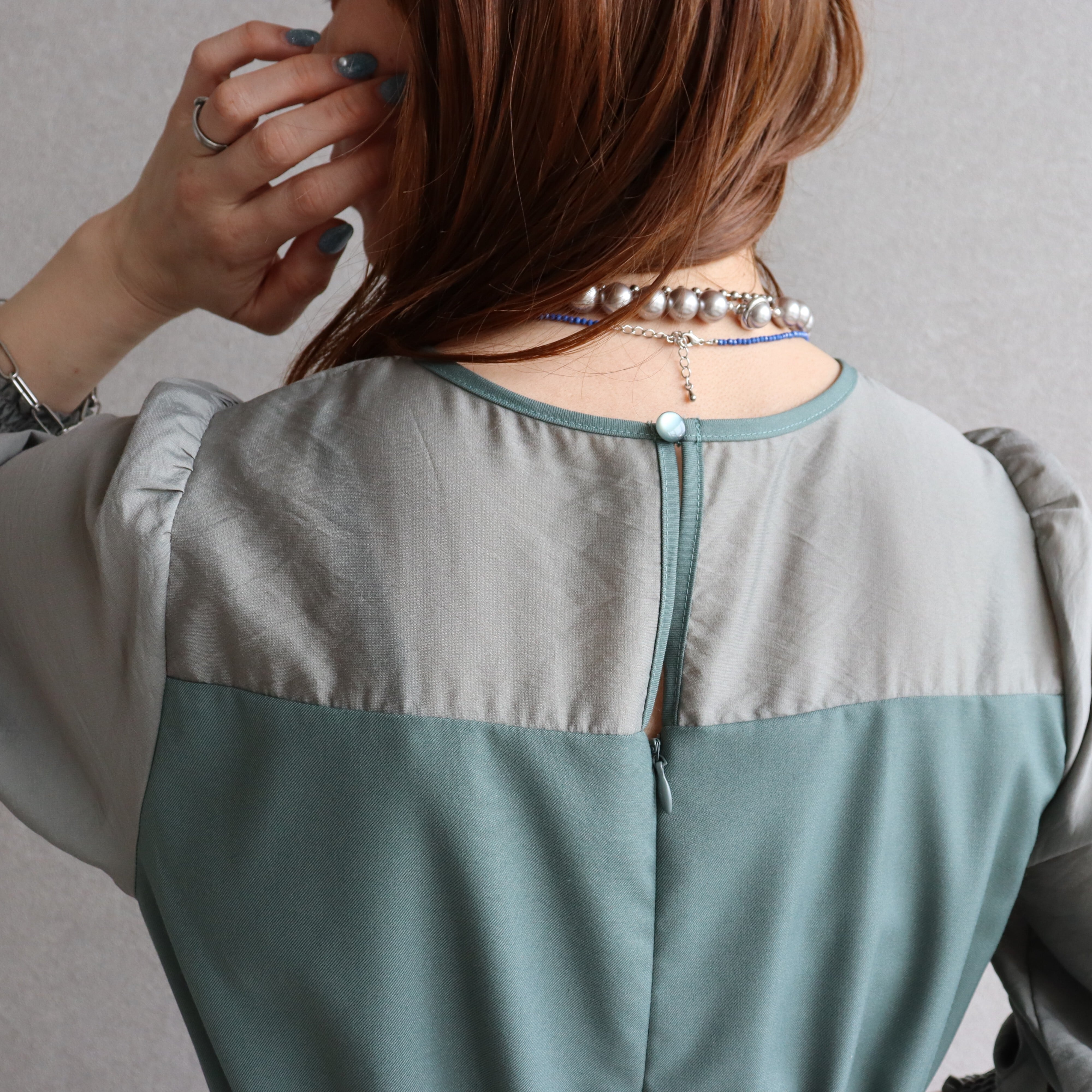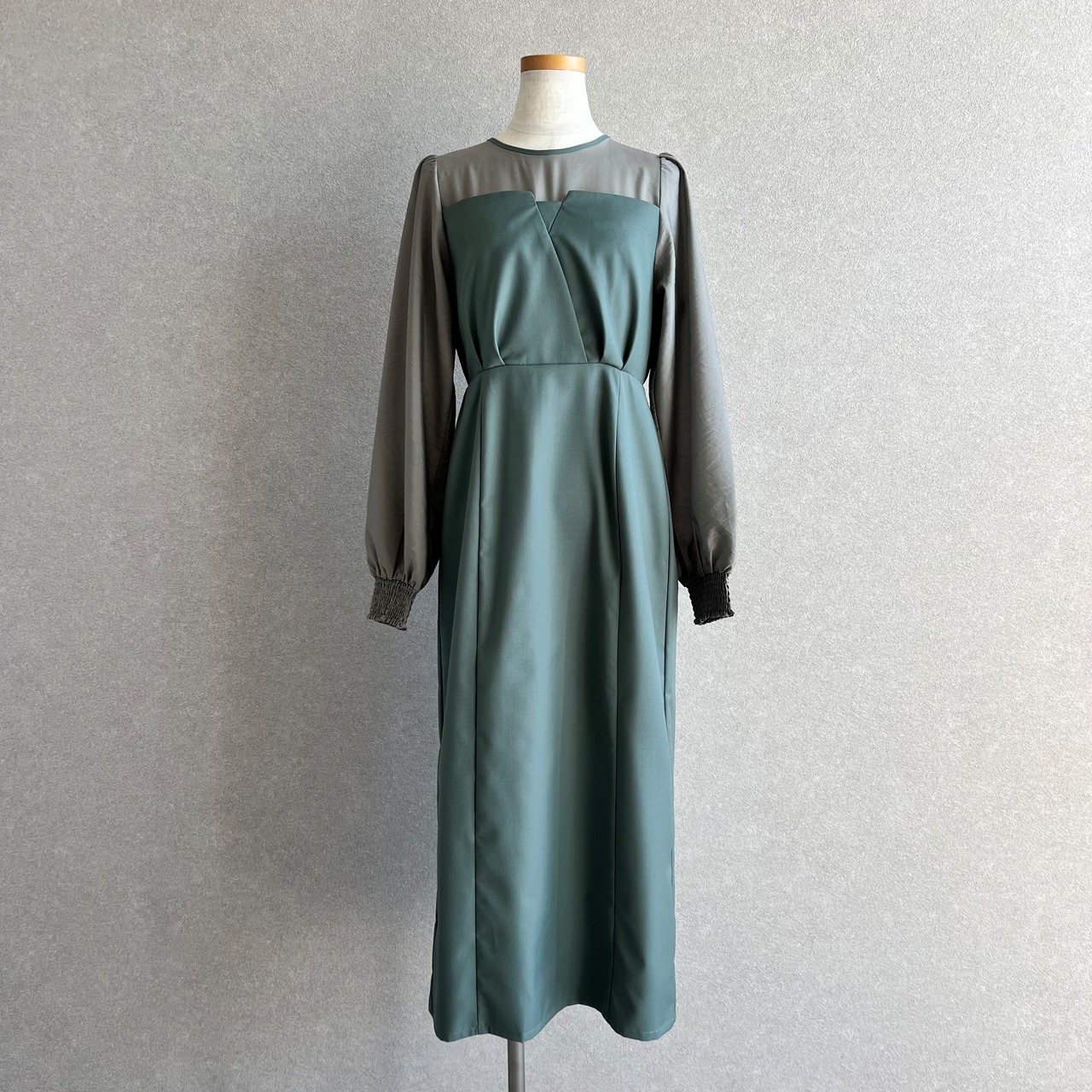 インナーにシフォンブラウスを合わせたような、フェイクレイヤードデザインが印象的★