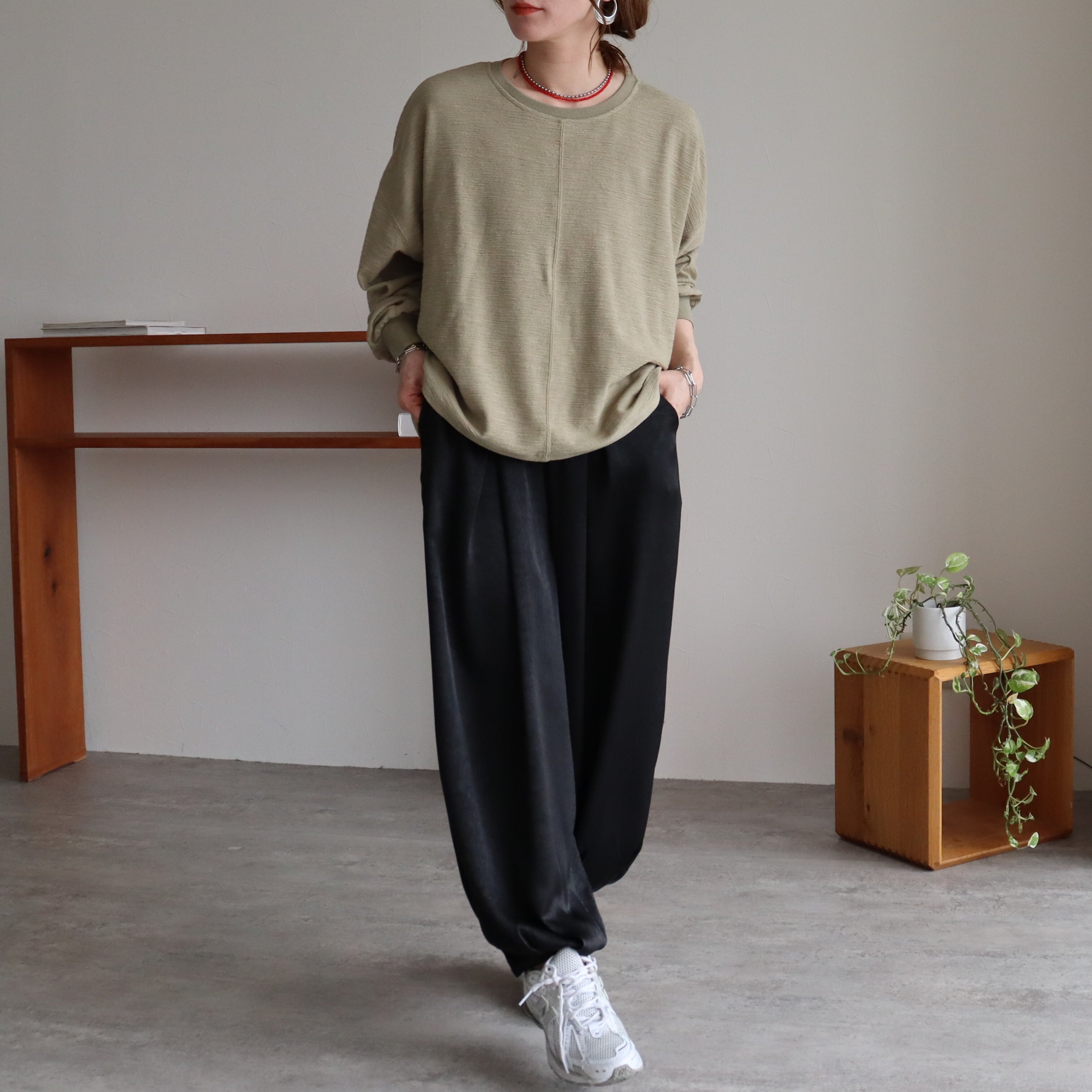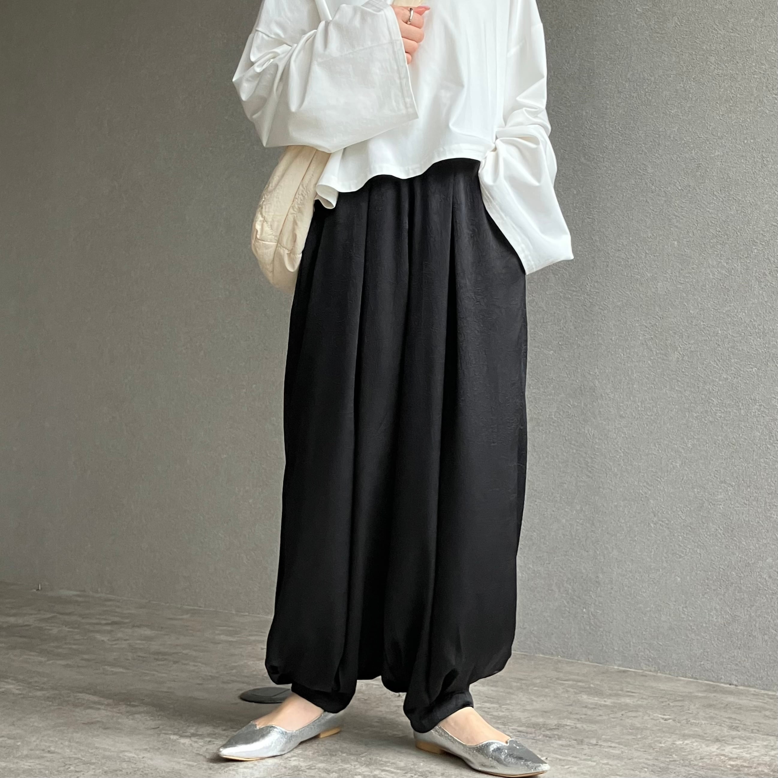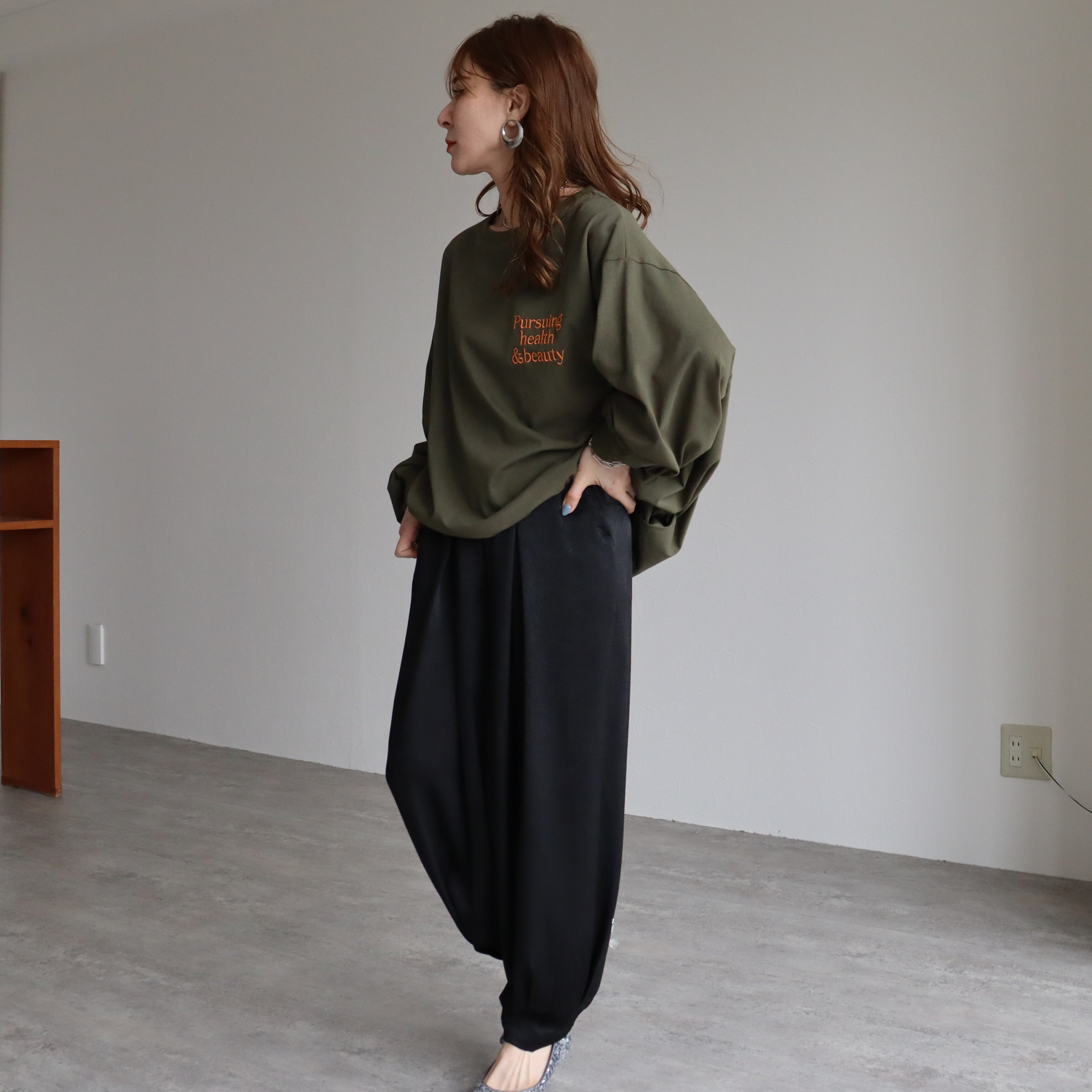 落ち感がきれいなサテンのイージーパンツです。