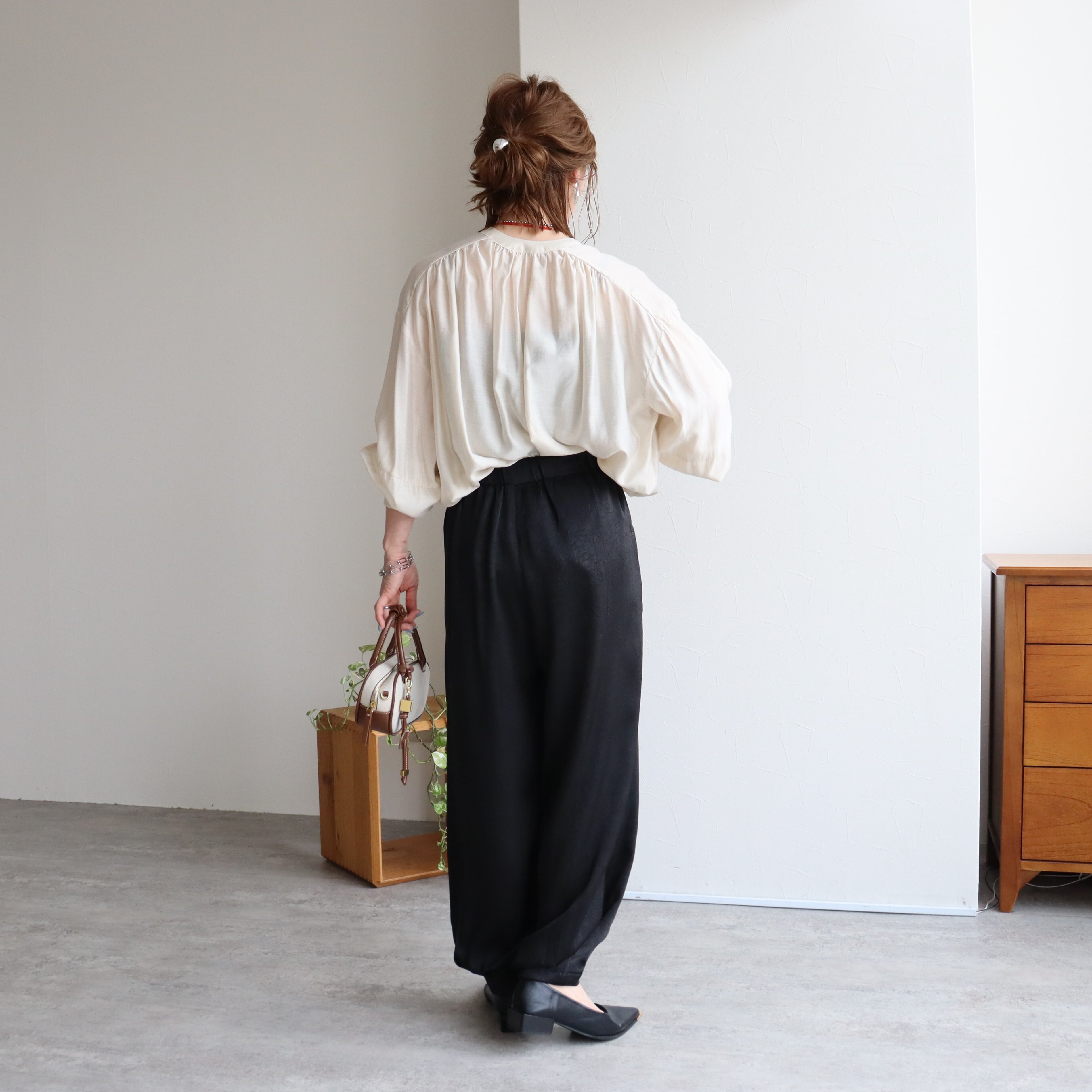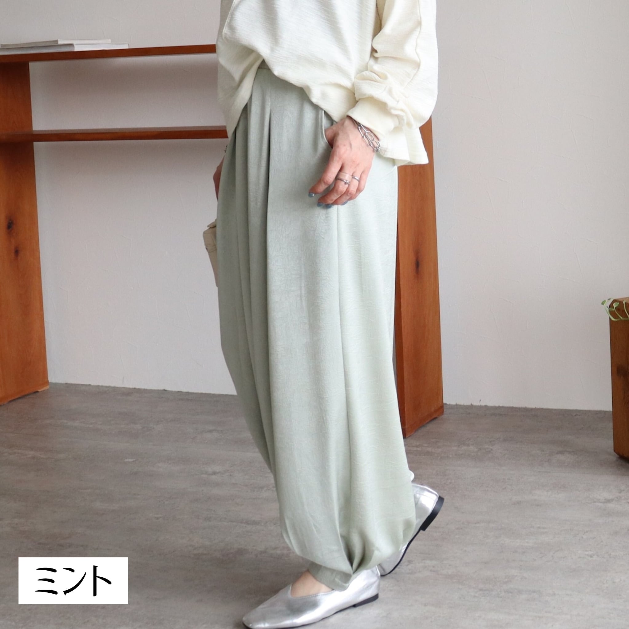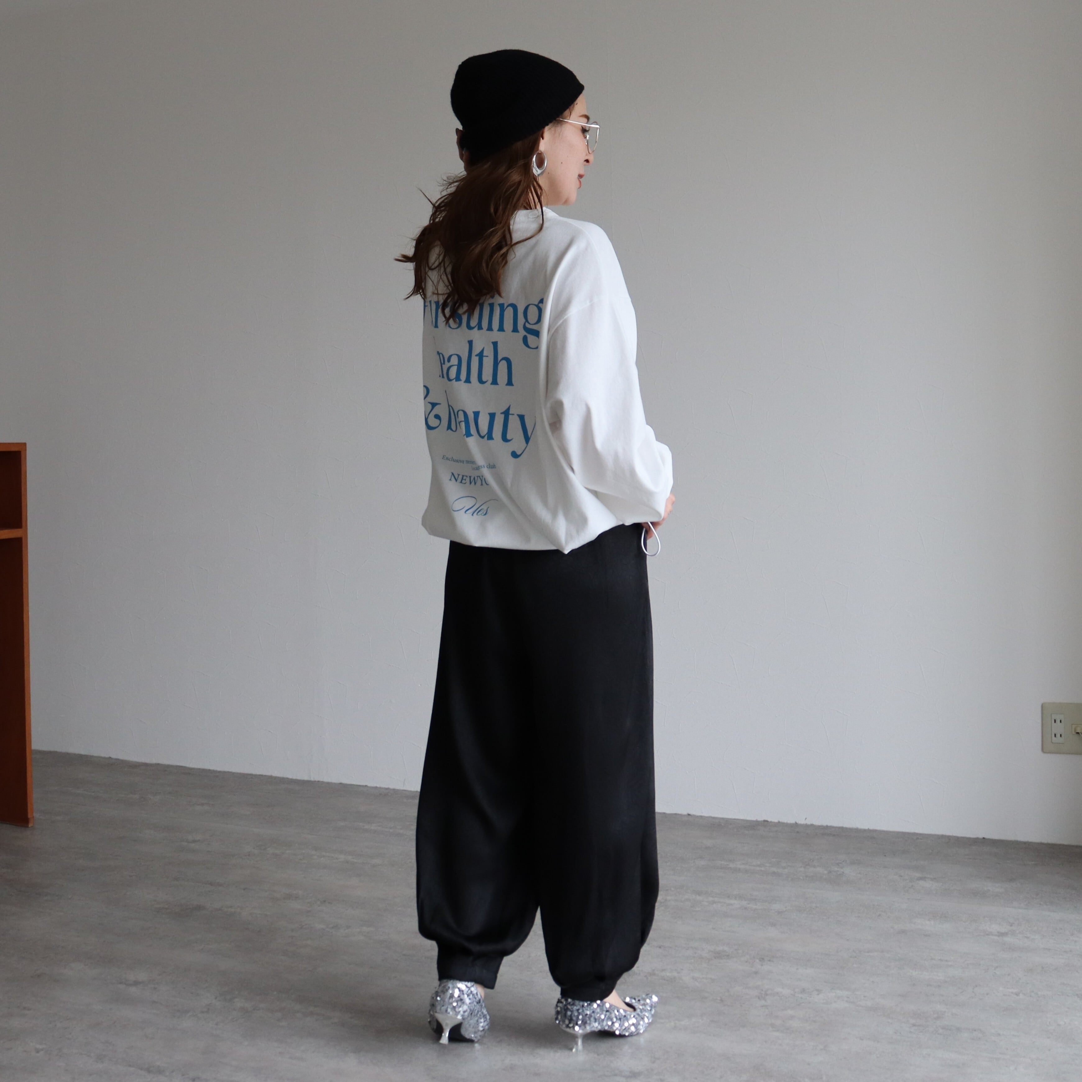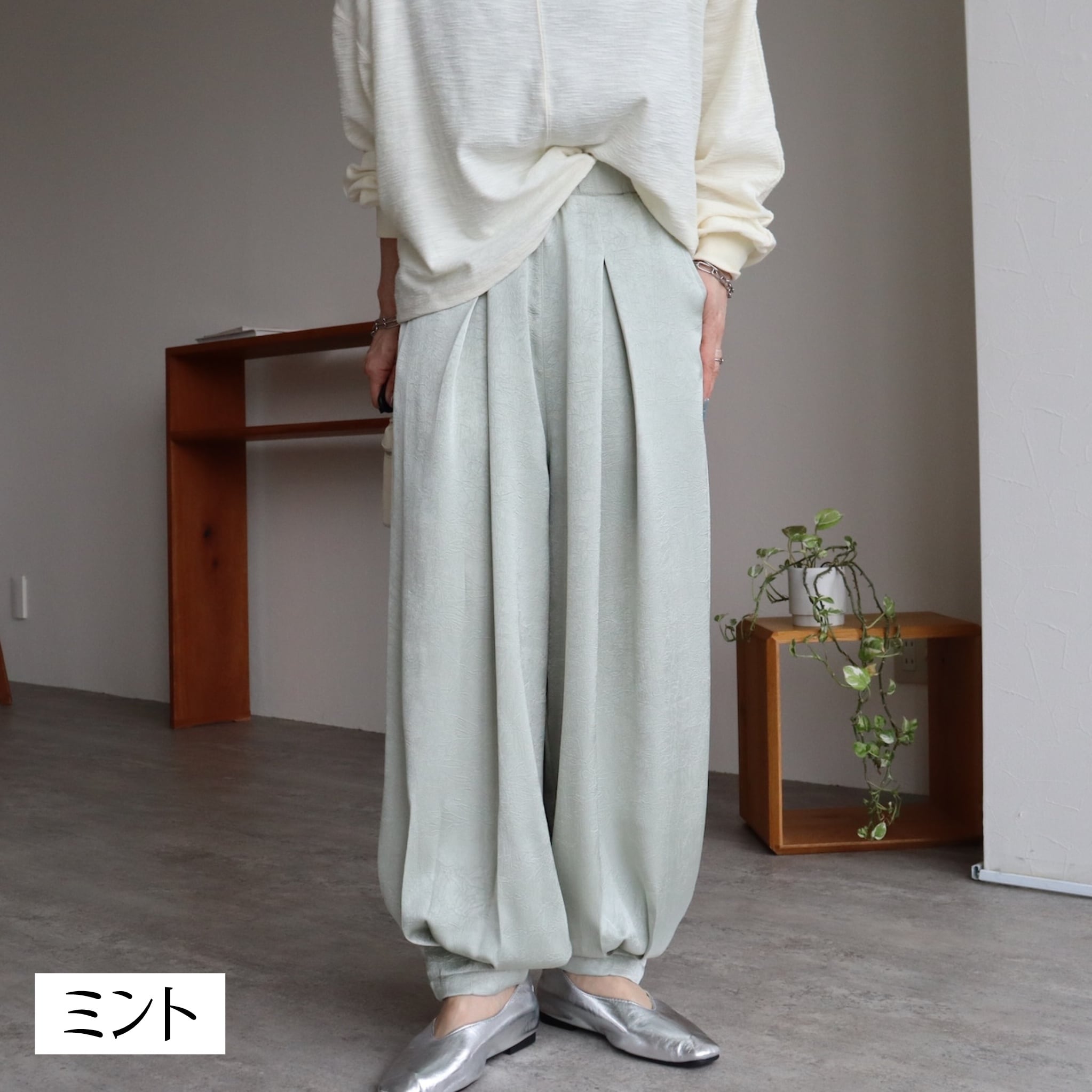 落ち感がきれいなサテンのイージーパンツです。