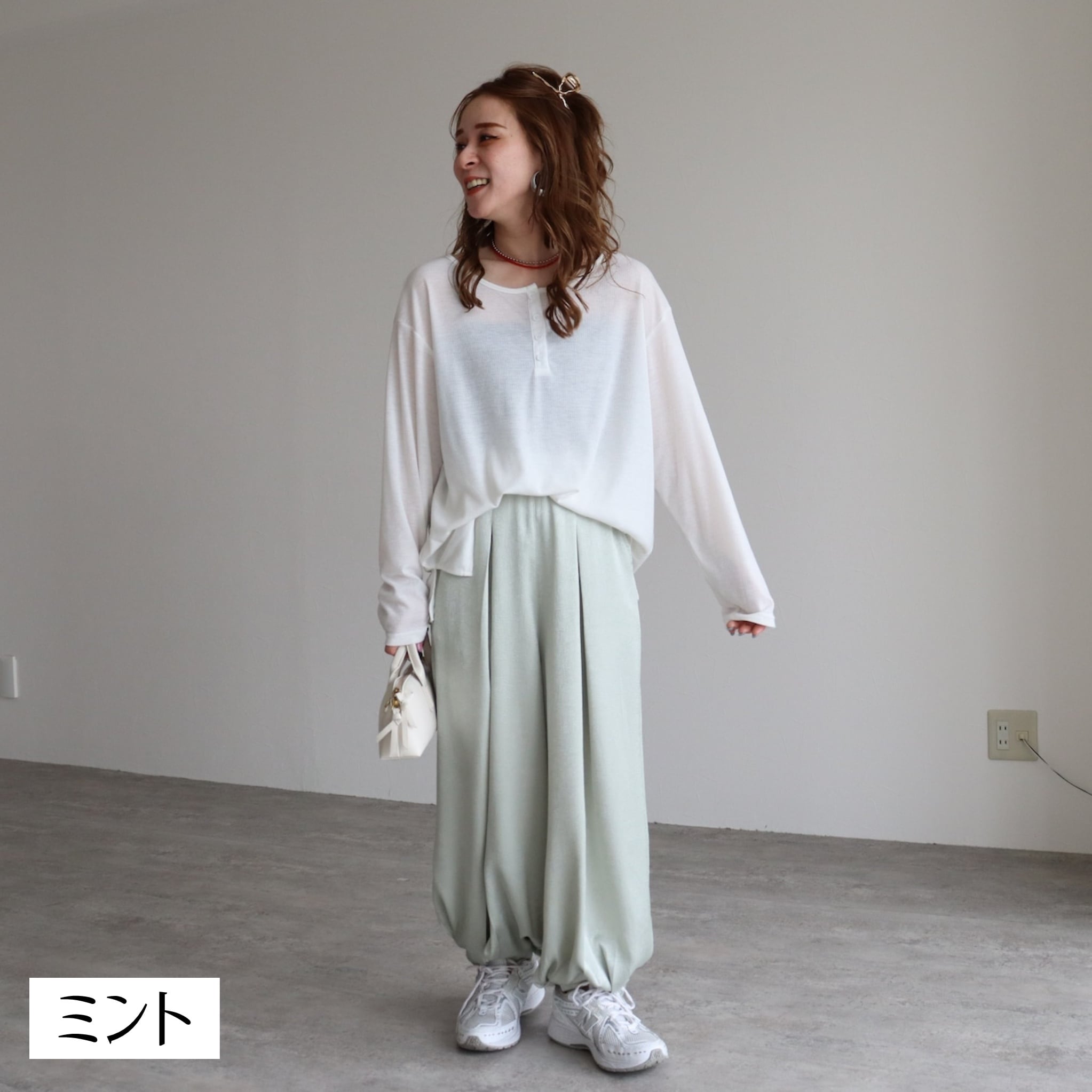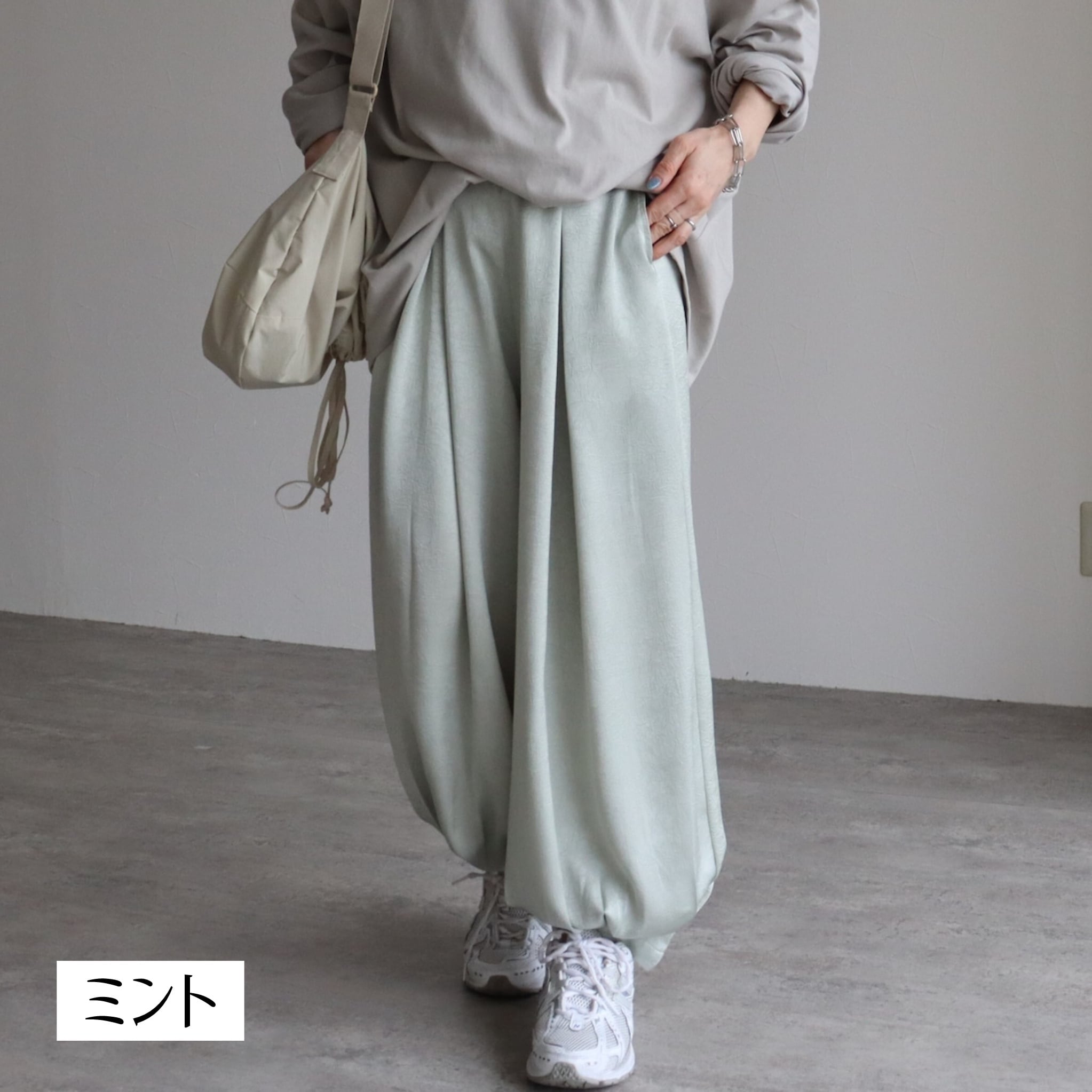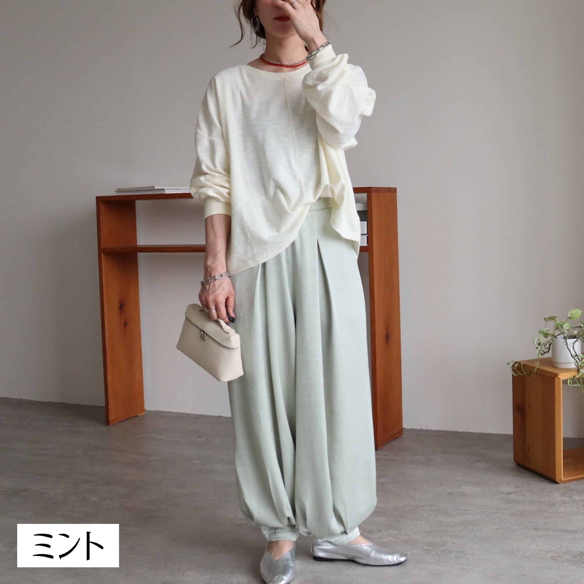 カジュアルにもきれいめにもなじむ万能ボトムとして、オン・オフ問わず活躍します。