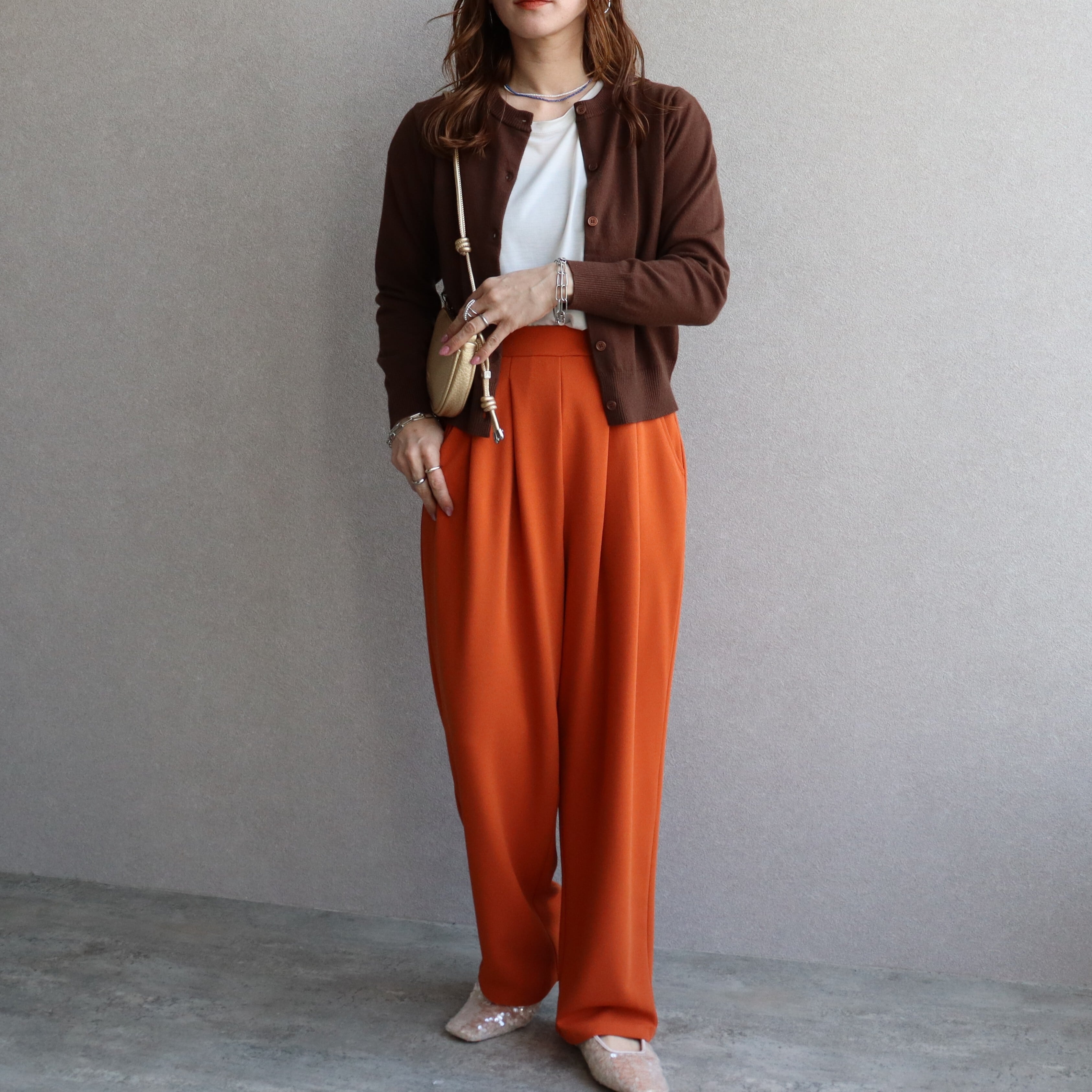□カットジョーゼットタックパンツ